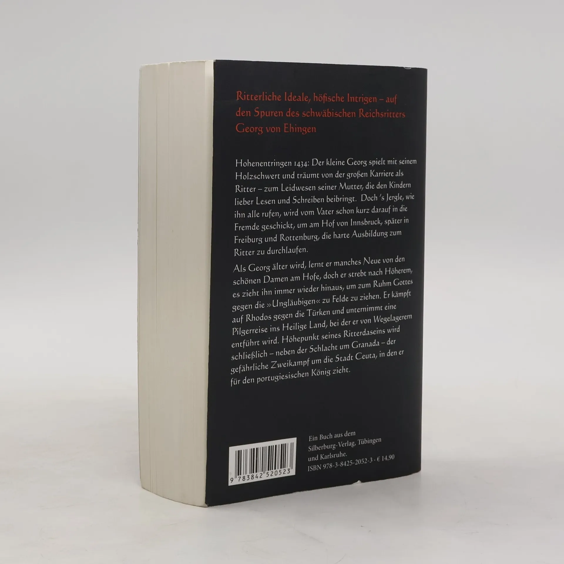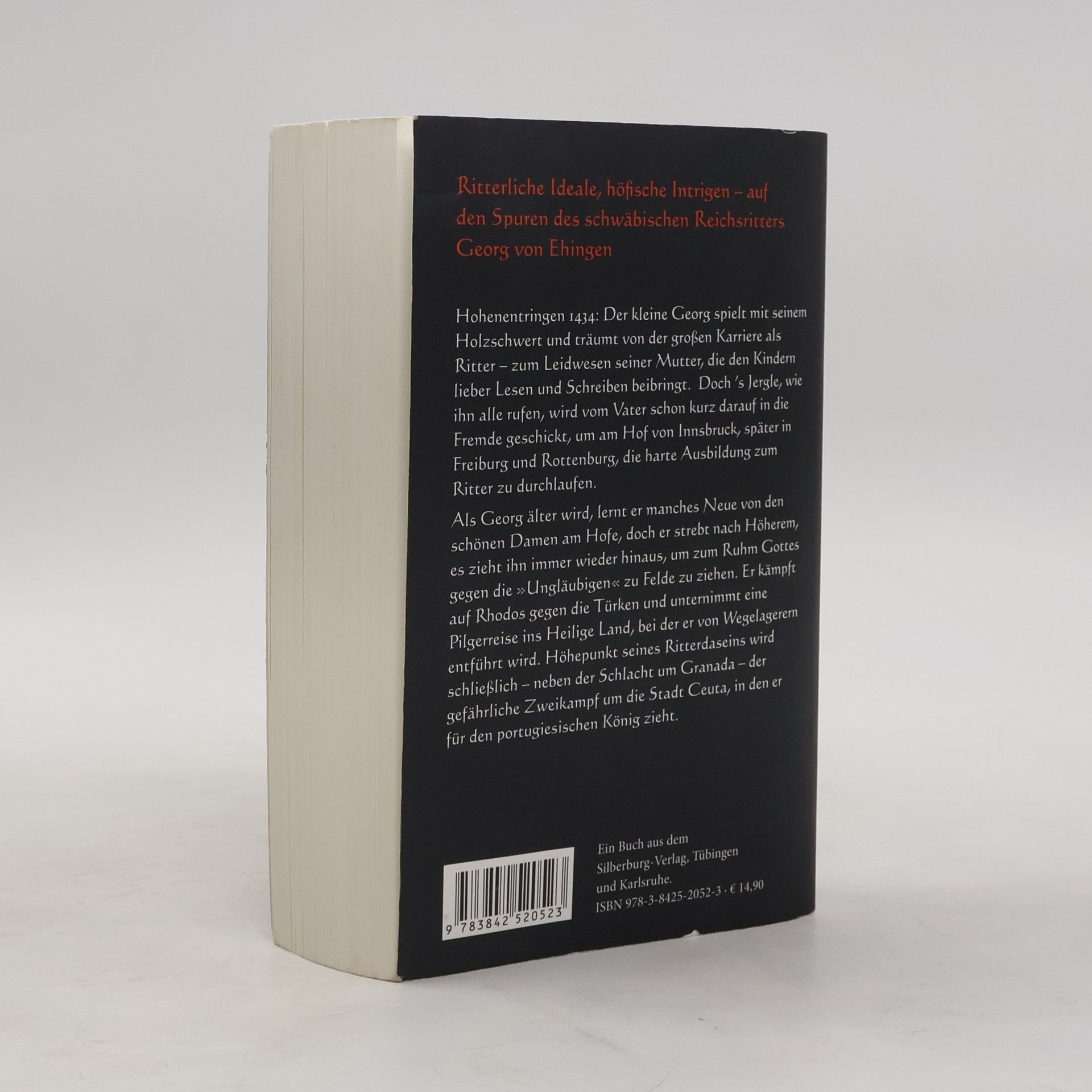 Schloss Hohenentringen, 1428. Als Georg von Ehingen hier geboren wird, ahnt niemand, dass er mit seinen Taten in die Geschichte eingehen wird. In Innsbruck, Freiburg und Rottenburg durchlebt er die harte Erziehung zum Ritter. Das hohe Ideal des Ritters als Beschützer der Christenheit im Kampf gegen die »Ungläubigen« wird von nun an zu seinem Lebensziel. Deshalb begibt er sich auf Reisen und lernt zunächst an den europäischen Höfen die Bräuche und Vergnügungen des Adels kennen, Musik, Tanz und neueste Kleidermoden, die beliebte Beizjagd mit Falken und auch die erotischen Avancen mancher Hofdamen. Doch das ist nicht seine Welt – ihn zieht es hinaus, um sich in mutigen Kämpfen zu beweisen. Bei der Verteidigung der Insel Rhodos gegen türkische Angriffe spielt Georg eine wichtige Rolle. Er unternimmt gefährliche Seefahrten und eine abenteuerliche Pilgerreise ins Heilige Land, wo er von Wegelagerern entführt wird. Seinem Lebensziel kommt er näher, als er am Kriegszug gegen Granada teilnimmt, die letzte maurische Bastion auf der iberischen Halbinsel. Der Höhepunkt von Georgs Ritterdasein ist schließlich der riskante Zweikampf um Ceuta – sein Sieg über einen heidnischen Kontrahenten entscheidet die Schlacht zugunsten von Portugal, wodurch die Stadt bis heute ein europäischer Brückenkopf an der nordafrikanischen Küste geblieben ist.