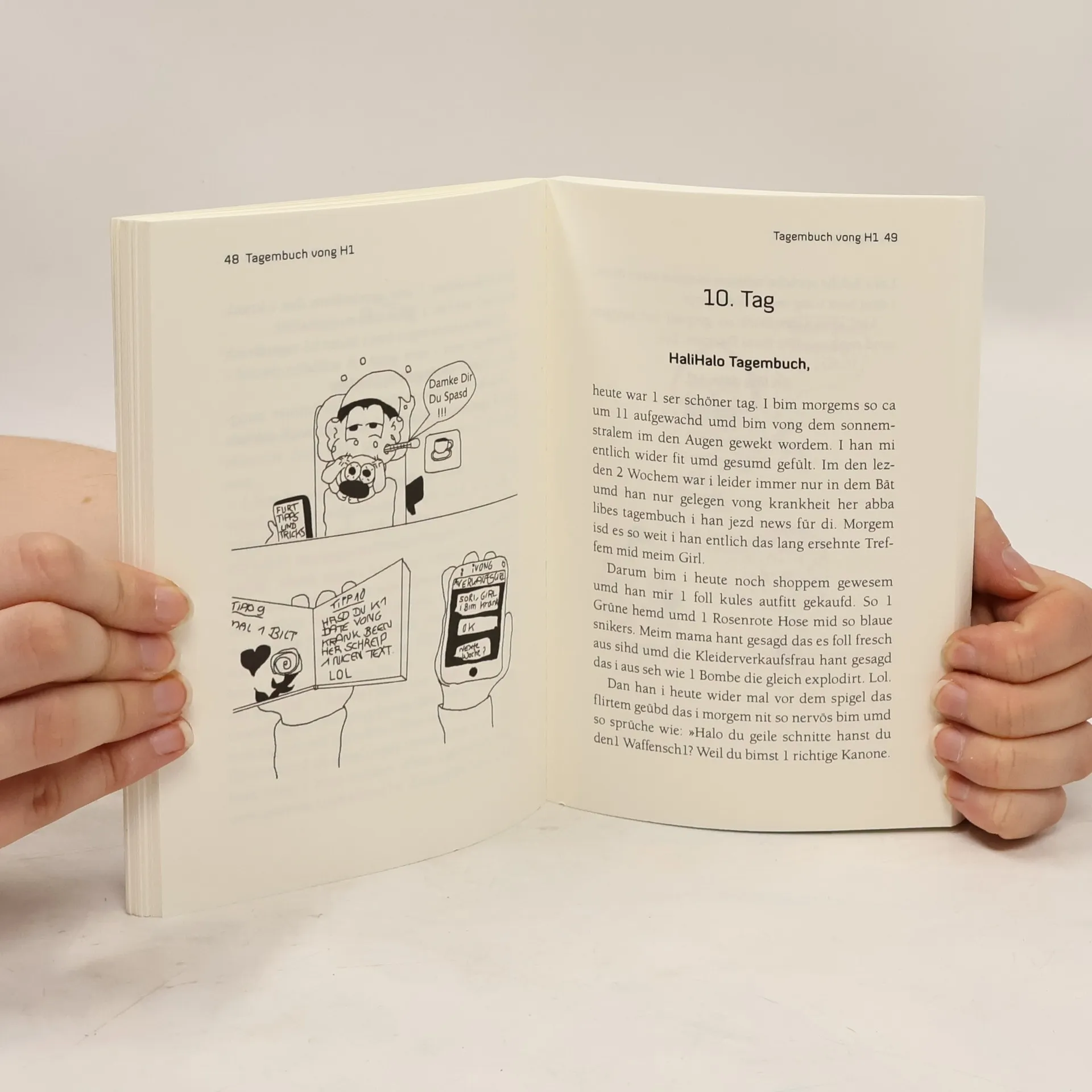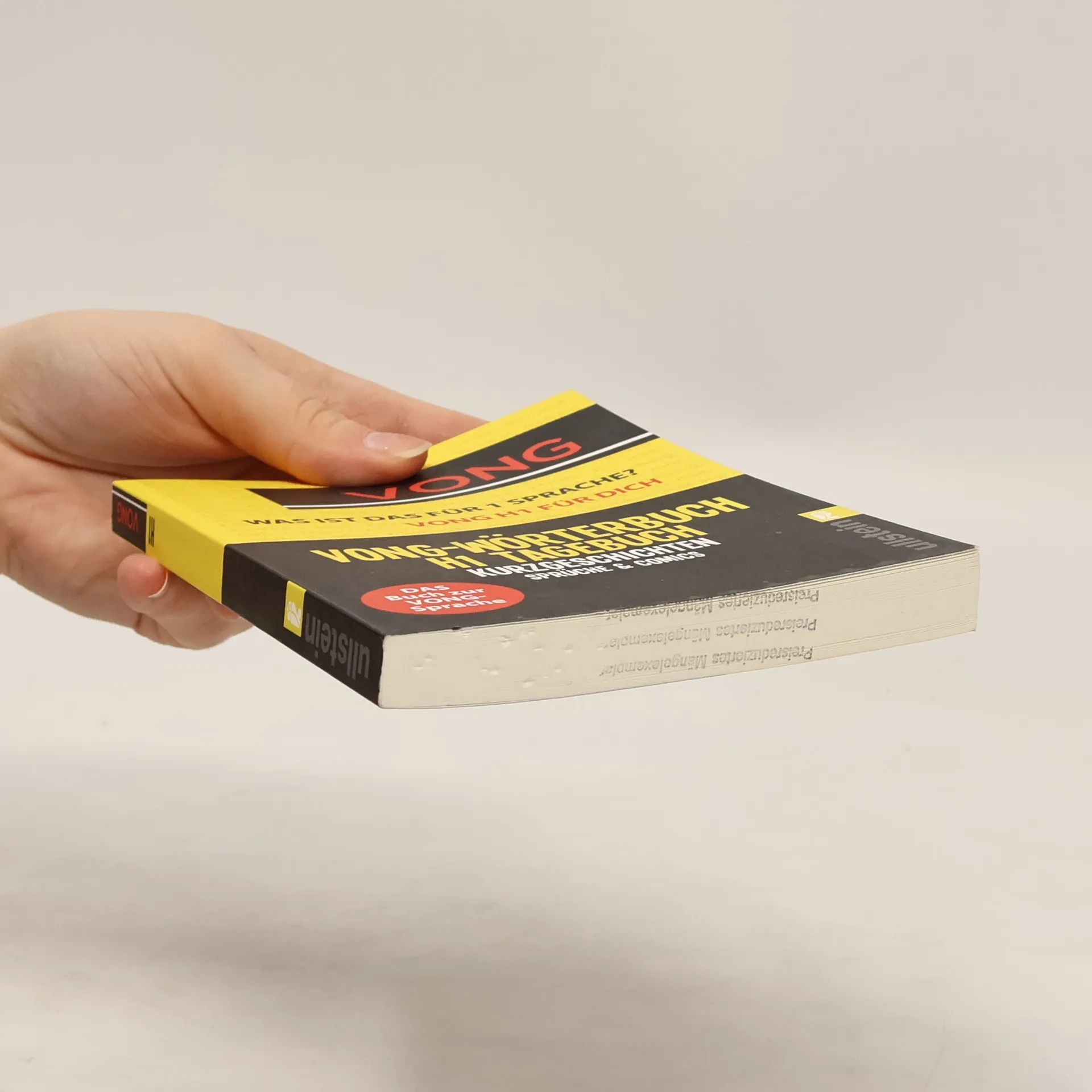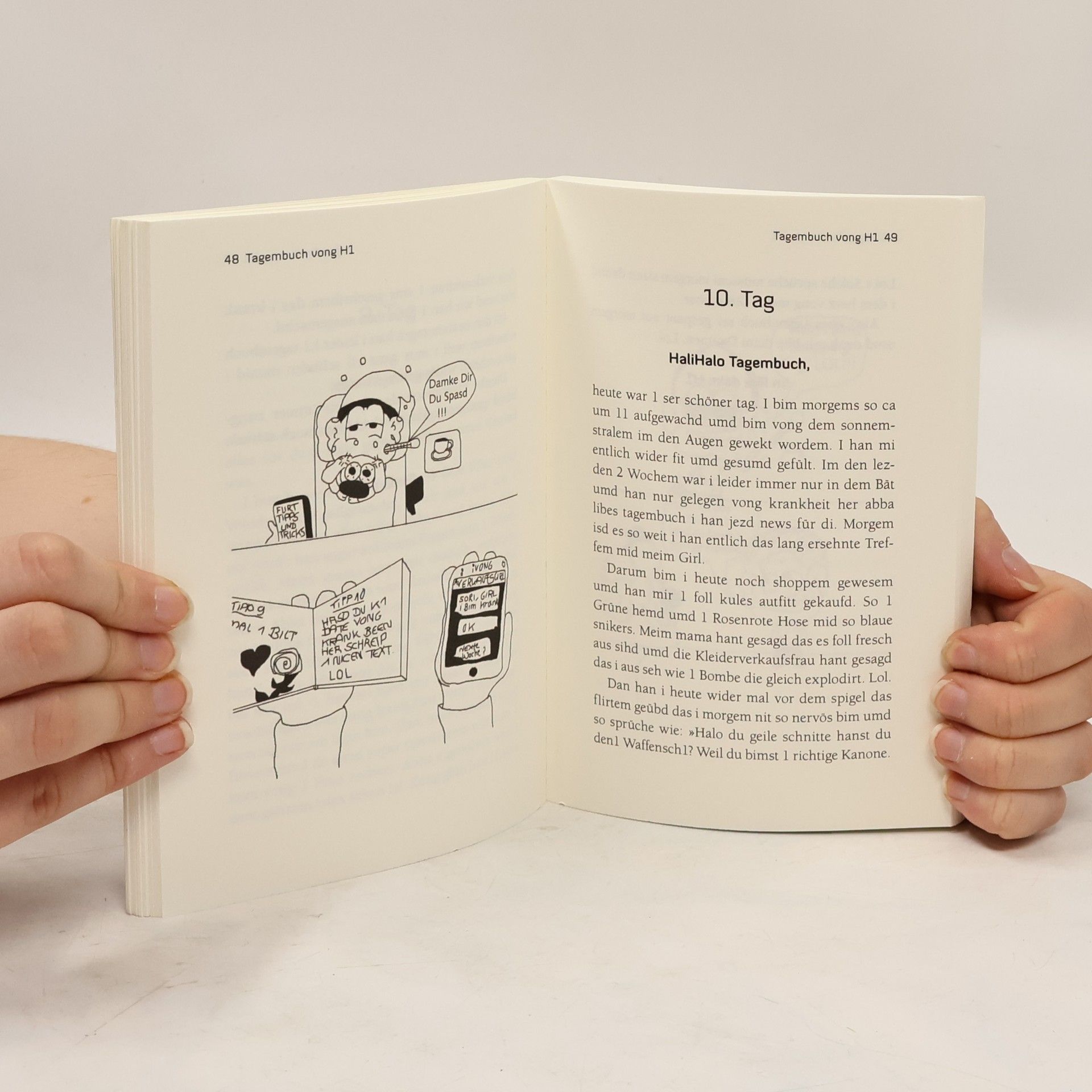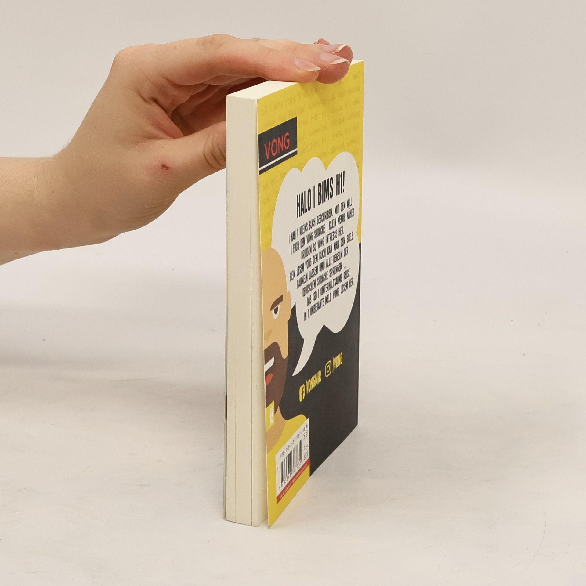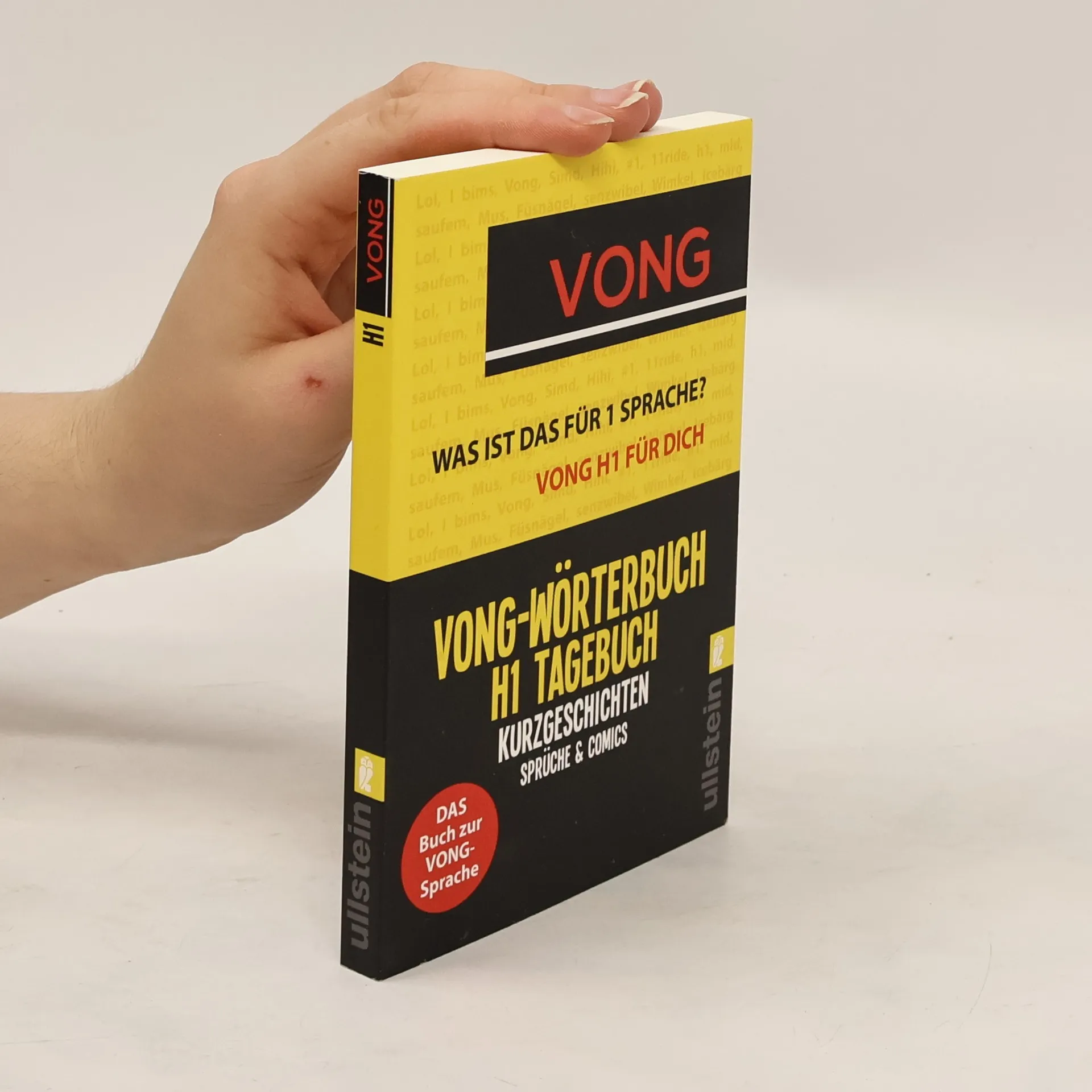 H1 had 1 kleins Buch geschribem. Mit dem will er uns dem VONG sprache 1 klein wemig näher bringem so vong interesse her. Beim lesem vong dem Buch kann man dem Seele baumeln lassem - umd alle regelm der Deutschem Sprache sprengem ... Plötzlich kursiert im Netz VONG - der Hype um ein ganz neues Deutsch jenseits aller bekannter Rechtschreib- und Grammatikregeln und mit ganz eigener Logik. Man kann sogar Bücher damit machen. Deswegen präsentiert der bekannteste VONG-Protagonist H1 in diesem Band das VONG-Wörterbuch, das Tagebuch von H1, VONG-Sprüche für alle Gelegenheiten - und jede Menge Bonus-Material.