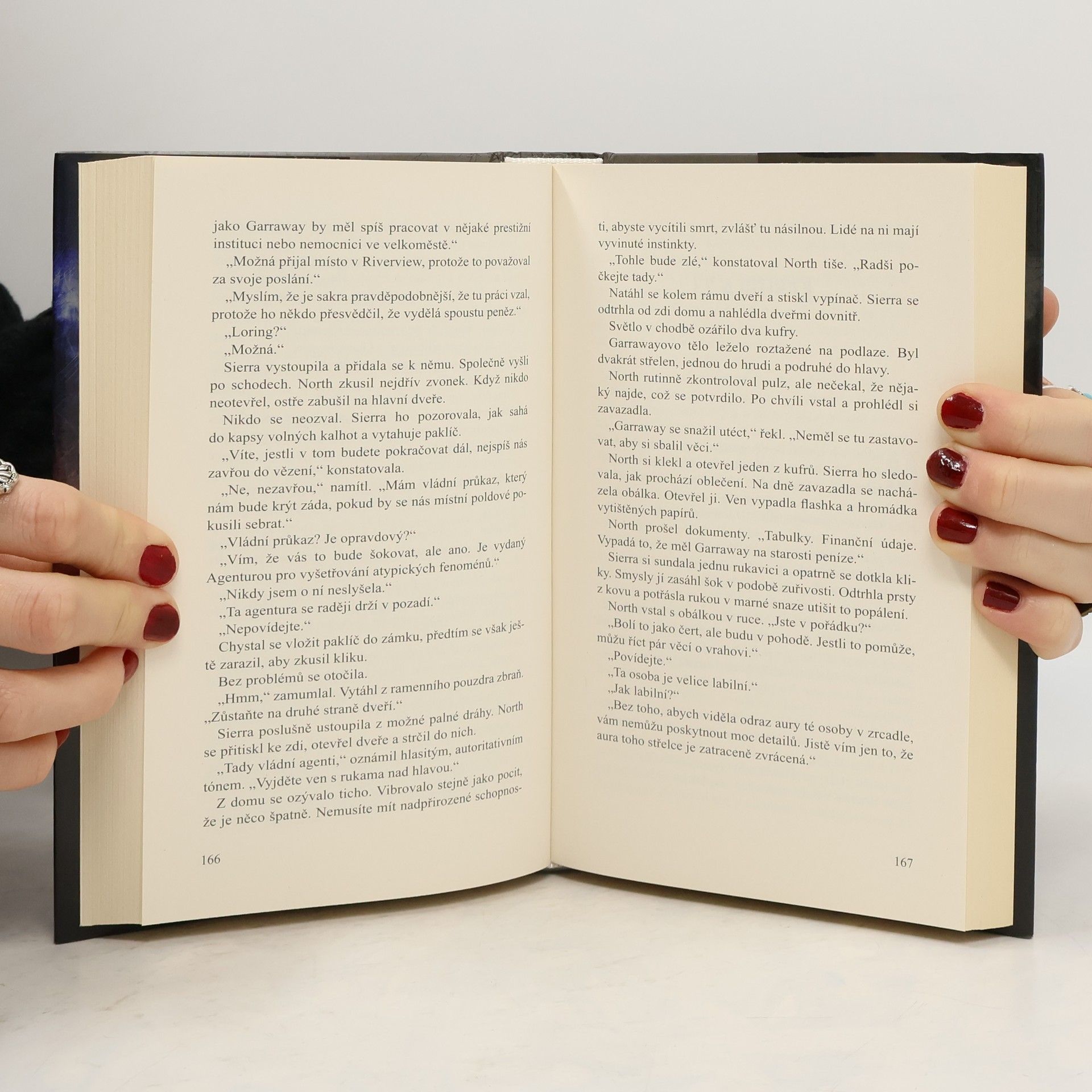 North Chastain má paranormální talent, díky němuž dokáže vypátrat ty nejnebezpečnější kriminálníky. Když jeho otec náhle upadne do komatu, North je přesvědčen, že jeho stav byl způsoben smrtícím artefaktem z tajné vládní laboratoře známé jen jako projekt Bluestone. North ví, že jeho jedinou nadějí na záchranu otce je najít daný předmět. Když jde o vystopování vrahů, nikdo se mu nevyrovná, ovšem aby našel určitou relikvii, bude potřebovat pomoc osoby, která se vyzná v tajemném světě obsesivních sběratelů, podvodných obchodníků a nemilosrdných nájezdníků... S pověstí v troskách kvůli falešnému obvinění hledá odbornice na starožitnosti Sierra Rainesová nový začátek. Když ji North Chastain požádá o pomoc, Sierra souhlasí, ačkoliv má jisté pochybnosti. North reprezentuje záhadnou Nadaci, tajnůstkářskou organizaci zřízenou proto, aby dohlížela na zločince s nadpřirozenými schopnostmi a ty, jako Sierra, kteří si vydělávají v temném podsvětí. North a Sierra se ocitnou na scéně Incidentu, jenž se odehrál před mnoha desítkami let ve Fogg Laku. Městečko a jeho obyvatele katastrofa v blízkých laboratořích projektu Bluestone navždy změnila. Pár odkrývá šokující pravdy o tom, co se té osudné noci stalo, ovšem pohrávají si s ohněm – někdo v městečku ví, co objevili, a udělá cokoliv, aby zajistil, že dávná tajemství zůstanou pohřbená.