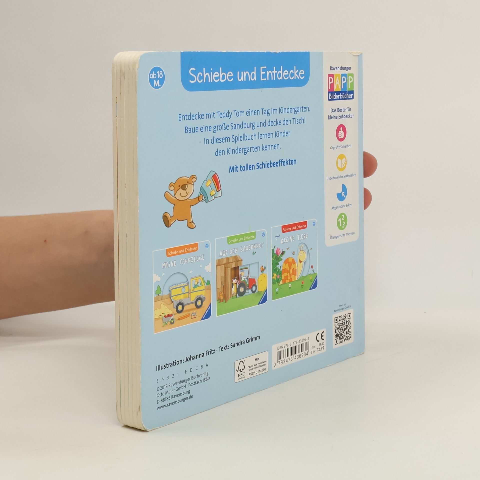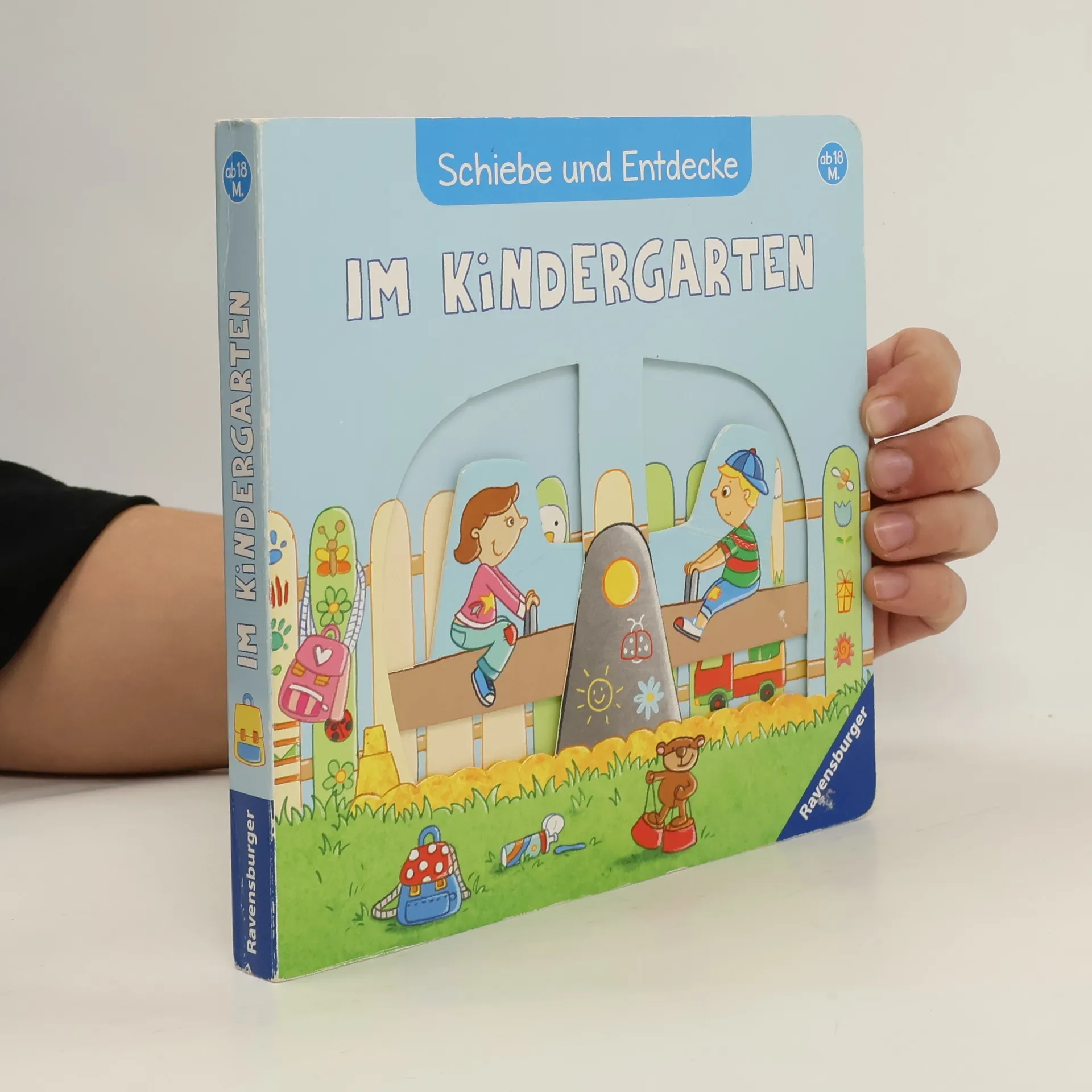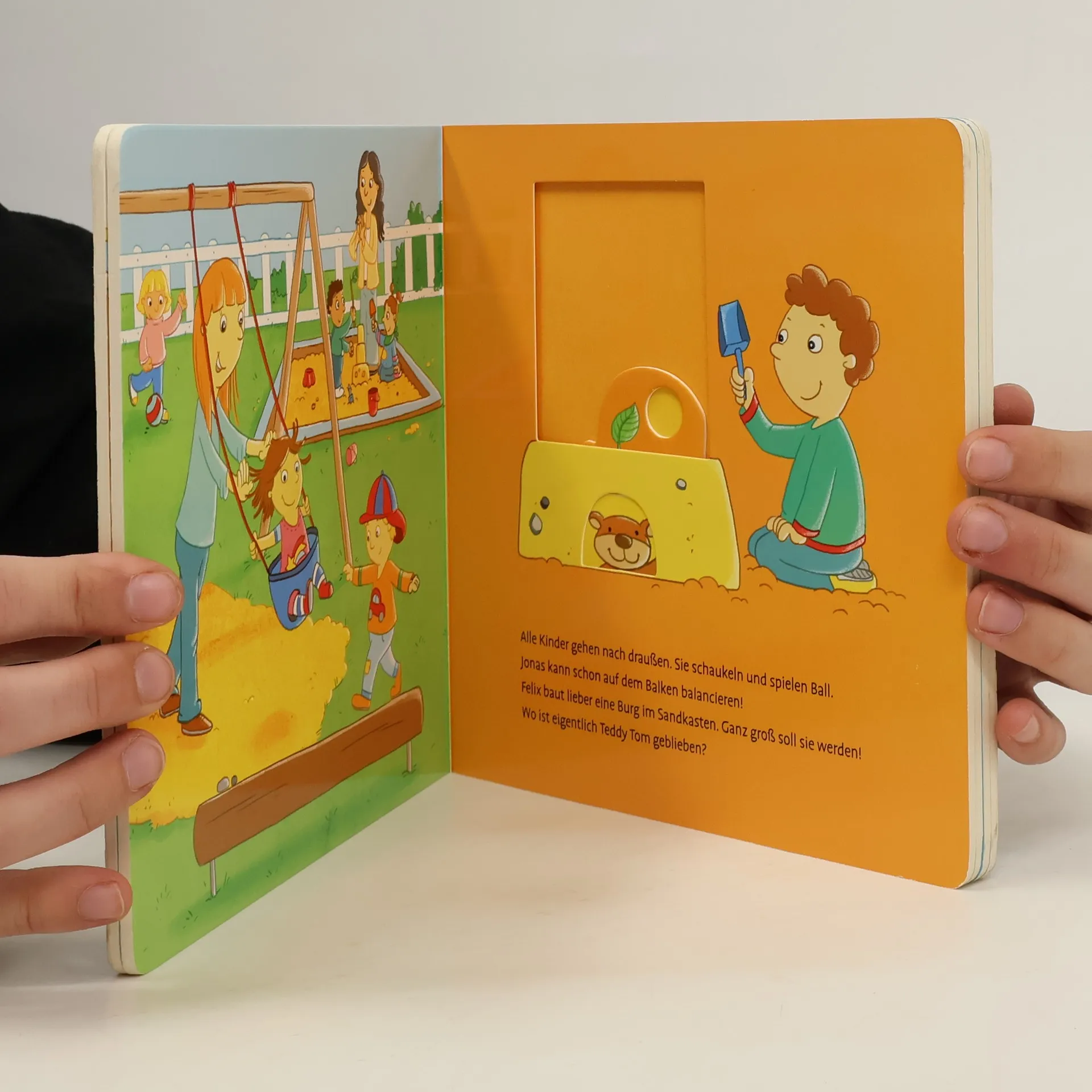Schiebe und entdecke den Kindergarten! Wohin gehört der Rucksack? Was macht man auf dem Klo? Was kann man Spielen? Teddy Tom zeigt dir seine Welt. Große und stabile Schiebeeffekte erwecken den Kindergarten zum Leben.