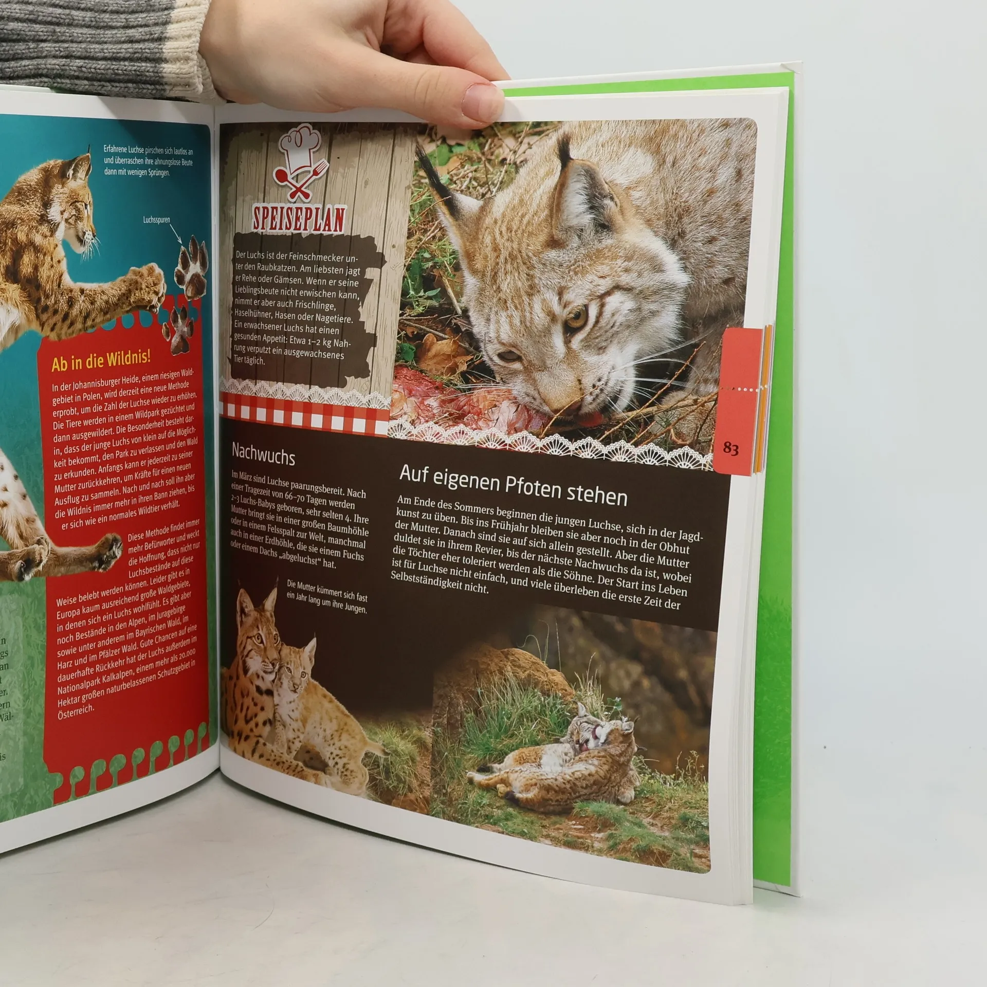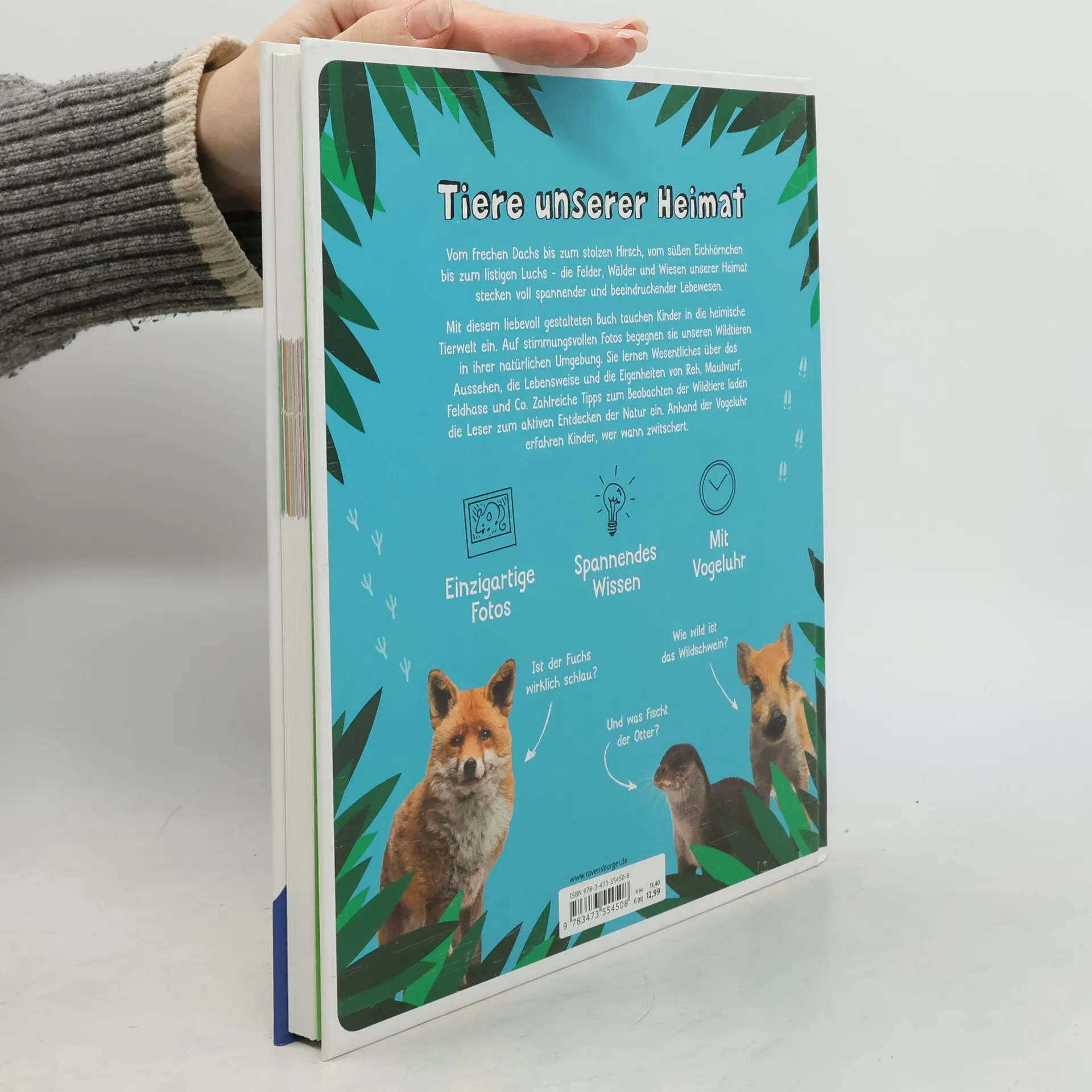 Wie wild sind Wildschweine? Wonach fischt der Otter? Und wie hält man Reh und Hirsch auseinander? In diesem Buch lernen Kinder faszinierende europäische Tierarten kennen: Sie beobachten drollige Murmeltiere in den Bergen, sehen die Kegelrobben am Strand und begeben sich auf die Spur von Braunbären. Kurze Texte liefern wichtige Informationen zu Ernährung, Verhalten und den Lebensräumen der Tiere. Die Wildnis vor unserer Haustür Was fischt der Otter? Wie wild ist das Schwein! Wo brummt der Bär? Vom frechen Dachs bis zum stolzen Hirsch, vom süßen Eichhörnchen bis zum listigen Luchs - die Felder, Wälder und Wiesen unserer Heimat stecken voll schützenswerter, spannender und beeindruckender Lebewesen. Spannendes Wissen In diesem liebevoll gestalteten Fotosachbuch lernen Kinder die Tiere unserer Heimat kennen. Sie lernen wissenswerte und spannende Fakten über das Aussehen, die Lebensweise und die Eigenheiten von Reh, Maulwurf, Feldhase und Co. Sie erfahren, warum Gämse so gut klettern können, warum das Wiesel praktisch überall durchkommt und wie Elch und Biber bei der Nahrungssuche zusammenarbeiten. Die Natur entdecken Zahlreiche Tipps zum Beobachten der Wildtiere laden die Leser zum aktiven Entdecken der Natur ein. Anhand der Vogeluhr erfahren die Kinder, wer wann zwitschert.