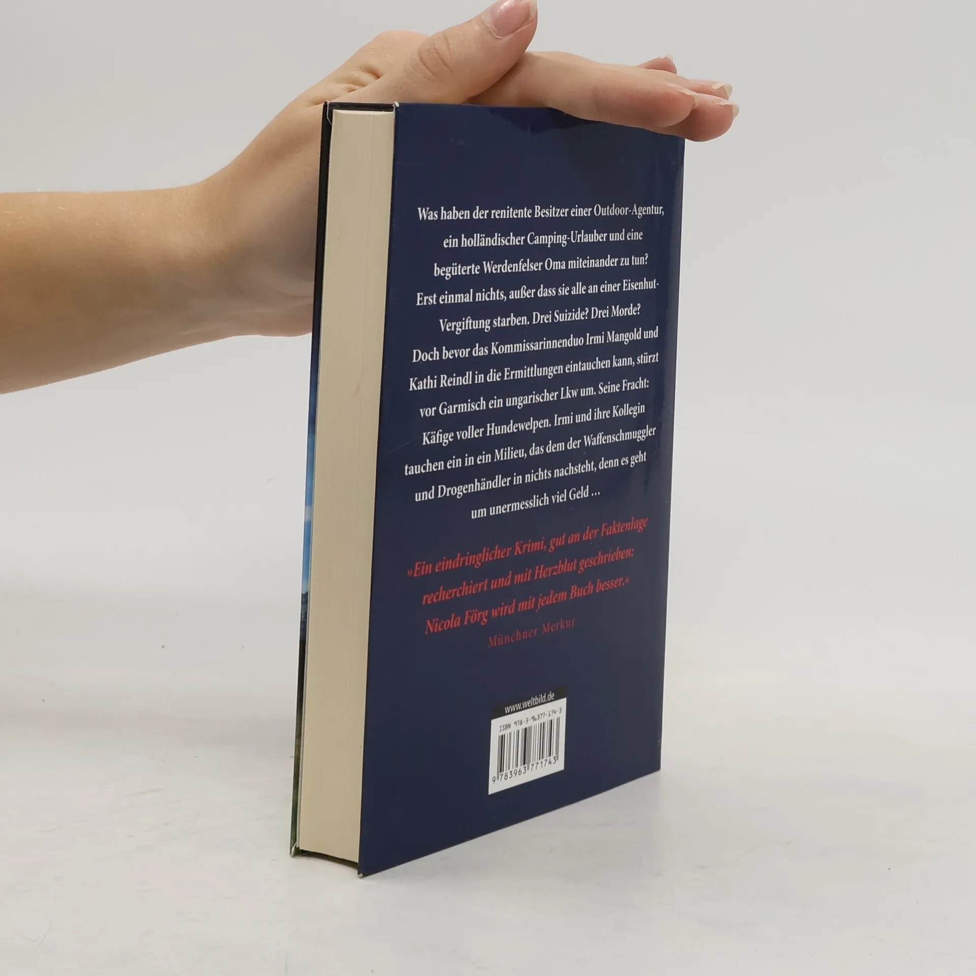 Der Inhaber einer Bergsportschule, der gegen eine beliebte All-Inclusive-Ferienkarte kämpft. Eine rüstige Oma, die in ihrer Villa nicht schlecht lebt. Ein niederländischer Tourist, der auf einem Campingplatz im Karwendel urlaubt. Sie haben nichts miteinander zu tun, außer dass sie alle an einer Eisenhut-Vergiftung gestorben sind. Und dann kippt vor Garmisch ein ungarischer Lkw um. Seine Fracht: Käfige voller Hundewelpen. Kommissarin Irmi Mangold und ihre Kollegin tauchen ein in ein Milieu, das dem der Waffenschmuggler und Drogenhändler in nichts nachsteht, denn es geht um sehr viel Geld …