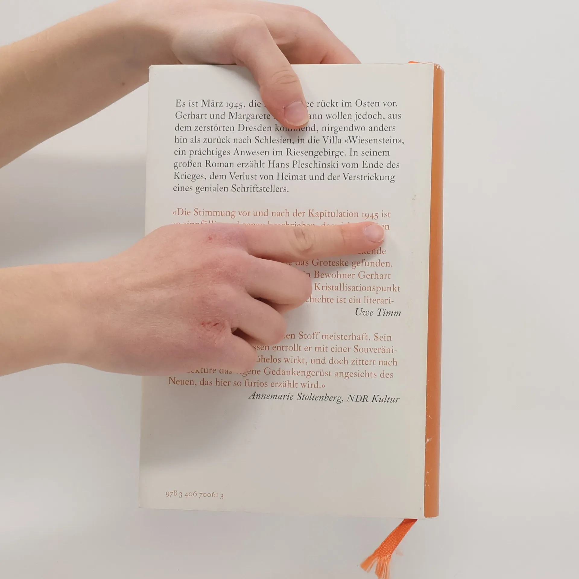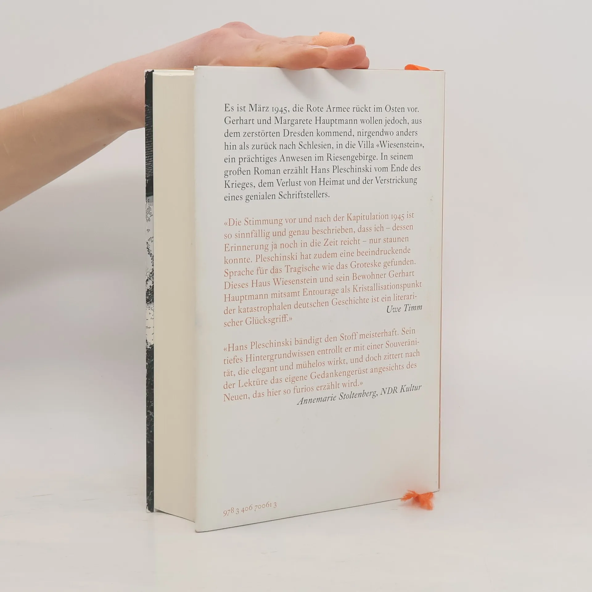 Ein alter Mann, ein berühmter Nobelpreisträger, verlässt mit seiner Frau ein Sanatorium in dem zerstörten Dresden und wird militärisch zum Zug begleitet. Es ist März 1945, und das Paar, Gerhart und Margarete Hauptmann, strebt nach Schlesien, in ihre Villa „Wiesenstein“, um ihr luxuriöses Leben in einer malerischen Landschaft fortzusetzen. Umgeben von einem Personal aus Masseur, Zofe, Butler, Gärtner, Köchin und Sekretärin, versuchen sie, inmitten der Barbarei zu leben. Doch ist es die richtige Entscheidung, im Dritten Reich zu bleiben? Was ist der Preis dafür? Können sie und ihre Entourage unbeschadet leben, während der Krieg verloren geht und russische Truppen sowie polnische Milizen näher rücken? Hans Pleschinski schildert eindringlich und lebhaft das Leben des genialen Gerhart Hauptmann, geprägt von Liebe, Hoffnung, Verzweiflung und Angst. Er thematisiert das Ende des Krieges, den Verlust der Heimat und die große Flucht, und erweckt eine verlorene Welt zum Leben, ergänzt durch unbekannte Tagebuchnotizen. Die Erzählung ist die Geschichte eines irrend-liebenden Genies und einer sich gegen das Unvermeidliche stemmenden Welt. Ein überwältigender Roman, der die komplexe Realität dieser Zeit einfängt.