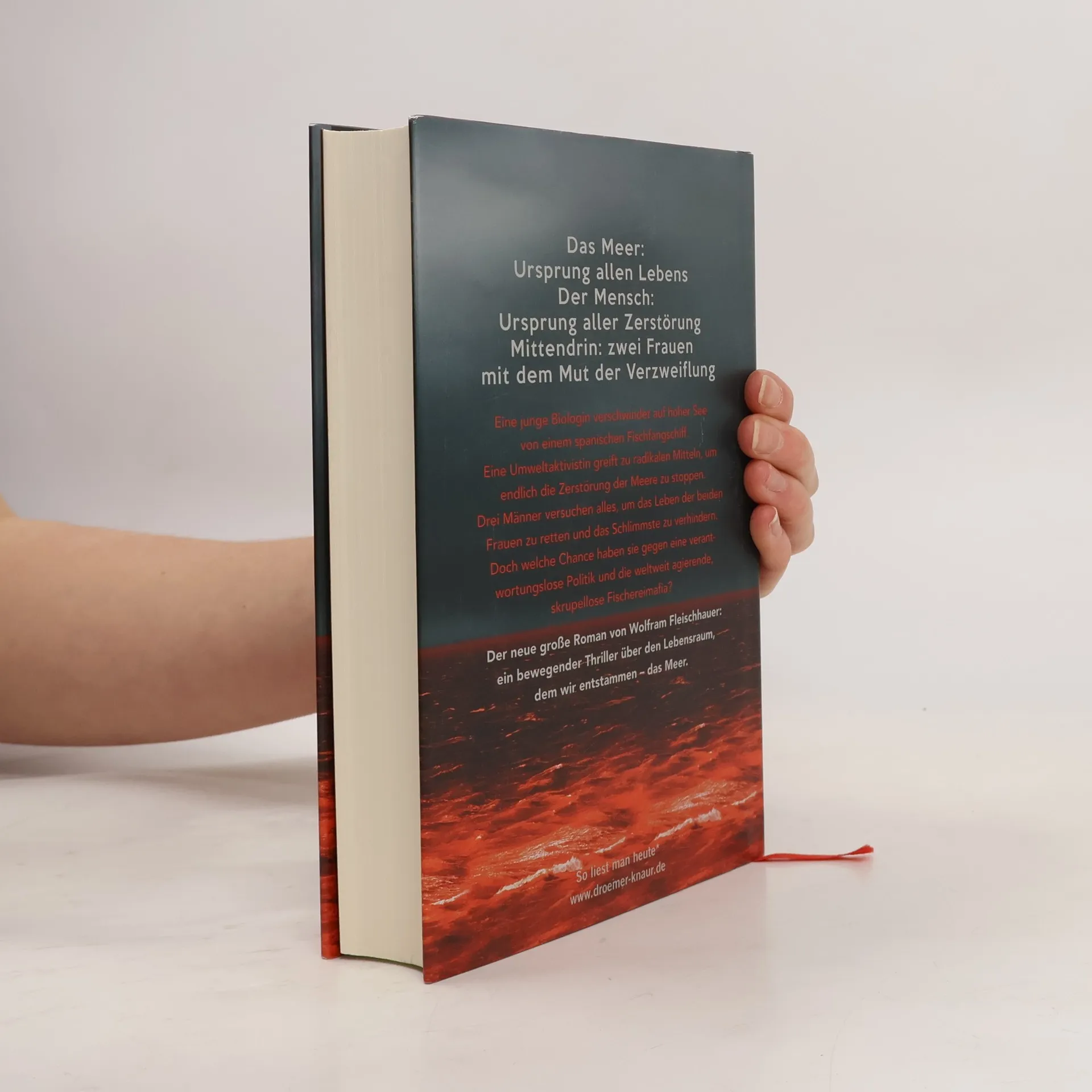 Das Meer: Ursprung des Lebens. Der Mensch: Ursprung der Zerstörung. Ein Roman über Gut und Böse, über Leben und Tod. Dramatisch und erschreckend realistisch verknüpft Wolfram Fleischhauer brisante Themen mit atemloser Spannung. Teresa verschwindet spurlos auf einem modernen Fischfangschiff. Ihr Geliebter und Ausbilder John Render von der EU-Behörde in Brüssel ist entsetzt. Ragna di Melo und ihre radikalen Umweltaktivisten sind ebenfalls am Boden zerstört, da sie eine mörderische Methode entwickelt haben, um die skrupellose Ausbeutung der Meere zu stoppen. Als Ragnas Vater, ein einflussreicher Schweizer Lobbyist, von den Aktivitäten seiner Tochter erfährt, die seine eigenen Geschäftsinteressen gefährden, muss er handeln. Er reist nach Südostasien, wo Ragna sich versteckt, und weiß, dass sie niemals mit ihm sprechen wird. Daher heuert er den jungen Dolmetscher Adrian an, der eine leidenschaftliche Affäre mit Ragna hatte, ohne ihn jedoch über die wahren Gründe einzuweihen. Drei Männer auf verzweifelter Suche, zwei Frauen in Todesgefahr – zwischen ihnen der brutale Apparat der globalen Fischereimafia, eine gleichgültige Öffentlichkeit und eine handlungsunfähige Politik. Fleischhauer entwirft ein erschreckend realistisches Katastrophenszenario und erzählt von den Grenzen der Liebe und unserer Sehnsucht nach einem neuen Umgang mit der Natur.