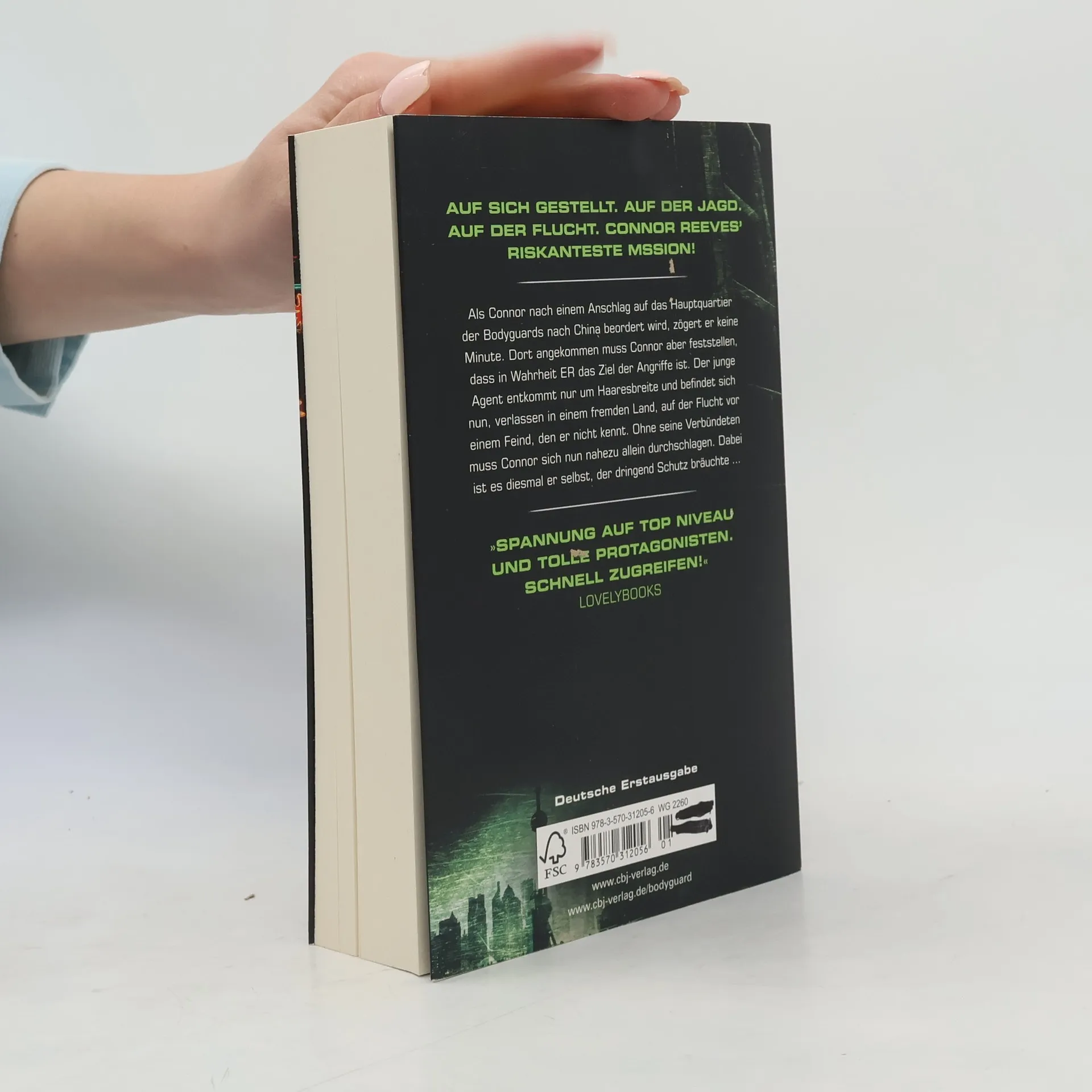 Auf sich gestellt. Auf der Jagd. Auf der Flucht. Als Connor nach einem Anschlag auf das Hauptquartier der Bodyguards nach China beordert wird, zögert er keine Minute. Dort angekommen muss Connor aber feststellen, dass in Wahrheit ER das Ziel der Angriffe ist. Der junge Agent entkommt nur um Haaresbreite und befindet sich nun, verlassen in einem fremden Land, auf der Flucht vor einem Feind, den er nicht kennt. Ohne seine Verbündeten muss Connor sich dort nahezu allein durchschlagen. Dabei ist es diesmal er selbst, der dringend Schutz bräuchte ... Erfolgsgarant Chris Bradford liefert mit „Bodyguard“ kugelsichere Action kombiniert mit explosiven Showdowns.