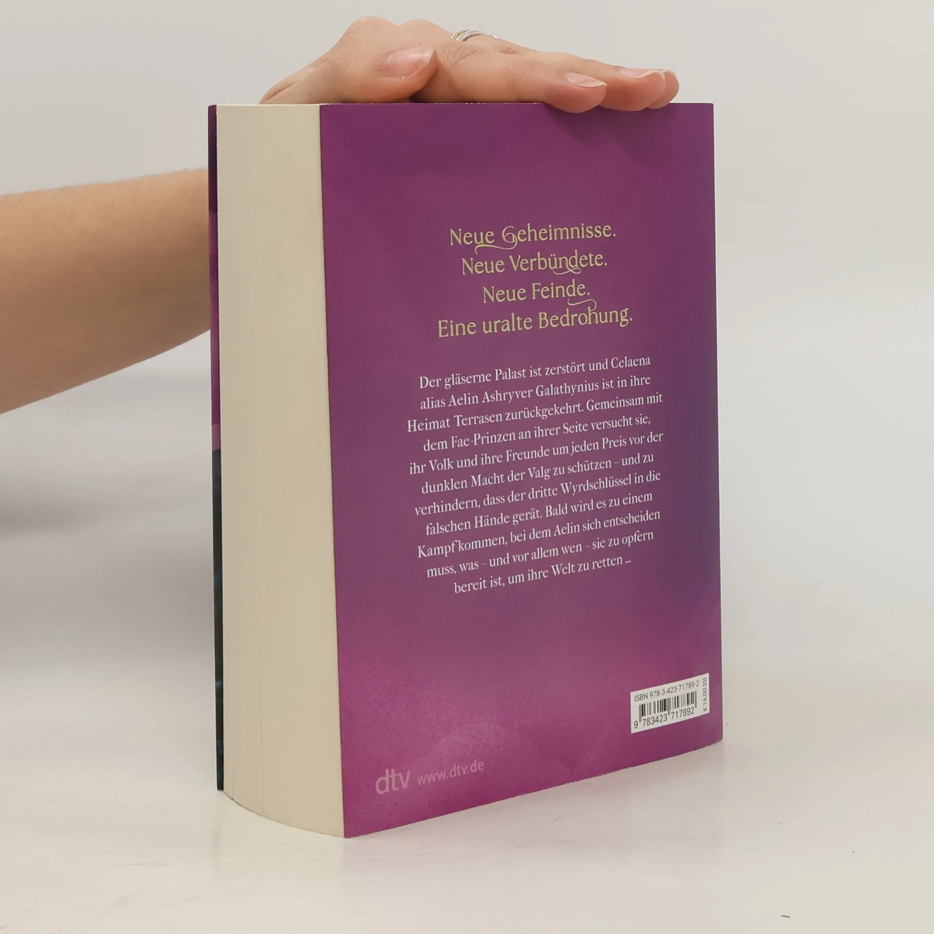 Heiß ersehnt: Band 5 des großen Epos Celaena ist in ihre Heimat zurückgekehrt, aber nicht mehr als Celaena Sardothien, sondern als Aelin Galathynius. Das ist ihr wahrer Name, der Name der rechtmäßigen Königin von Terrasen. Doch der Weg auf den Thron ist noch lang, denn von allen Seiten nahen Feinde heran. Aelin muss sich nicht nur gegen den dunklen Valg-König Erawan, der ihre Welt erobern und versklaven möchte, behaupten, sondern auch gegen die Königin der Fae, die unsterbliche Maeve. Es wird zu einem Kampf kommen und Aelin muss sich fragen, was – oder wen – sie bereit ist zu opfern, um ihre Welt zu retten … Doch ganz gleich, was auch passiert, Rowan steht unverrückbar an ihrer Seite.   Kennen Sie bereits die weiteren Serien von Sarah J. Maas bei dtv? »Das Reich der sieben Höfe« »Crescent City«