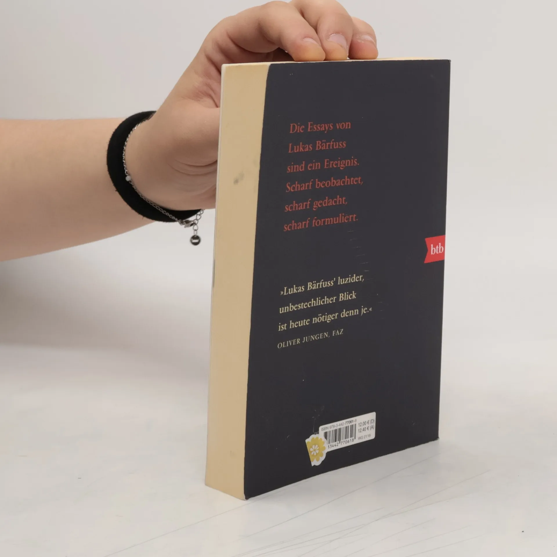 Die gefeierten Essays des Georg-Büchner-Preisträgers. Diese Essays sind ein Ereignis: scharf beobachtet, scharf gedacht, scharf formuliert. Ob er über große geschichtliche und politische Themen nachdenkt oder über ganz konkrete Fragen des Alltags - Lukas Bärfuss ist ein Autor und Denker von europäischem Format. Er schafft es, auch komplizierte Sachverhalte so zu erzählen, dass man sich eingeladen fühlt, an seinen Gedankengängen teilzunehmen. Mit Überraschung, Staunen und immer mit Genuss und Gewinn. Sei es, wenn er über die Schweiz spricht oder über Erfahrungen in Afrika und Südamerika, ob er über Autoren von Goethe, Nietzsche und Tolstoi bis Nicolas Born nachdenkt oder über Ovid, Stendhal und Sakurai, immer erfährt man Erhellendes. Bärfuss schreibt über Religion und Glauben, über die Moral im Journalismus und über das Leben eines Vertreters für Geräteentkalker.