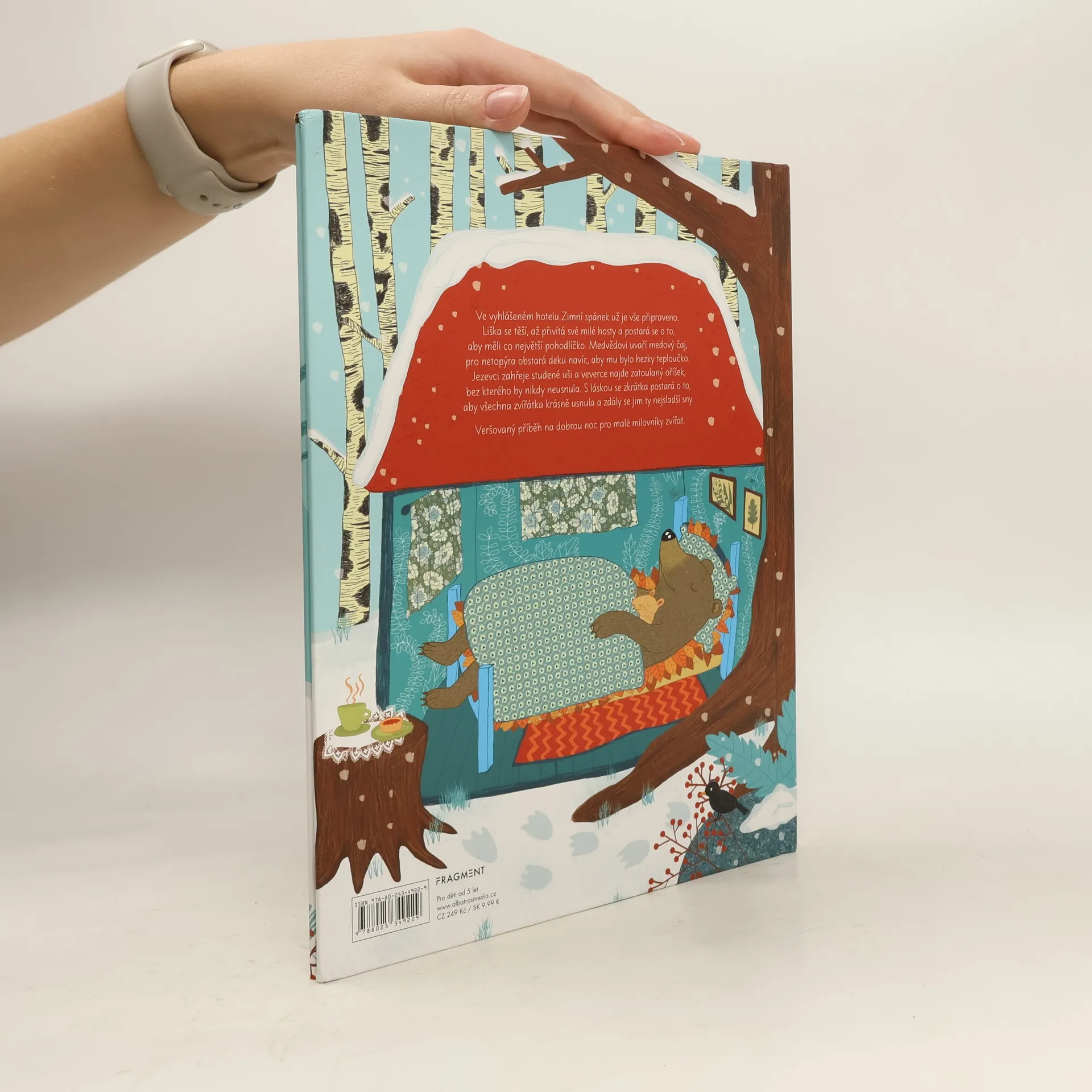 Ve vyhlášeném hotelu Zimní spánek už je vše připraveno. Liška se těší, až přivítá své milé hosty a postará se o to, aby měli co největší pohodlíčko. Medvědovi uvaří medový čaj, pro netopýra obstará deku navíc, aby mu bylo hezky teploučko. Jezevci zahřeje studené uši a veverce najde zatoulaný oříšek, bez kterého by nikdy neusnula. S láskou se zkrátka postará o to, aby všechna zvířátka krásně usnula a zdály se jim ty nejsladší sny.