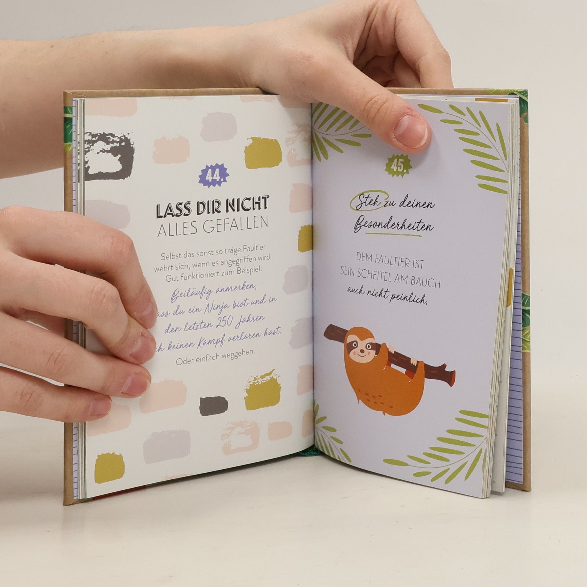 Lustiges Faultier-Geschenk für entspannte Zeitgenossen Ob zum Geburtstag, zu Weihnachten, als kleine Aufmunterung oder Gute-Besserungsgruß, dieses Buch ist das perfekte Geschenk für alle Faultier-Liebhaber.Hat Ihre Kollegin zu viel Stress? Oder gönnen sich Ihre Schwester oder Ihr Bruder zu wenig Entspannung? Dieses Buch zeigt 100 Dinge auf, die man von einem Faultier lernen kann, um gelassen zu bleiben. 100 Dinge Buch für mehr Entspannung mit süßen Faultieren Das Ideen-Buch überrascht mit lustigen, nicht ganz ernst gemeinten Aufgaben für einen stressfreien Alltag. Ob entspanntes Wolkengucken oder exzessive Baumumarmung, Faultiere wissen einfach, wie man ein gemütliches Leben verbringt. Genau deshalb können Menschen so viel von ihnen lernen! Modern gestaltetes Buch mit 96 Seiten Lustige Aufgaben und süße Faultier-Illustrationen Hochwertiges Cover mit robuster Oberflächenveredelung Das Cover ist schmutz- und kratzunempfindlich Handliches Format, das man überall hin mitnehmen kann (12 x 16,5 cm) Praktisches Lesebändchen Das Papier ist der Umwelt zuliebe FSC-zertifiziert