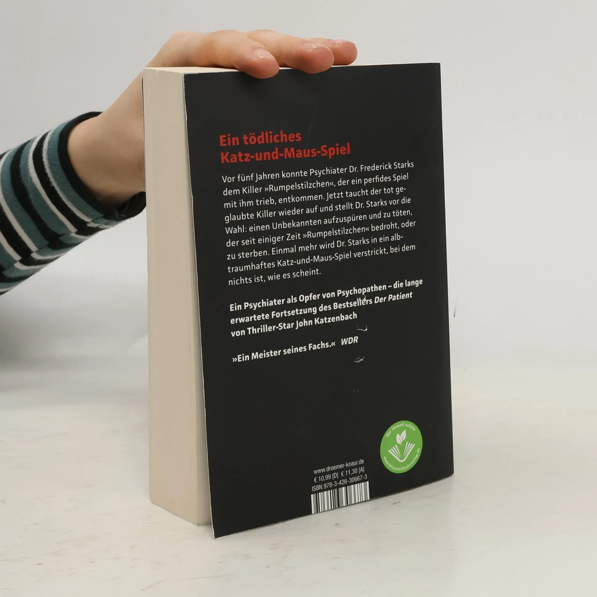 Ein Psychiater wird zum Gejagten! Dr. Frederick Starks glaubte, dem perfiden Killer „Rumpelstilzchen“ entkommen zu sein, den er in einer Schießerei besiegt hatte. Doch plötzlich taucht dieser Killer in seiner Praxis in Miami auf und stellt Starks vor eine unmögliche Wahl: Entweder er findet und tötet einen Unbekannten, der den Killer und dessen Bruder, einen Anwalt, bedroht, oder er verliert sein eigenes Leben. Starks findet sich in einem albtraumhaften Katz-und-Maus-Spiel wieder, in dem alle Beteiligten nur die Auslöschung ihres Widersachers im Sinn haben. Nichts ist, wie es scheint, und Starks‘ Leben steht auf der Kippe. Dieser raffinierte Psychothriller des amerikanischen Bestseller-Autors ist die Fortsetzung von „Der Patient“, kann jedoch unabhängig gelesen werden. „Ein Meister seines Fachs.“ – WDR „Der Psychothriller überzeugt vor allem wegen Katzenbachs gutem Händchen bei der Auswahl seiner Figuren.“ – krimi-couch online