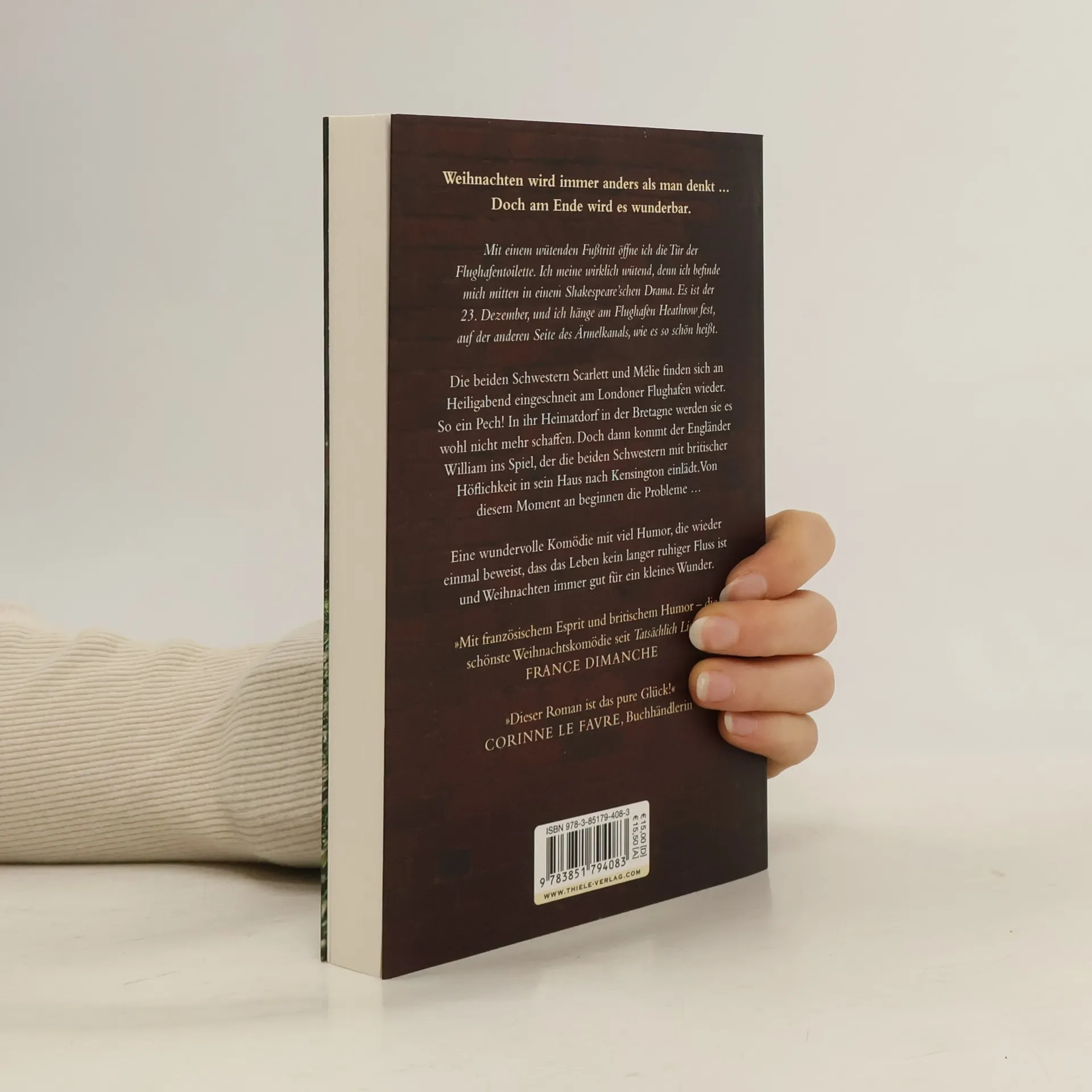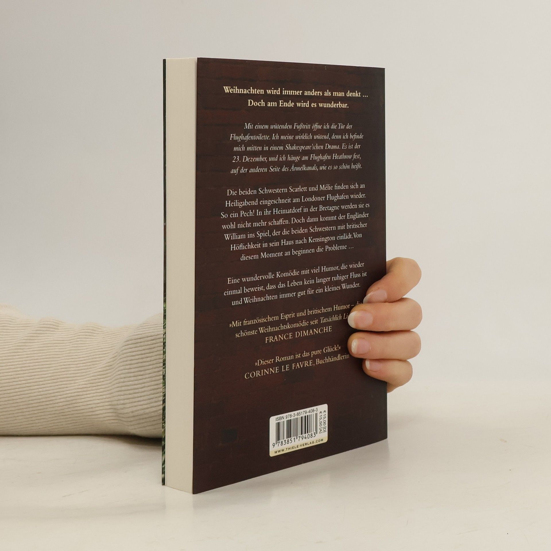 Weil das Leben voller Überraschungen ist, sind die beiden Schwestern Scarlett und Mélanie am Tag vor Heiligabend nicht auf dem Weg nach Hause in die Bretagne, sondern sitzen am Flughafen von Heathrow fest: Wegen eines Schneesturms sind alle Flüge verschoben. Und das ausgerechnet in dem Jahr, in dem ihr Vater gestorben ist und sie ihre Mutter auf keinen Fall an Weihnachten allein lassen wollen. Und weil in Scarletts Leben immer alles schiefgeht, benutzt sie aus Versehen die Herrentoilette und trifft dort auf Willam, einen distinguierten englischen Gentleman, der sich einen ironischen Kommentar nicht verkneifen kann und ansonsten die Ruhe bewahrt. Als nach Stunden des gemeinsamen Ausharrens klar wird, dass der Flugverkehr eingestellt ist, lädt William die beiden Schwestern höflich ein, die Weihnachtstage in seinem Haus in Kensington zu verbringen. Doch dann steht unerwarteterweise Williams ganze englische Familie vor der Tür – Auftakt zu einem völlig verrückten Weihnachtsfest, das an gefühlsmäßigen Verwicklungen und tragikomischen Überraschungen nicht zu überbieten ist und an dessen Ende sich wundersamerweise zwei Hände unter dem Mistelzweig finden …