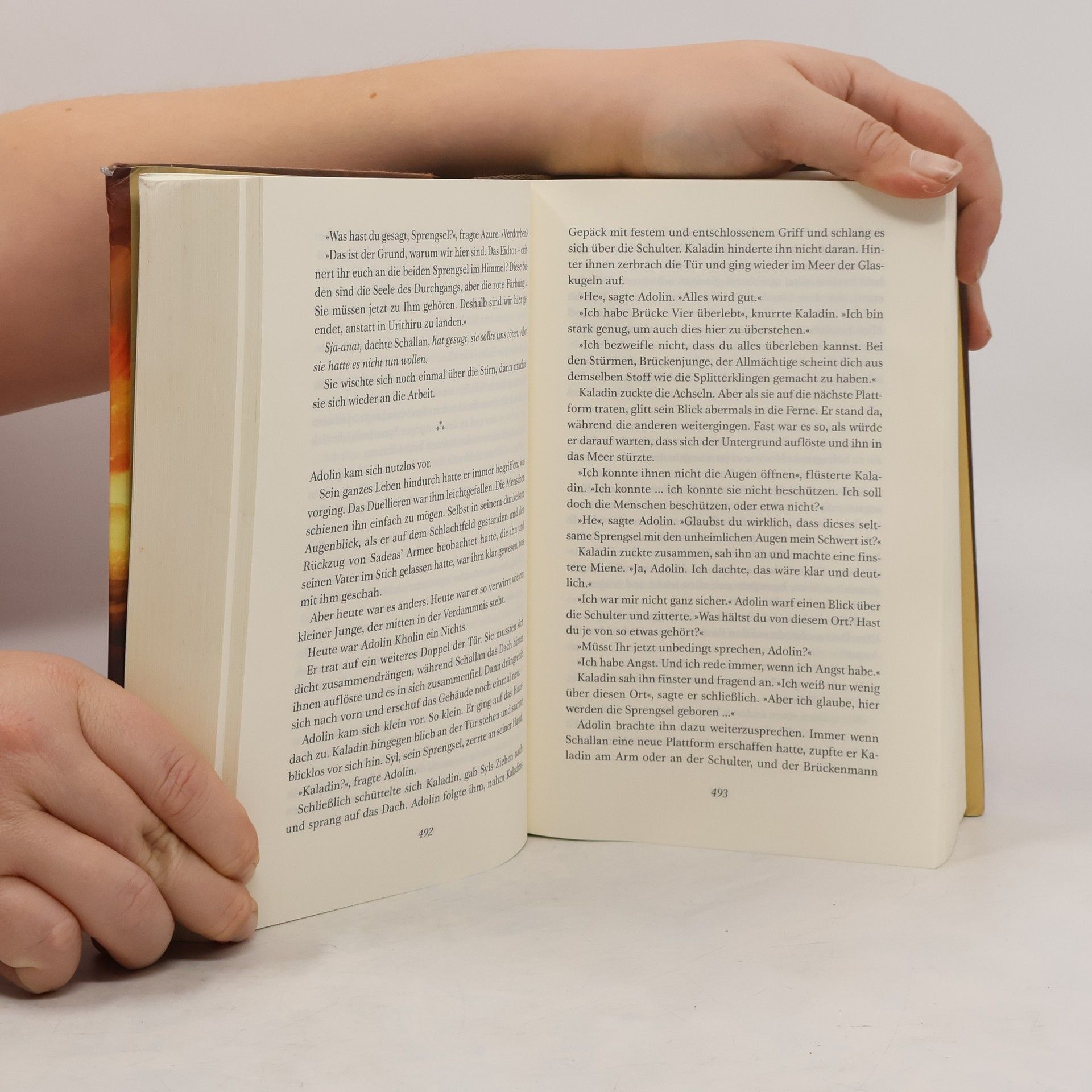 Hoch in den Bergen liegt die sagenumwobene Stadt Urithiru, erreichbar nur über die zwölf Eidtore. Hier versucht die junge Edelfrau Schallan Davar die Geheimnisse der uralten Ordensgemeinschaften zu entschlüsseln, die sich einst die Strahlenden Ritter nannten. Nur mit ihrer Hilfe können die Eidtore benutzt werden, und nur ihre Splitterklingen verleihen den Strahlenden übermenschliche Fähigkeiten. Aber wer waren sie wirklich, und warum wurden sie einst aufgelöst? Während Schallan nach Antworten sucht, die bei der Neugründung der Orden helfen können, begreift Fürst Dalinar, dass seine Vision, die Fürsten des Königreichs Alethkar wieder zu einen, noch viel zu klein gedacht war. Nicht nur die Alethi, sondern alle Völker von Roschar müssen vereint werden, denn es droht die alles verheerende Wüstwerdung und damit das Ende von ganz Roschar. Doch ein finsterer Schatten liegt auf dieser Hoffnung – Fürst Dalinars eigene, blutbefleckte Vergangenheit …