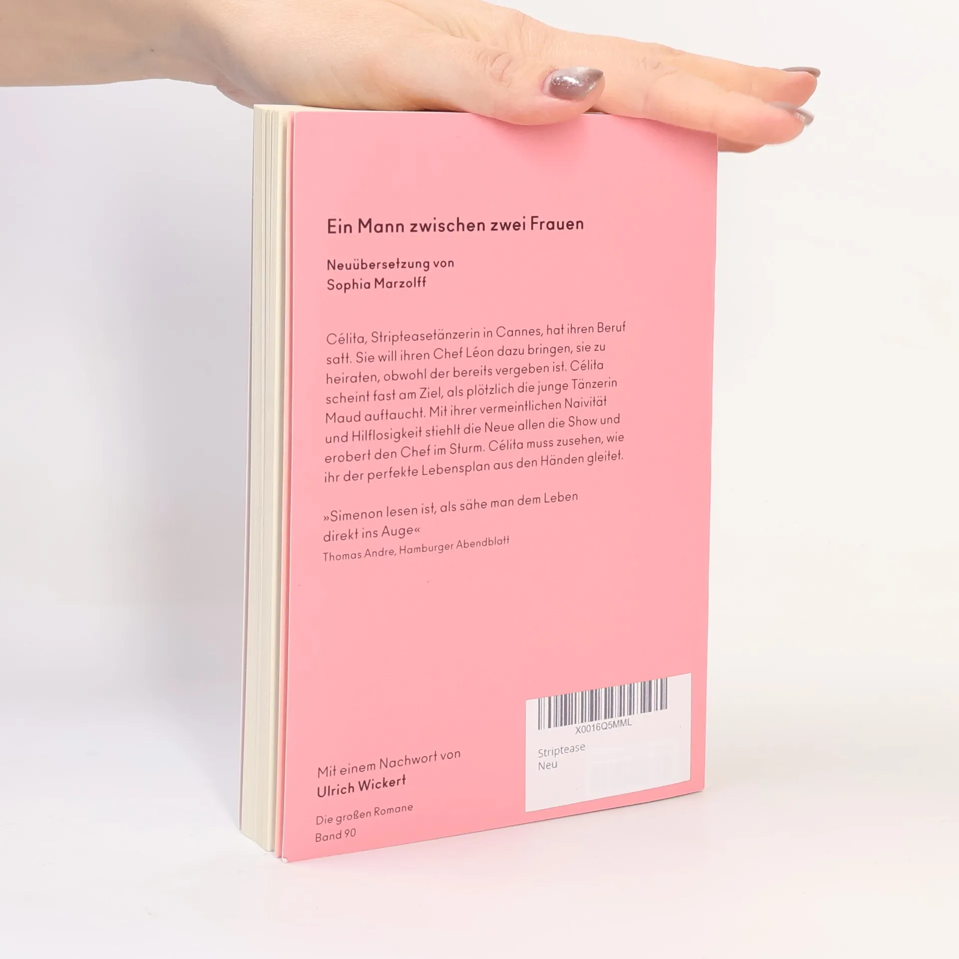 ZEIT FÜR MICH – ZEIT FÜR SIMENON»Georges Simenon ist der wichtigste Schriftsteller des 20. Jahrhunderts.« Gabriel García Márquez   Célita, Stripteasetänzerin in Cannes, hat ihren Beruf satt. Um dieses Leben hinter sich zu lassen, will sie ihren Chef Léon dazu bringen, sie zu heiraten, obwohl der bereits vergeben ist. Léon liegt ihr zu Füßen, und sie scheint fast am Ziel, als plötzlich die junge Tänzerin Maud auftaucht. Mit ihrer vermeintlichen Naivität und Hilflosigkeit stiehlt die Neue allen die Show und erobert den Chef im Sturm. Er hat nur noch Augen für Maud, und Célita muss zusehen, wie ihr der perfekte Lebensplan aus den Händen gleitet.   Bandnummer: 90
