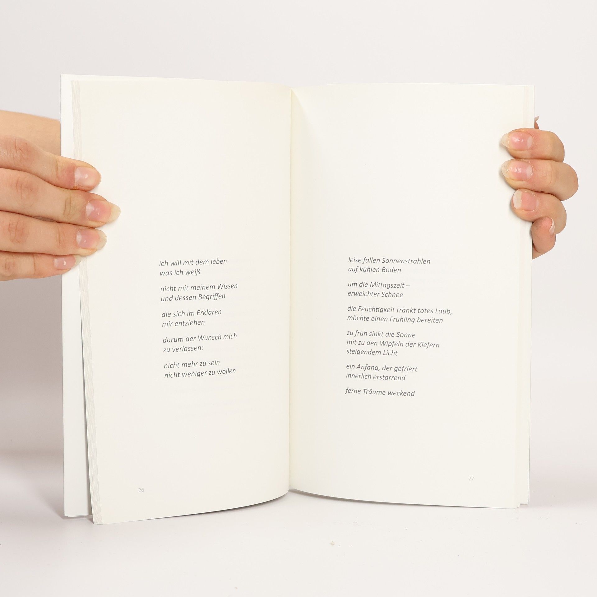 So manches Leben ruht auf einem Fundament aus zwischenmenschlichen Begegnungen oder besonderen Momenten in der Natur. Diese prägenden Themen durchziehen die Gedichte von Markus Seidl-Nigsch. Manchmal wärmen sie die Lesenden wie kräftige Lichtstrahlen, dann wiederum umreißen sie lediglich diffus schimmernd das Vergängliche. Die Fotografien von Sarah Christine Hujber ermöglichen den Lesenden eine besondere Betrachtungsweise bislang unbemerkter oder vernachlässigter Details und vermeintlicher Randerscheinungen des Alltags. Durch wiederkehrende Kontraste, etwa jenen zwischen Trockenheit und sattem Nass, eröffnen sie einen möglichen Zugang zu den Gedichten in »Lichtblicke«.
