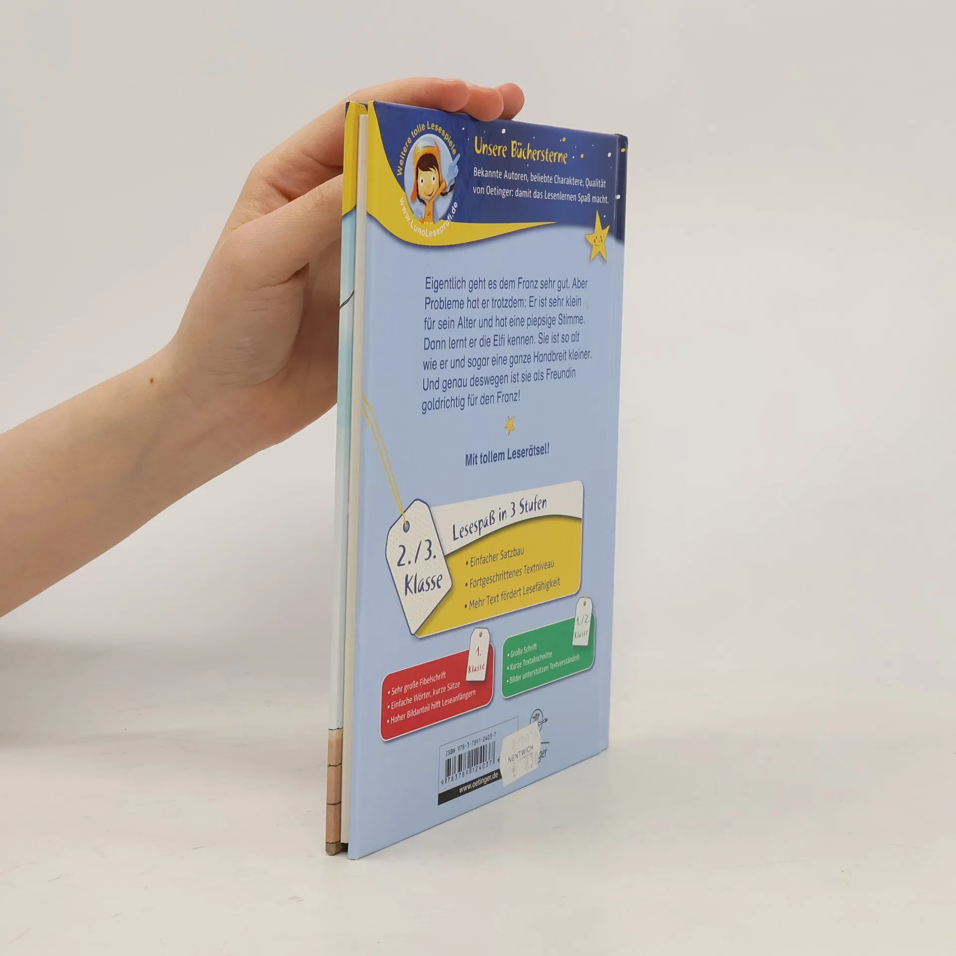Der Franz ist sehr klein für sein Alter. Und auch seine zwei besten Freunde bereiten ihm Sorgen: Die Gabi und der Eberhard können einander nämlich nicht leiden. Doch dann lernt der Franz die Elfi kennen. Sie ist nicht nur so alt wie er und eine ganze Handbreit kleiner. Sie ist auch sonst kein Glückskind. Und genau deswegen ist sie goldrichtig für den Franz! Lustig, frech und typisch Franz! Die Fortsetzung der absoluten Long- und Bestsellerserie für Erstleser. Lesen lernen mit „Büchersterne“ für die 2./3. Klasse: einfacher Satzbau, fortgeschrittenes Textniveau und ein höherer Textanteil, der die Lesefähigkeit geübter Leseanfänger fördert. Dazu ein Leserätsel im Anhang.
