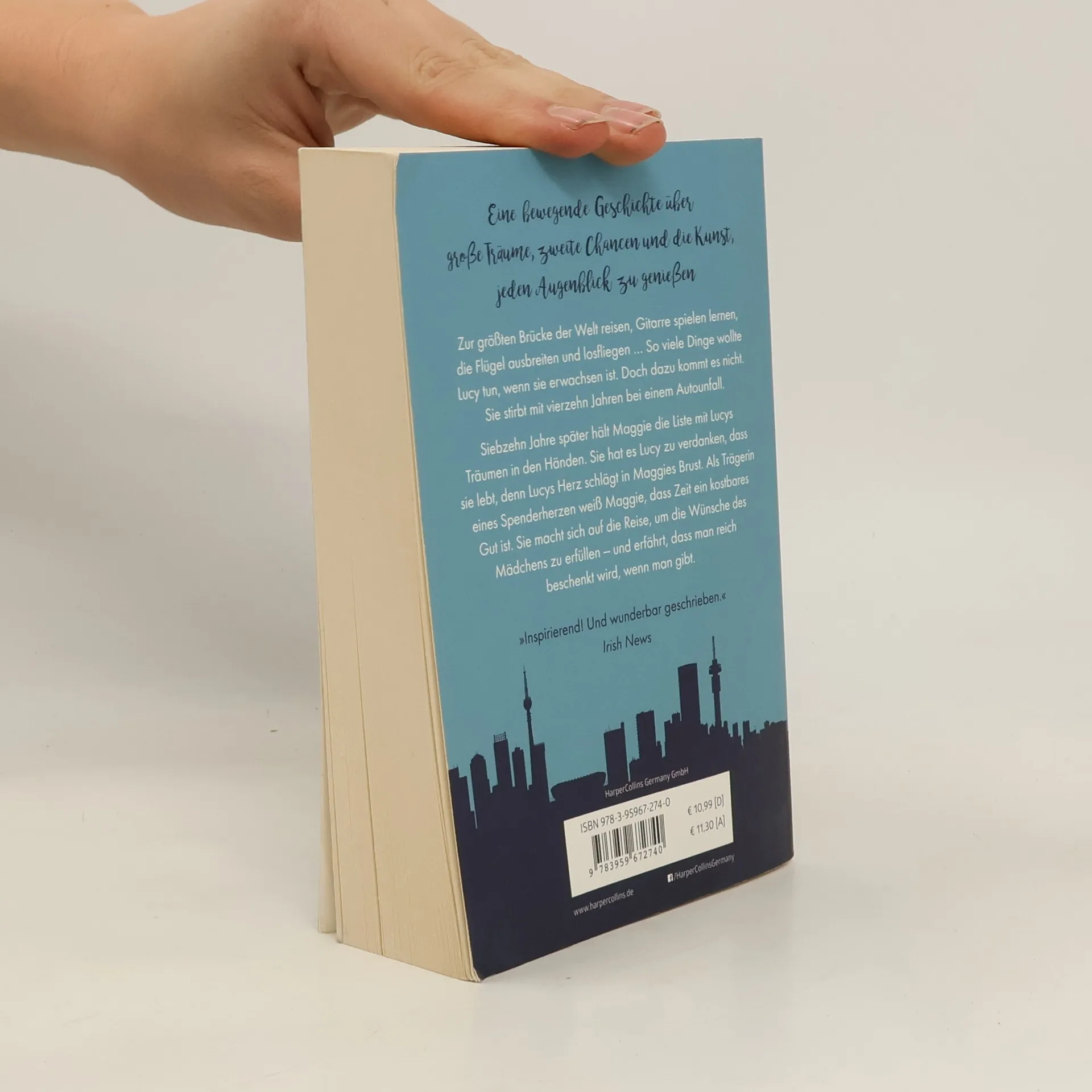 Eine bewegende Geschichte über große Träume, zweite Chancen und die Kunst, jeden Augenblick zu genießen Zur größten Brücke der Welt reisen, Gitarre spielen lernen, die Flügel ausbreiten und losfliegen … So viele Dinge wollte Lucy tun, wenn sie erwachsen ist. Doch dazu kommt es nicht. Sie stirbt mit vierzehn Jahren bei einem Autounfall. Siebzehn Jahre später hält Maggie die Liste mit Lucys Träumen in den Händen. Sie hat es Lucy zu verdanken, dass sie lebt, denn Lucys Herz schlägt in Maggies Brust. Als Trägerin eines Spenderherzens weiß Maggie, dass Zeit ein kostbares Gut ist. Sie macht sich auf die Reise, um die Wünsche des Mädchens zu erfüllen - und erfährt, dass man reich beschenkt wird, wenn man gibt. „Inspirierend! Und wunderbar geschrieben.“ Irish News
