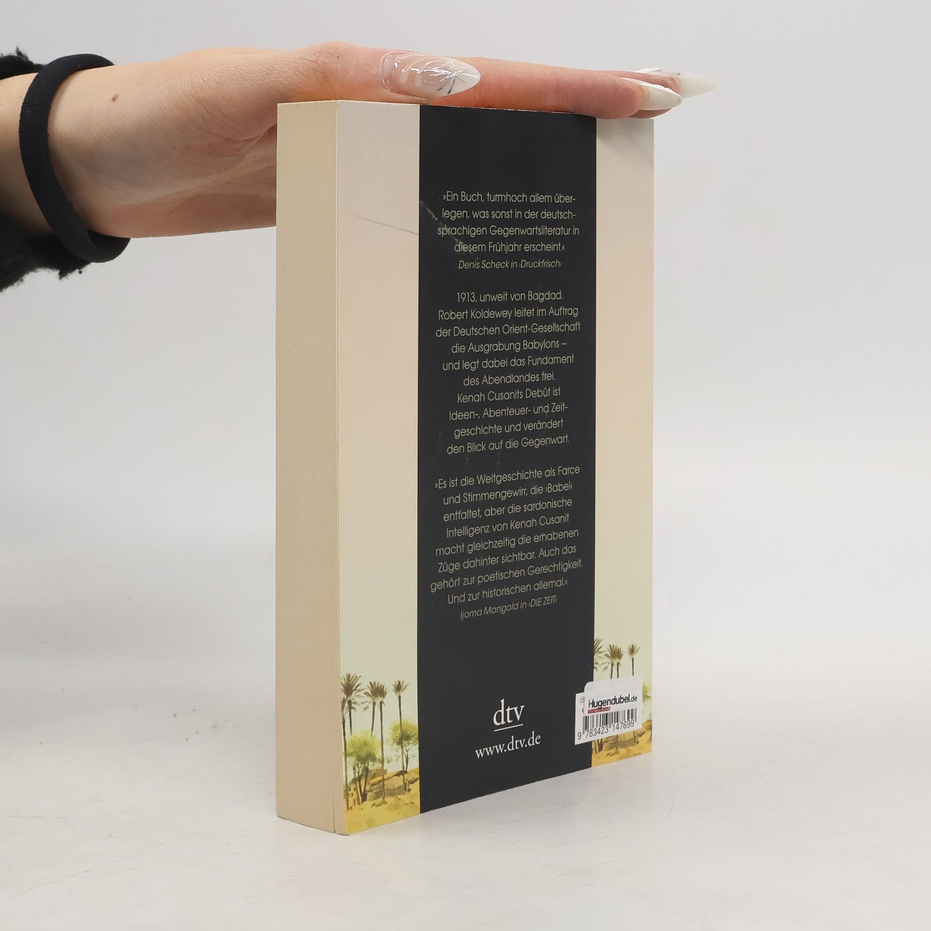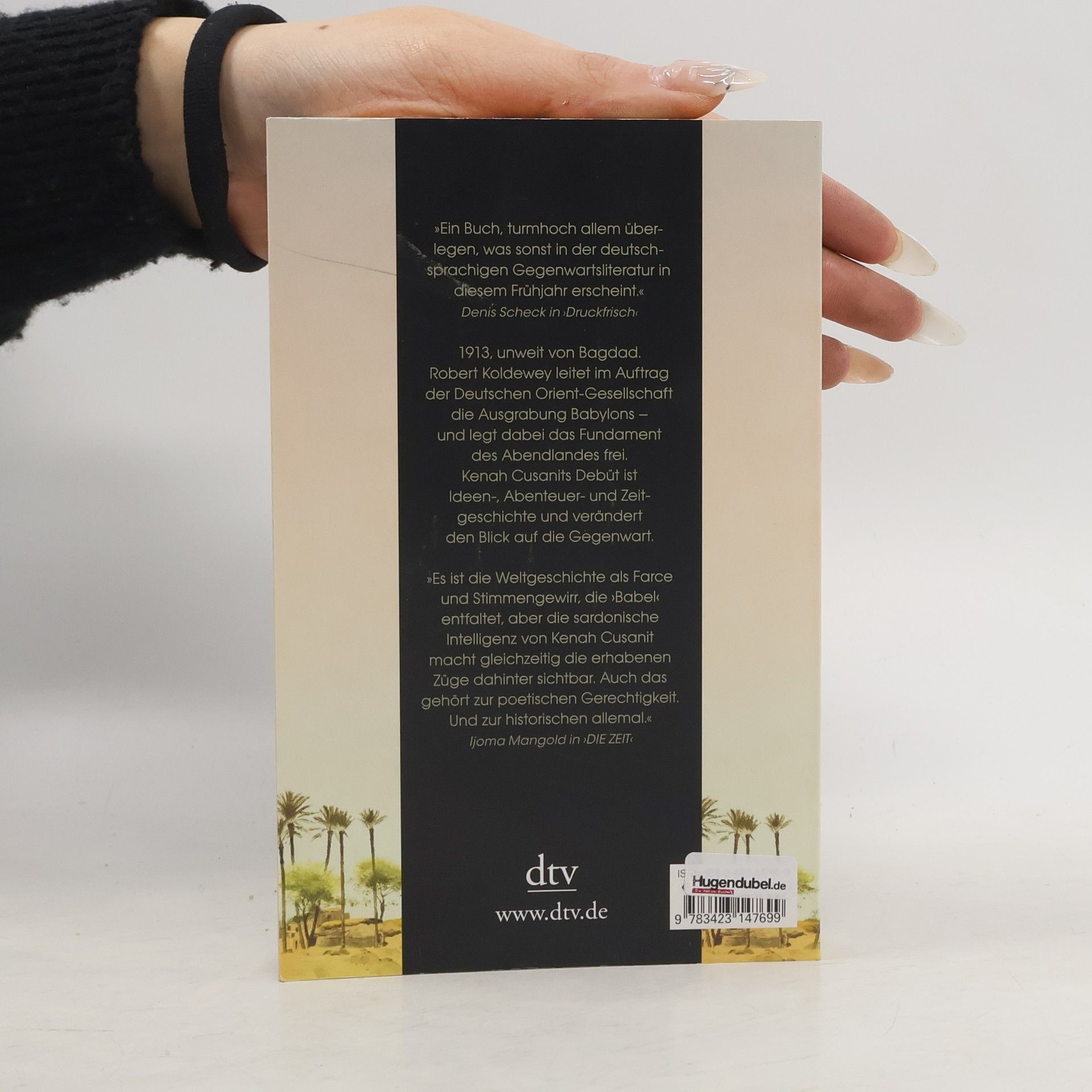 Ein deutscher Archäologe und eine biblische Aufgabe 1913, unweit von Bagdad. Der Archäologe Robert Koldewey leidet schon genug unter den Ansichten seines Assistenten Buddensieg, da quält ihn auch noch eine Blinddarmentzündung. Die Probleme sind menschlich, doch seine Aufgabe ist biblisch: die Ausgrabung Babylons. Wie ein Getriebener dokumentiert Koldewey die mesopotamischen Schätze am Euphrat; Stein für Stein legt er die Wiege der Zivilisation frei – und das Fundament des Abendlandes. Kenah Cusanits erster Roman ist Abenteuer- und Zeitgeschichte zugleich: klangvoll, hinreißend, klug.
