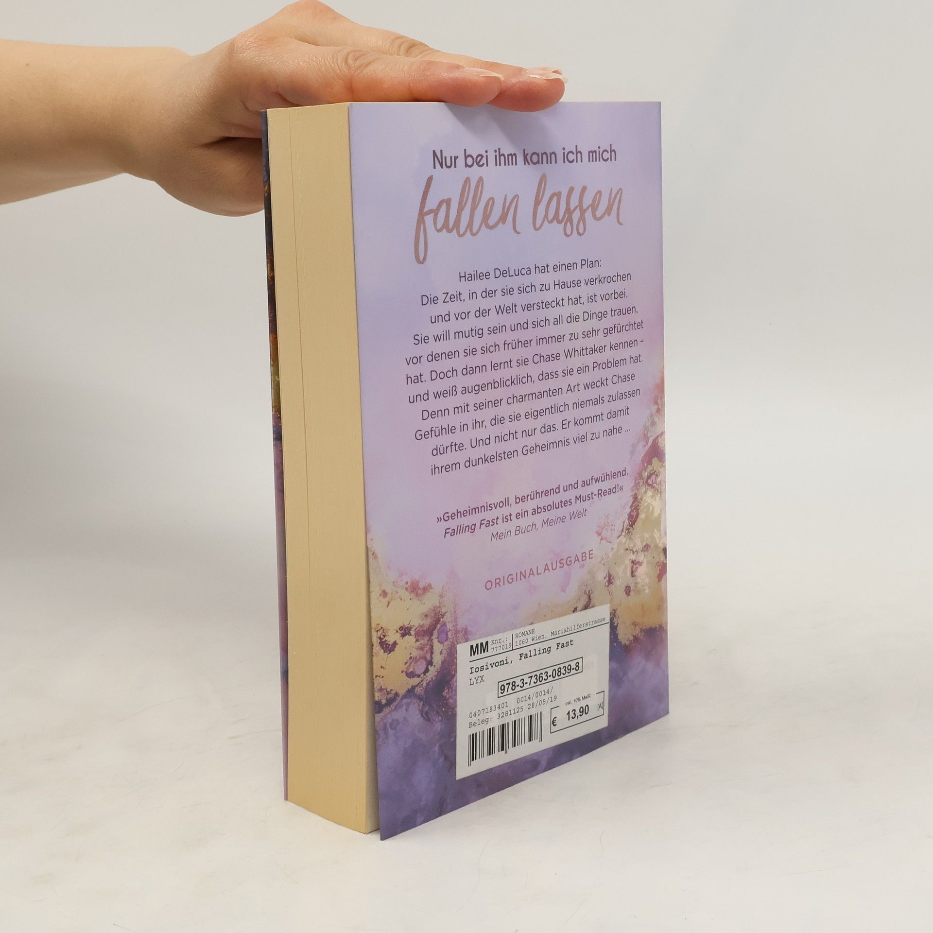 Nur bei ihm kann ich mich fallen lassen Hailee DeLuca hat einen Plan: Die Zeit, in der sie sich zu Hause verkrochen und vor der Welt versteckt hat, ist vorbei. Sie will mutig sein und sich all die Dinge trauen, vor denen sie sich früher immer zu sehr gefürchtet hat. Doch dann lernt sie Chase Whittaker kennen - und weiß augenblicklich, dass sie ein Problem hat. Denn mit seiner charmanten Art weckt Chase Gefühle in ihr, die sie eigentlich niemals zulassen dürfte. Und nicht nur das. Er kommt damit ihrem dunkelsten Geheimnis viel zu nahe ... "Geheimnisvoll, berührend und aufwühlend. 'Falling Fast' ist ein absolutes Must-Read!„ MEIN BUCH, MEINE WELT Die neue Reihe von Bianca Iosivoni: emotional, romantisch, herzzerreißend! “Flying High" (Band 2) erscheint am 29. Juli 2019.