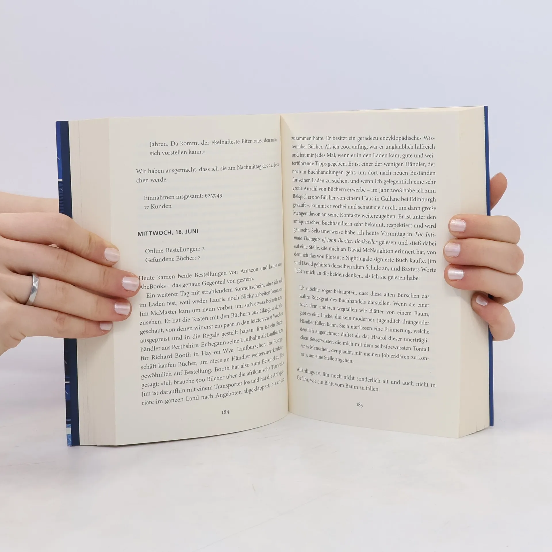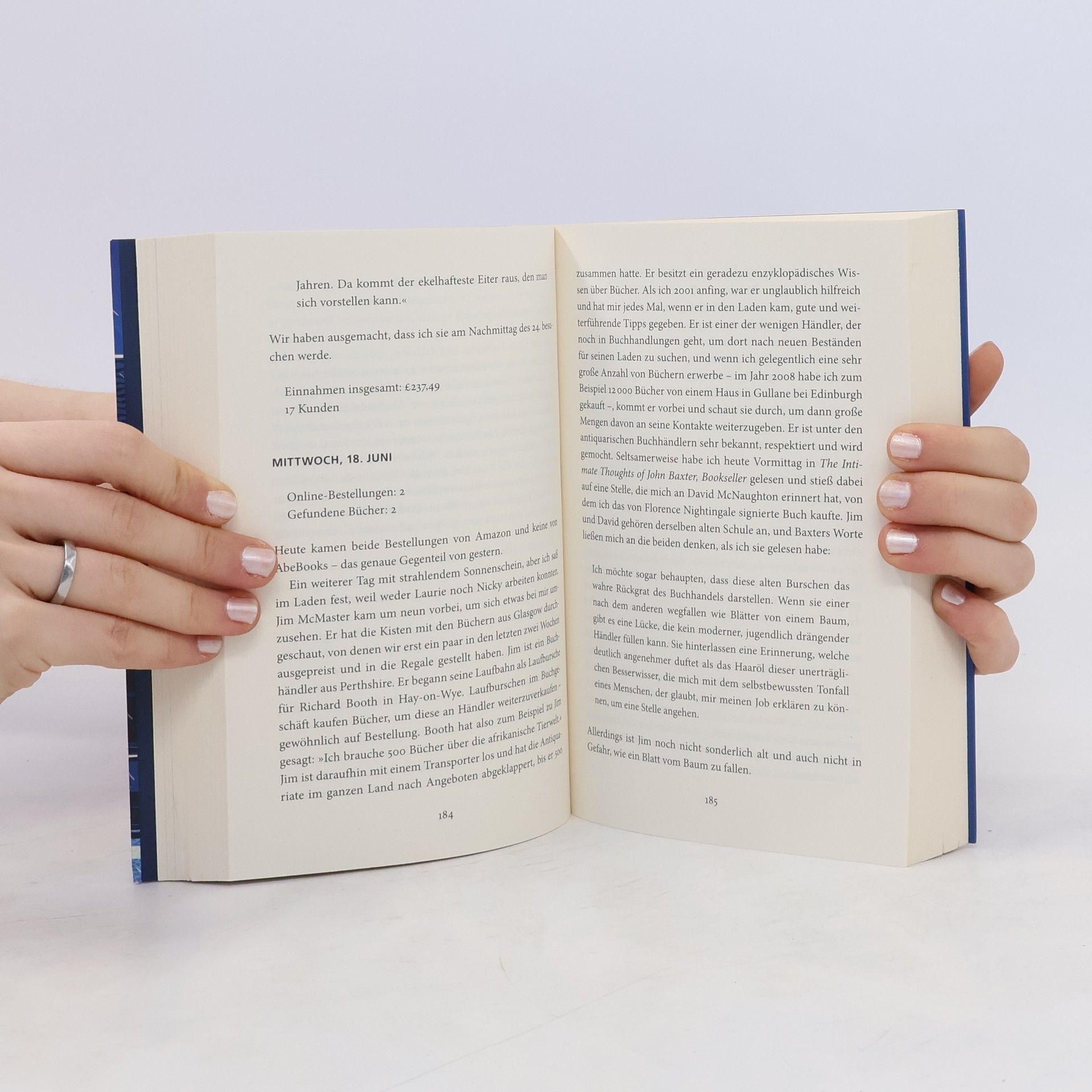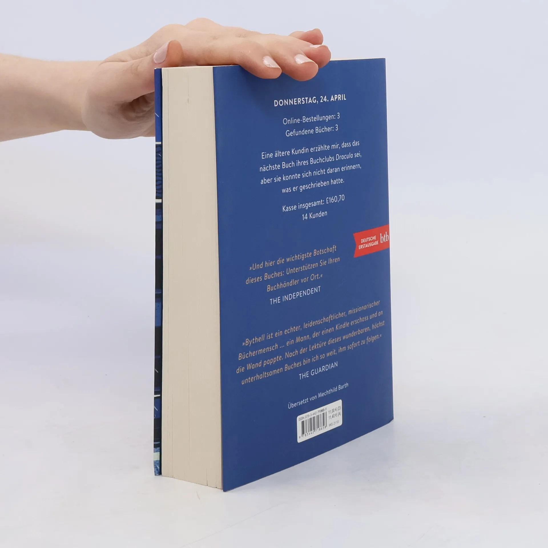 Wigtown, Schottland. The Book Shop, die größte Second-Hand-Buchhandlung des Landes, ist ein Paradies für Buchliebhaber. Die Bücherregale reichen bis zur Decke, die Regalböden hängen durch ob ihrer verführerischen Last. Es gibt alles, was das Herz begehrt. Was Sie als Kunde nicht sehen, sind die Probleme im Hintergrund, mit denen sich der Besitzer Shaun Bythell herumschlagen muss. In seinem »Tagebuch eines Buchhändlers« finden Sie alles: exzentrische Kunden, unhöfliche Angestellte und eine ständig leere Kasse, aber auch den Nervenkitzel eines unerwarteten antiquarischen Fundes und den Charme der Küstenkleinstadt Wigtown. Tauchen Sie ein in die Welt des Buchhandels und lassen Sie sich verzaubern! Donnerstag, 24. April Online-Bestellungen: 3 Gefundene Bücher: 3 Eine ältere Kundin erzählte mir, dass das nächste Buch ihres Buchclubs Dracula sei, aber sie konnte sich nicht daran erinnern, was er geschrieben hatte. Kasse insgesamt £160,70 14 Kunden