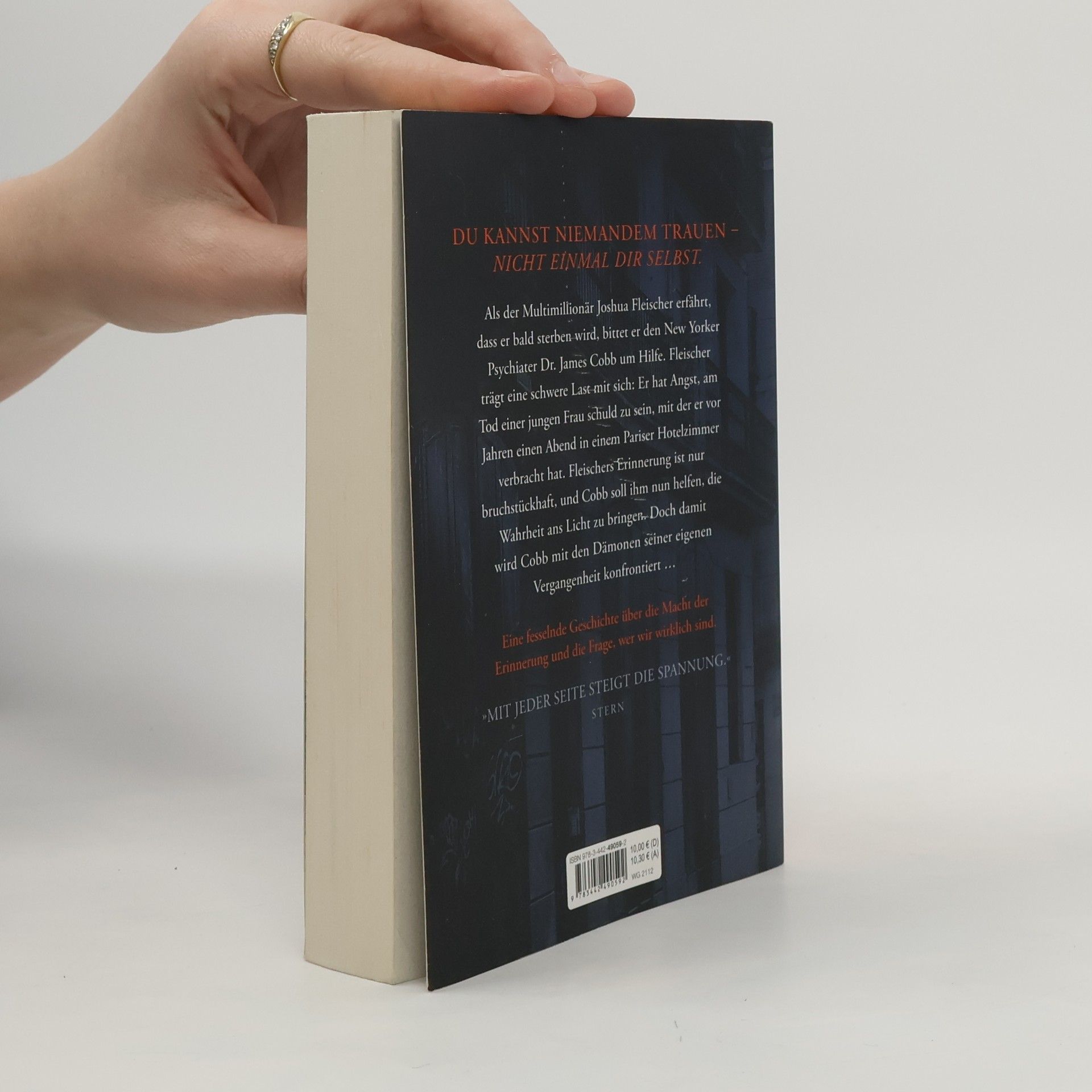 Als der Multimillionär Joshua Fleischer erfährt, dass er bald sterben wird, bittet er den New Yorker Psychiater Dr. James Cobb um Hilfe. Fleischer trägt eine schwere Last mit sich: Er befürchtet, am Tod einer jungen Frau schuld zu sein, mit der er vor Jahren einen Abend in einem Pariser Hotelzimmer verbracht hat. Fleischers Erinnerung ist nur bruchstückhaft, und Cobb soll ihm nun helfen, die Wahrheit ans Licht zu bringen. Doch damit wird Cobb mit den Dämonen seiner eigenen Vergangenheit konfrontiert …