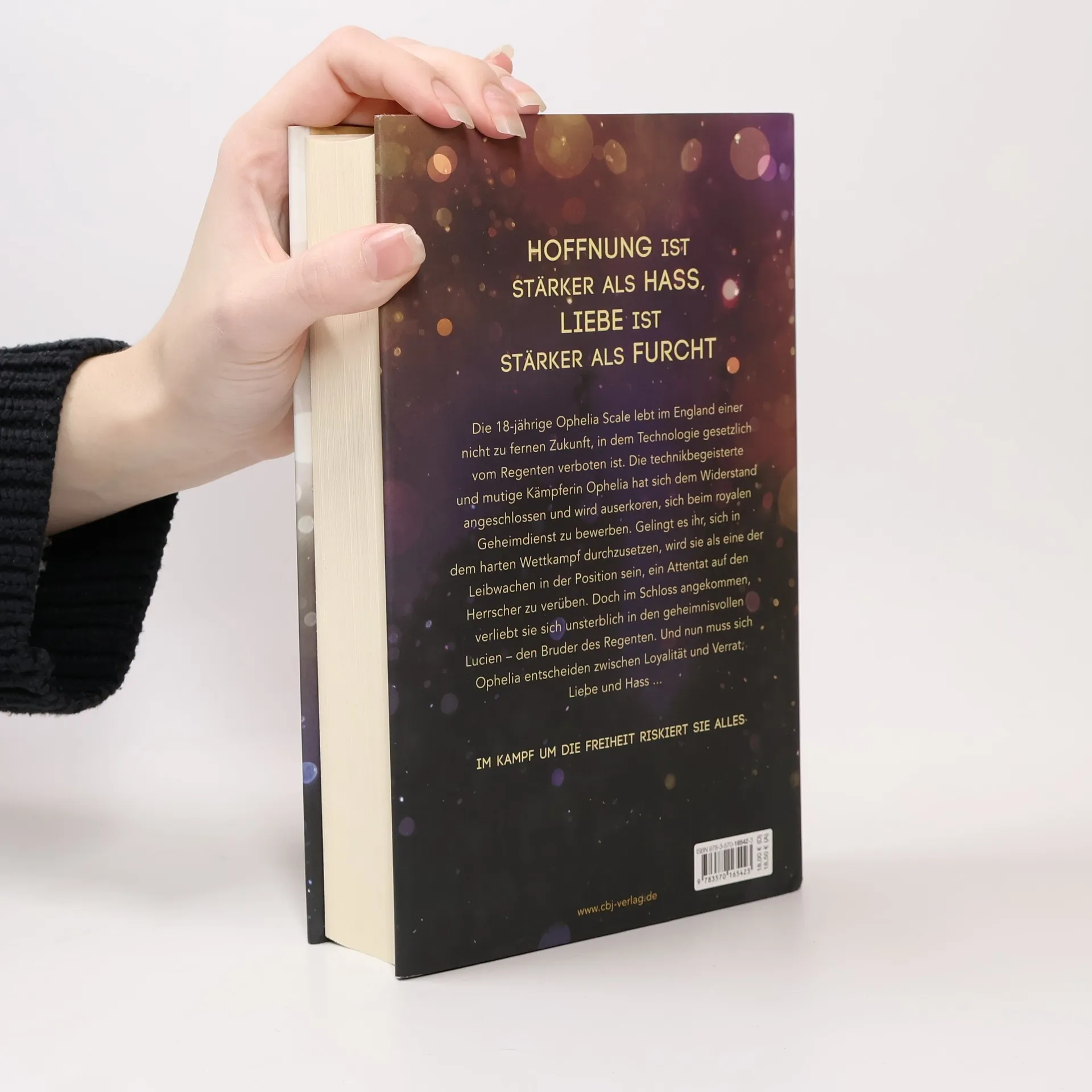 Hoffnung ist stärker als Hass, Liebe ist stärker als Furcht Die 18-jährige Ophelia Scale lebt im England einer nicht zu fernen Zukunft, in dem Technologie per Gesetz vom Regenten verboten ist. Die technikbegeisterte und mutige Kämpferin Ophelia hat sich dem Widerstand angeschlossen und wird auserkoren, sich beim royalen Geheimdienst zu bewerben. Gelingt es ihr, sich in dem harten Wettkampf durchzusetzen, wird sie als eine der Leibwachen in der Position sein, ein Attentat auf den Herrscher zu verüben. Doch im Schloss angekommen, verliebt sie sich unsterblich in den geheimnisvollen Lucien – den Bruder des Regenten. Und nun muss Ophelia sich entscheiden zwischen Loyalität und Verrat, Liebe und Hass ... Alle Bände der Ophelia Scale-Trilogie: Ophelia Scale – Die Welt wird brennenOphelia Scale – Der Himmel wird bebenOphelia Scale – Die Sterne werden fallenOphelia Scale – Wie alles begann (Shortstory, nur als E-Book verfügbar)
