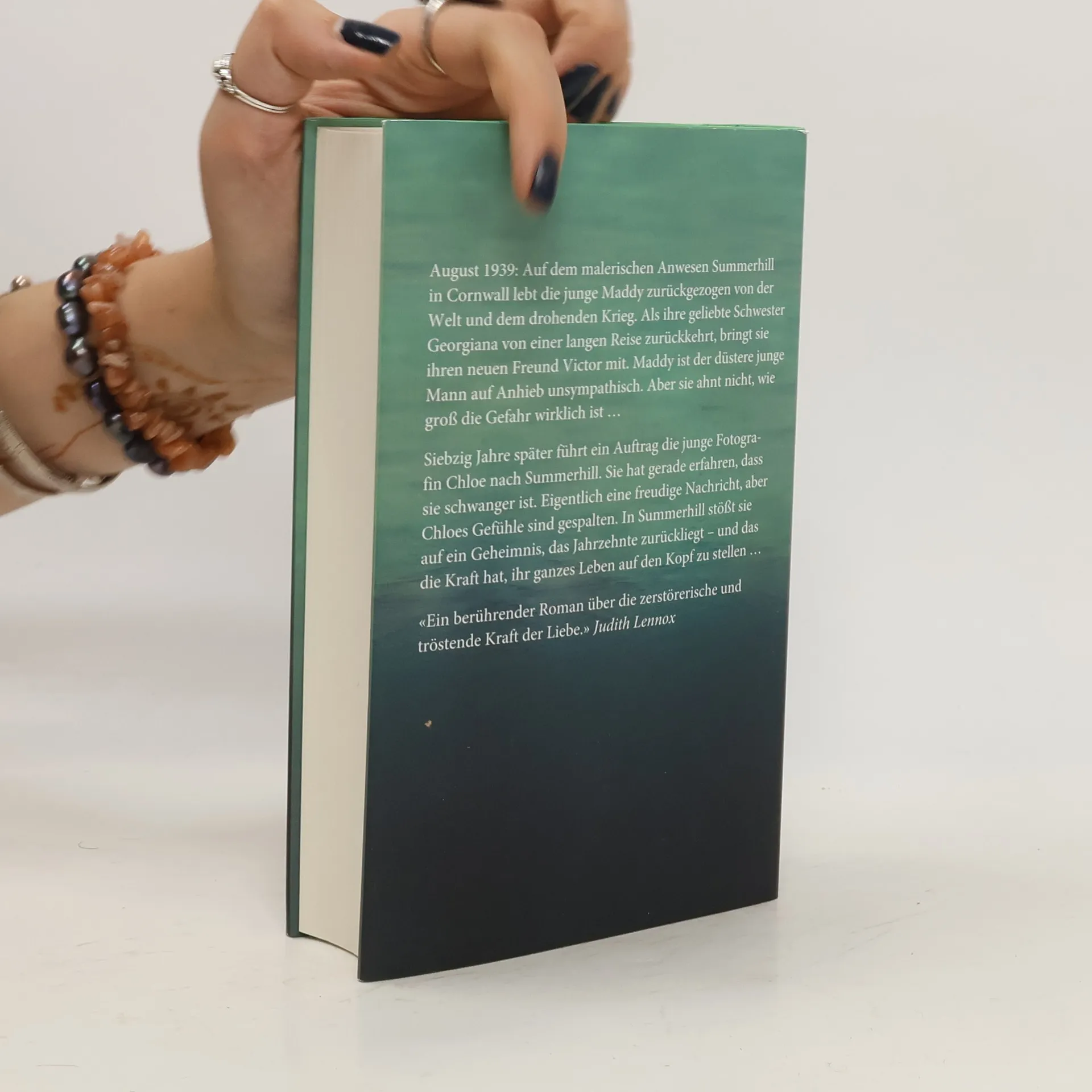 Zwei Frauen, geboren in unterschiedlichen Jahrzehnten, durch ein Schicksal verbunden. August 1939: Auf dem malerischen Anwesen Summerhill in Cornwall lebt die junge Maddy zurückgezogen von der Welt und dem drohenden Krieg. Als ihre geliebte Schwester Georgiana von einer langen Reise zurückkehrt, bringt sie ihren neuen Freund Victor mit. Maddy ist der düstere junge Mann auf Anhieb unsympathisch. Aber sie ahnt nicht, wie groß die Gefahr wirklich ist... Siebzig Jahre später führt ein Auftrag die junge Fotografin Chloe nach Summerhill. Sie hat gerade erfahren, dass sie schwanger ist. Eigentlich eine freudige Nachricht, aber Chloes Gefühle sind gespalten. In Summerhill stößt sie auf ein Geheimnis, das Jahrzehnte zurückliegt -- und das die Kraft hat, ihr ganzes Leben auf den Kopf zu stellen...