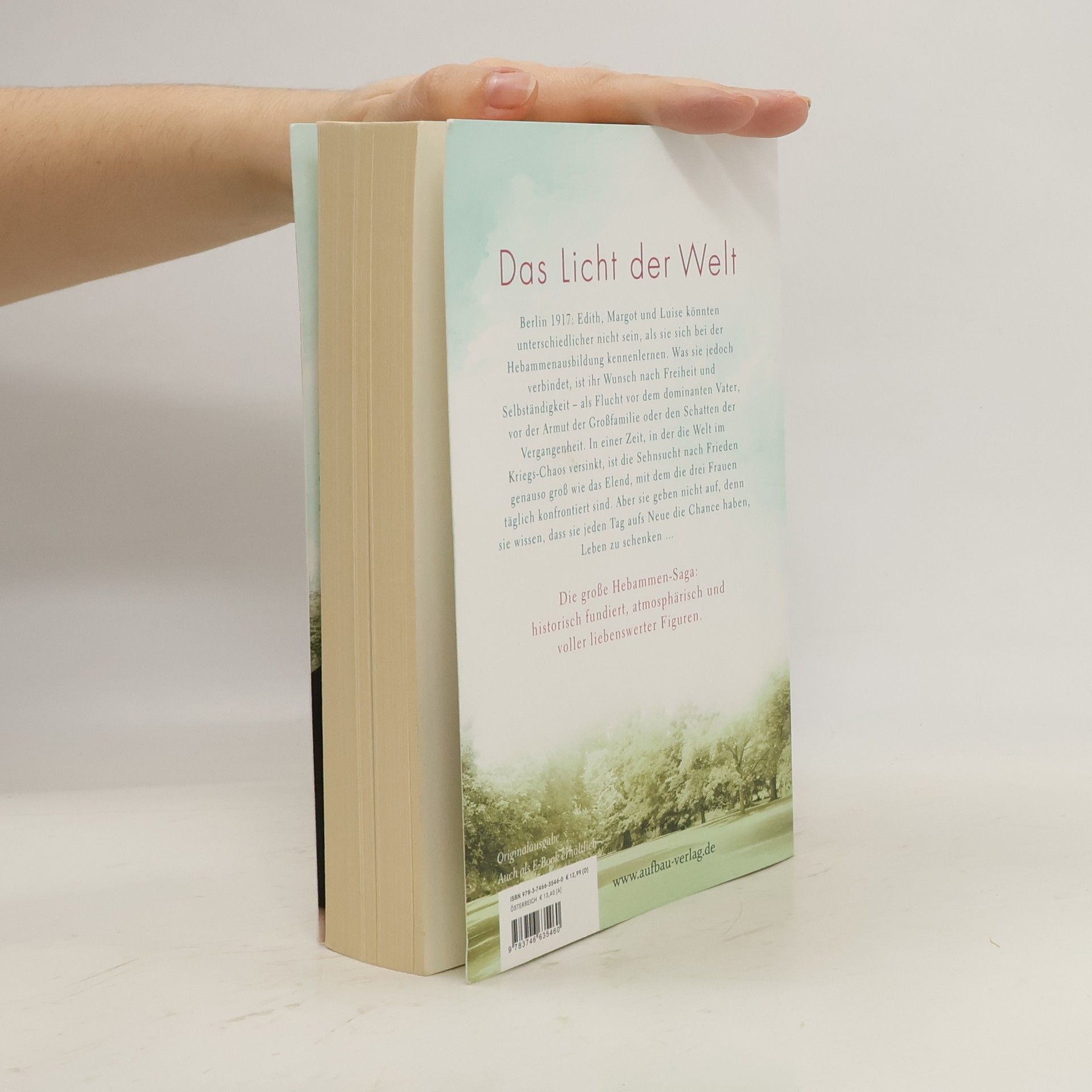 Das Licht der Welt. Berlin 1917: Edith, Margot und Luise könnten unterschiedlicher nicht sein, als sie sich bei der Hebammenausbildung kennenlernen. Was sie jedoch verbindet, ist ihr Wunsch nach Freiheit und Selbständigkeit – als Flucht vor dem dominanten Vater, vor der Armut der Großfamilie oder den Schatten der Vergangenheit. In einer Zeit, in der die Welt im Kriegs-Chaos versinkt, ist die Sehnsucht nach Frieden genauso groß wie das Elend, mit dem die drei Frauen täglich konfrontiert sind. Aber sie geben nicht auf, denn sie wissen, dass sie jeden Tag aufs Neue die Chance haben, Leben zu schenken … Die große Hebammen-Saga: historisch fundiert, atmosphärisch und voller liebenswerter Figuren.