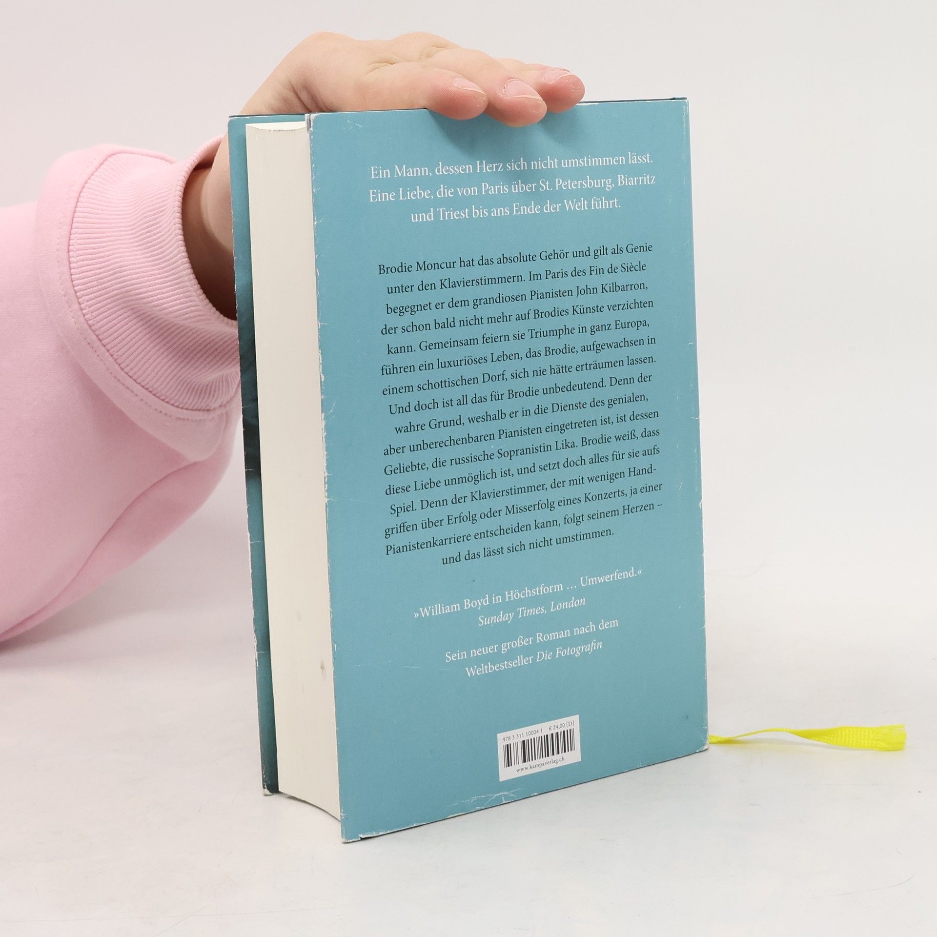 Brodie Moncur hat das absolute Gehör und gilt als Genie unter den Klavierstimmern. Als er in Paris dem grandiosen Pianisten John Kilbarron begegnet, nimmt sein Leben eine dramatische Wendung. Rasch zeigt sich, dass Brodies Künste unverzichtbar für Kilbarron sind. Gemeinsam feiern sie Triumphe in ganz Europa, führen in St. Petersburg ein luxuriöses Leben, das Brodie, aufgewachsen in einem schottischen Dorf als Sohn eines tyrannischen Pfarrers, sich nie hätte erträumen lassen. Und doch ist das alles für Brodie unwichtig. Denn der wahre Grund, weshalb er in die Dienste des genialen, aber unberechenbaren Pianisten eingetreten ist, ist dessen Geliebte, die russische Sopranistin Lika. Brodie weiß, dass diese Liebe unmöglich ist, und setzt doch alles für sie aufs Spiel – auch sein eigenes Leben. Denn der Klavierstimmer, der mit wenigen Handgriffen über Erfolg oder Misserfolg eines Konzerts, ja einer Pianistenkarriere entscheiden kann, folgt seinem Herzen, das sich nicht umstimmen lässt.