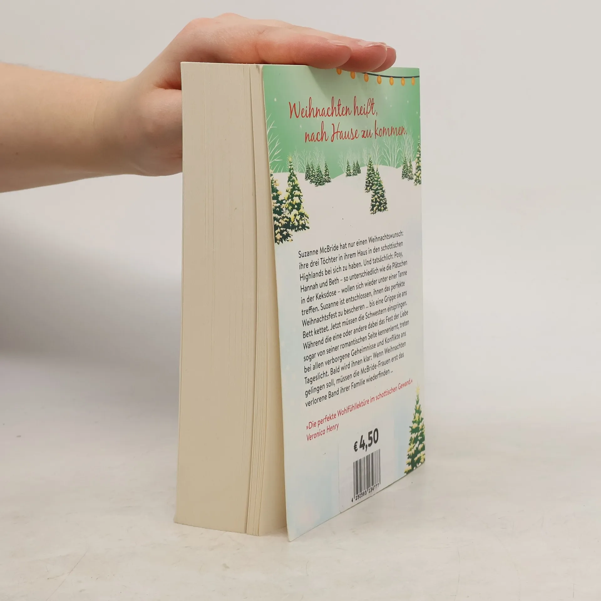 Weihnachten heißt, nach Hause zu kommen … Suzanne McBride hat nur einen Weihnachtswunsch: ihre drei Töchter in ihrem Haus in den schottischen Highlands bei sich zu haben. Und tatsächlich: Posy, Hannah und Beth – so unterschiedlich wie die Plätzchen in der Keksdose – wollen sich wieder unter einer Tanne treffen. Suzanne ist entschlossen, ihnen das perfekte Weihnachtsfest zu bescheren … bis eine Grippe sie ans Bett kettet. Jetzt müssen die Schwestern einspringen. Während die eine oder andere dabei das Fest der Liebe sogar von seiner romantischen Seite kennenlernt, treten bei allen verborgene Geheimnisse und Konflikte ans Tageslicht. Bald wird ihnen klar: Wenn Weihnachten gelingen soll, müssen die McBride-Frauen erst das verlorene Band ihrer Familie wiederfinden … »Die perfekte Wohlfühllektüre im schottischen Gewand.« Veronica Henry »Das perfekte Geschenk für Fans von warmherzigen Geschichten über Schwestern und Liebe.« Booklist »Die Geschichte ist gut geschrieben und so mitreißend, dass man sich mit dem Buch […] und ein paar gebackenen Plätzchen einen gemütlichen Nachmittag machen kann.« Delmenhorster Kreisblatt, 26.11.2020