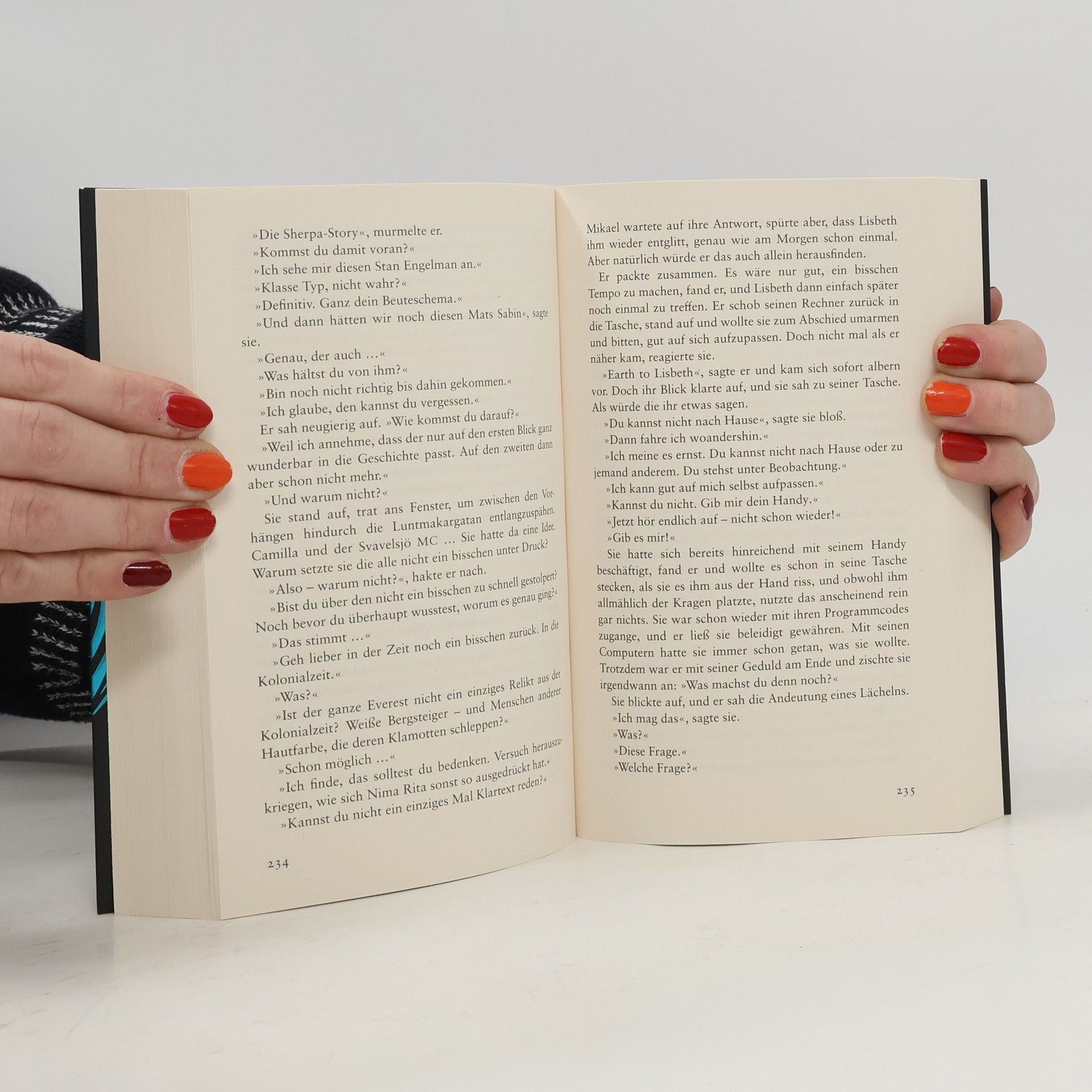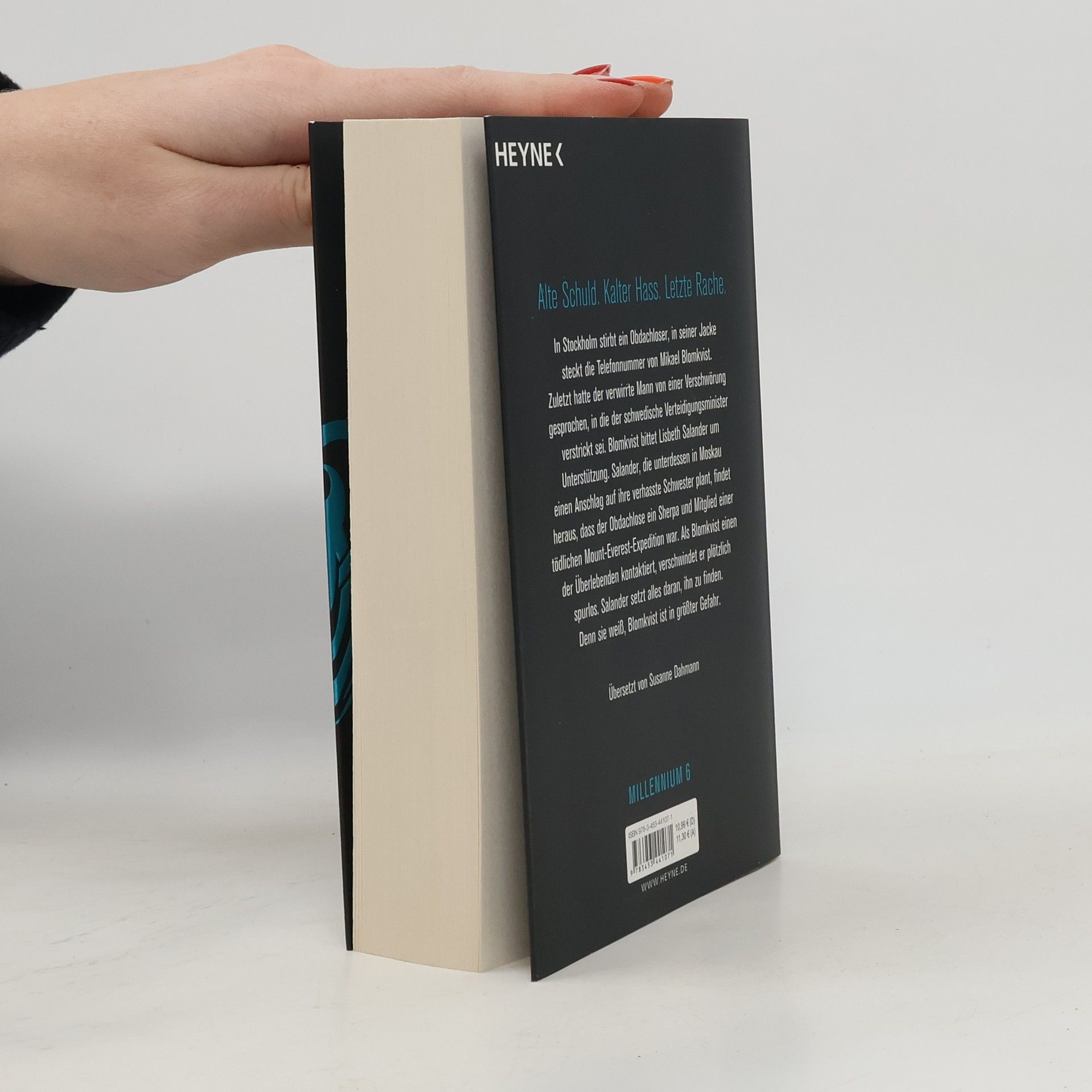 Ich werde die Jägerin sein und nicht die Gejagte Ein Obdachloser wird tot auf dem Stockholmer Mariatorget gefunden. In seiner Jackentasche findet sich die Telefonnummer von Mikael Blomkvist. Als eine DNA-Analyse ergibt, dass der Obdachlose ein sogenanntes Super-Gen besaß, das nur in einer bestimmten Ethnie in Nepal vorkommt, wird Blomkvist hellhörig und nimmt die Recherche auf. Lisbeth Salander hält sich unterdessen in Moskau auf, wo sie einen Anschlag auf ihre verhasste Schwester Camilla plant. Blomkvist bittet Salander um Unterstützung, und sie findet heraus, dass der Obdachlose ein Sherpa war, der an einer dramatischen Mount-Everest-Expedition mit tödlichem Ausgang teilgenommen hatte. Blomkvist kontaktiert einen der Überlebenden der Expedition und verschwindet plötzlich spurlos. Salander macht sich sofort auf die Suche nach ihm. Sie spürt, dass Blomkvist in großer Gefahr schwebt.