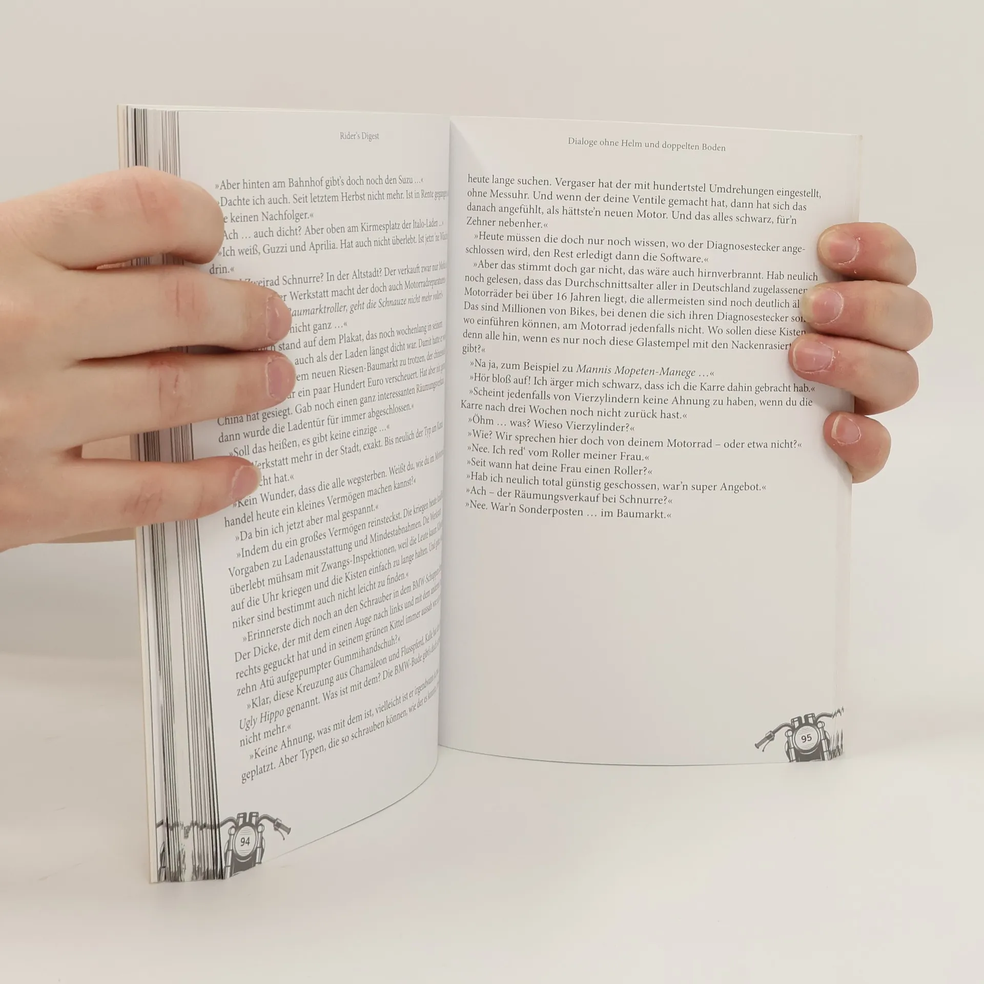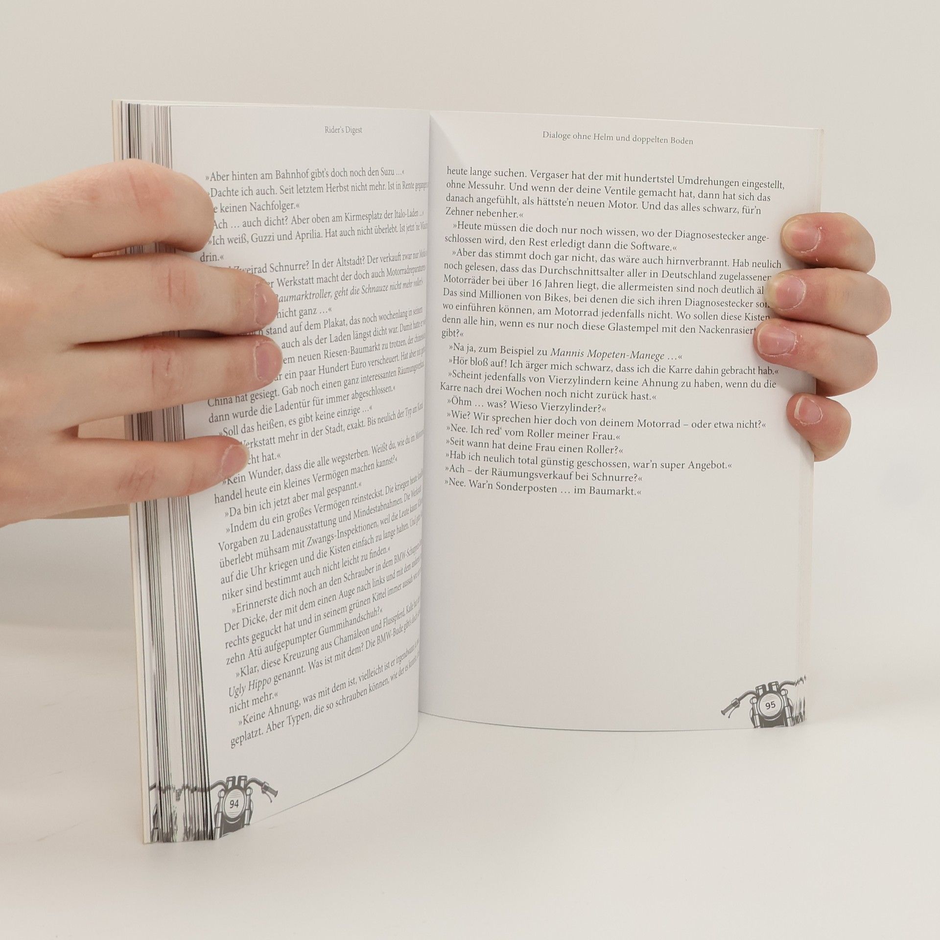 Köstlich, schräg und urkomisch: Dieses Buch ist die perfekte Geschenkidee für alle Motorradfans! Welche Folgen kann eine intuitiv-präventive Pinkelpause haben? Was haben eine Palette Heringe in Bremerhaven und eine Jauchegrube bei Passau gemein? Seit Jahren begeistert Uli Böckmann seine Leser im Magazin „Motorradfahrer“ in seiner Kolumne „Im roten Bereich“ mit absurden und witzigen Dialogen von Motorradfahrern. Dabei trifft er auf herrliche Gedanken und Beobachtungen über die tiefen Fragen des Seins, die Leidenschaften und Emotionen von Zweirad-Liebhabern. Die schönsten dieser Dialoge hat Uli Böckmann in seiner Textküche geputzt, filetiert, fein gewürzt, gekonnt gegart und köstlich angerichtet. Schöner ist über das Motorradfahren, das Leben und alles andere nie geplaudert worden. Diese Perlen seiner Kultkolumne erscheinen hier erstmals als Buch - ein wunderbares Geschenk für alle Motorradmenschen.