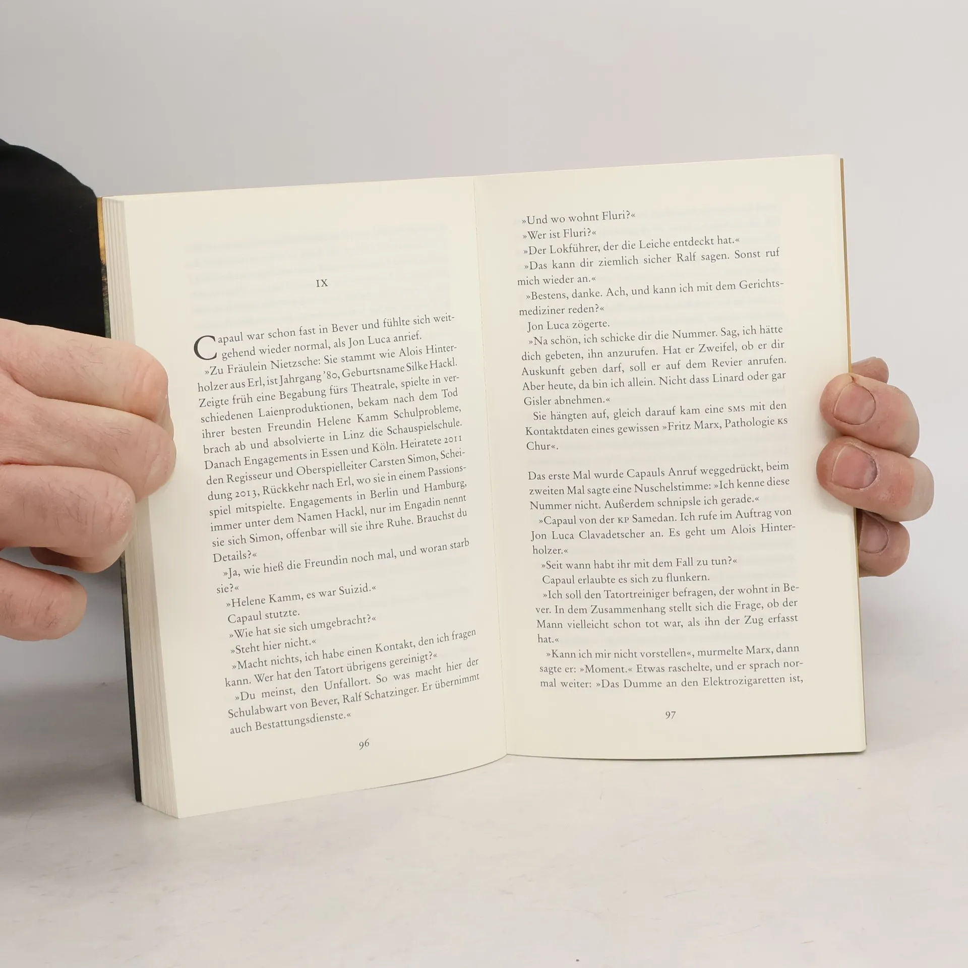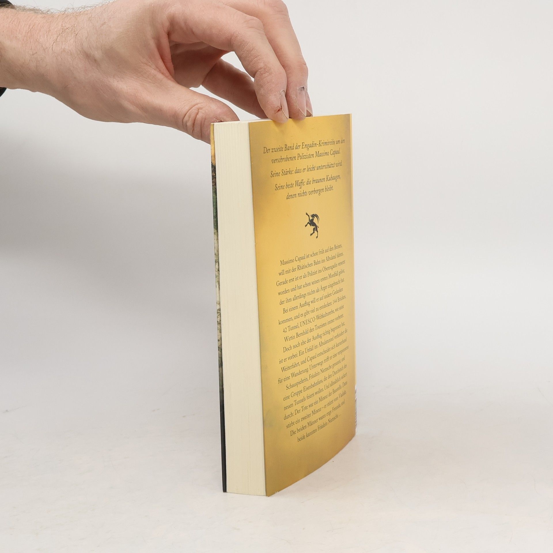 Die ersten Sonnenstrahlen tauchen die Gipfel in aprikosenfarbenes Licht. Massimo Capaul ist schon früh auf den Beinen, er will mit der Rhätischen Bahn ins Albulatal fahren. Gerade erst ist er als Polizeigefreiter ins Oberengagin versetzt worden und hat schon seinen ersten Mordfall gelöst, der ihm allerdings nichts als Ärger eingebracht hat. Bei einem Ausflug will er auf andere Gedanken kommen, es gibt viel zu entdecken: 144 Brücken, 42 Tunnel, UNESCO-Weltkulturerbe, wie seine Wirtin Bernhild den Touristen immer vorbetet. Noch ehe der Ausflug richtig begonnen hat, ist er vorbei: Personenunfall im Tunnel. Aus der Bahnfahrt wird eine Wanderung. Capaul trifft eine versponnene Schauspielerin, Fräulein Nietzsche genannt, und eine Gruppe Eisenbahnfans, die den Durchstich des Tunnelneubaus feiern wollen. Und allmählich sickert durch: Der Tote im Tunnel war ein Mineur der Baustelle. Dann stirbt ein zweiter Mineur – er stürzt vom Viadukt. Die beiden Männer waren enge Freude, und beide kannten Fräulein Nietzsche ...