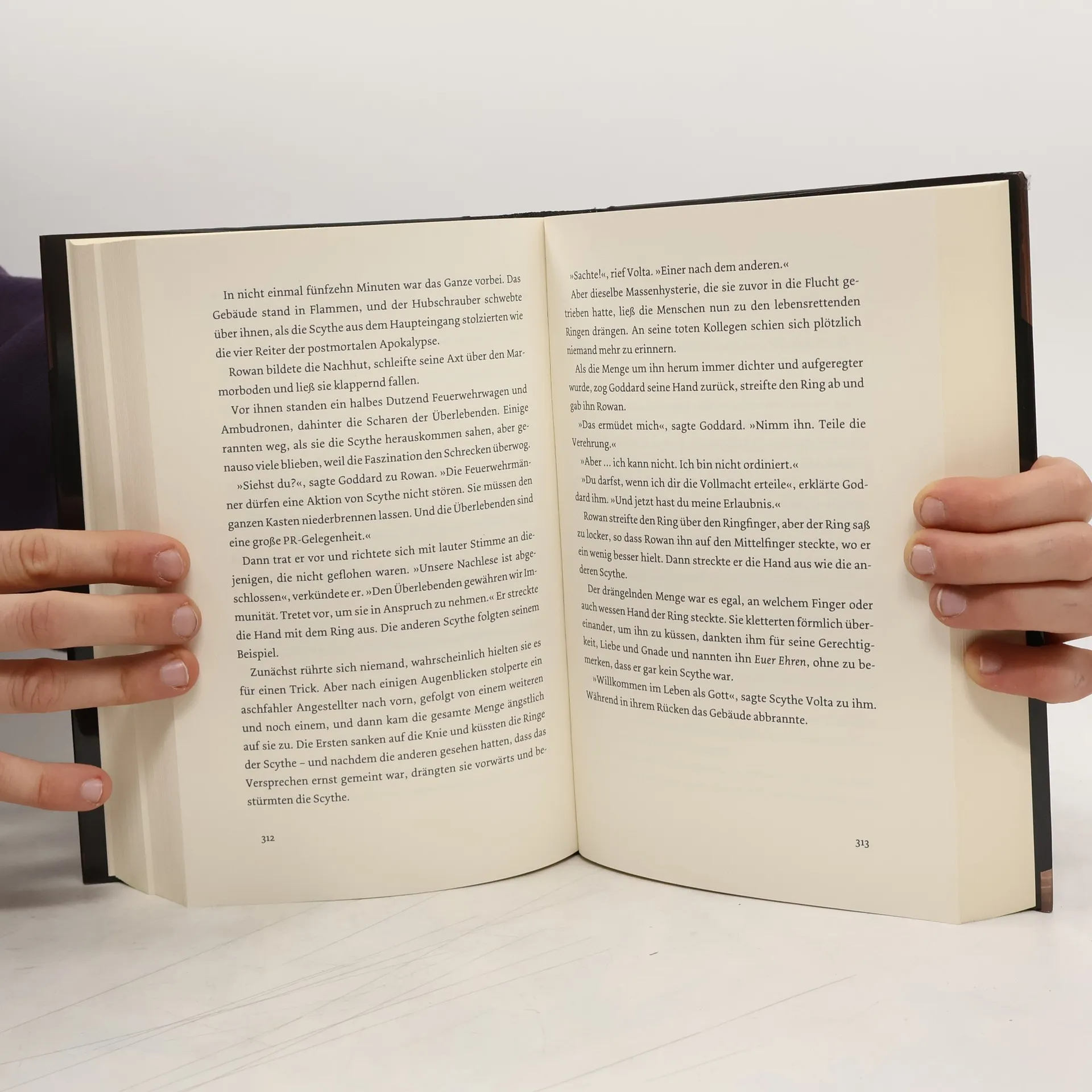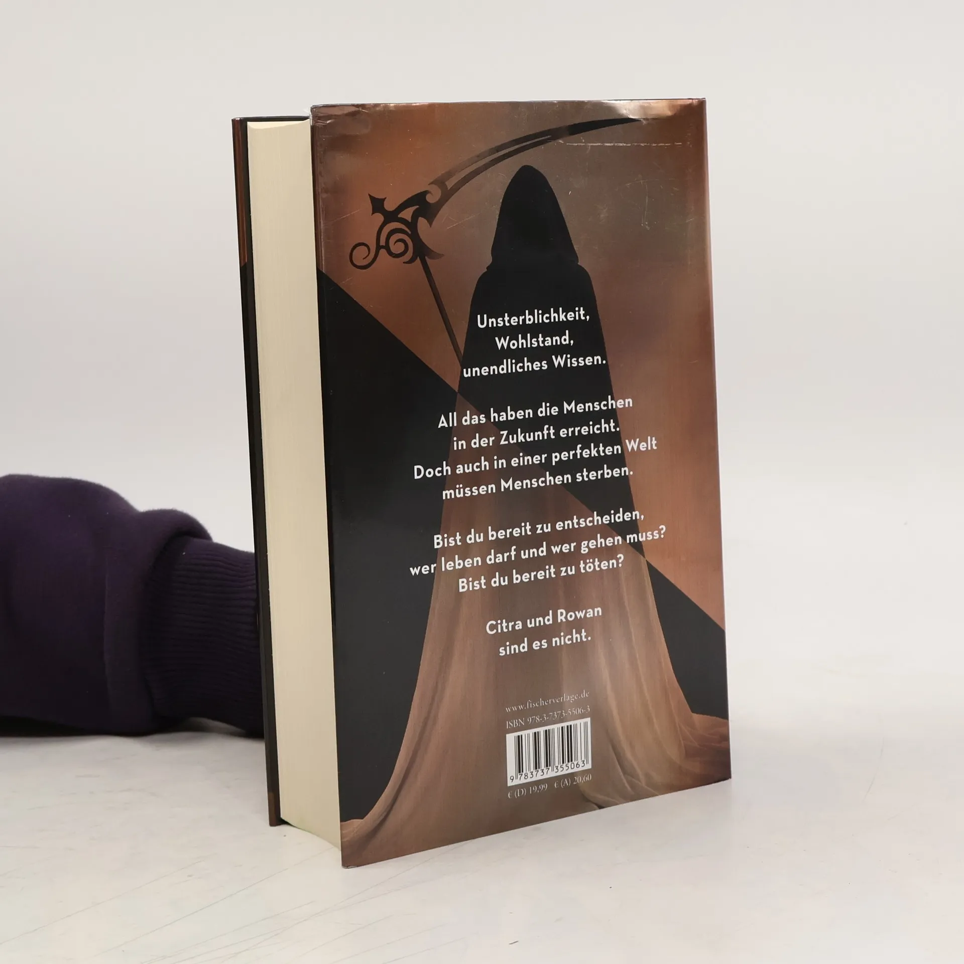 Unsterblichkeit, Wohlstand, unendliches Wissen. Die Menschheit hat die perfekte Welt erschaffen – aber diese Welt hat einen Preis. Citra und Rowan leben in einer Welt, in der Armut, Kriege, Krankheit und Tod besiegt sind. Aber auch in dieser perfekten Welt müssen Menschen sterben, und die Entscheidung über Leben und Tod treffen die Scythe. Sie sind auserwählt, um zu töten. Sie entscheiden, wer lebt und wer stirbt. Sie sind die Hüter des Todes. Aber die Welt muss wissen, dass dieser Dienst sie nicht kalt lässt, dass sie Mitleid empfinden. Reue. Unerträglich großes Leid. Denn wenn sie diese Gefühle nicht hätten, wären sie Monster. Als Citra und Rowan gegen ihren Willen für die Ausbildung zum Scythe berufen werden und die Kunst des Tötens erlernen, wächst zwischen den beiden eine tiefe Verbindung. Doch am Ende wird nur einer von ihnen auserwählt. Und dessen erste Aufgabe wird es sein, den jeweils anderen hinzurichten …