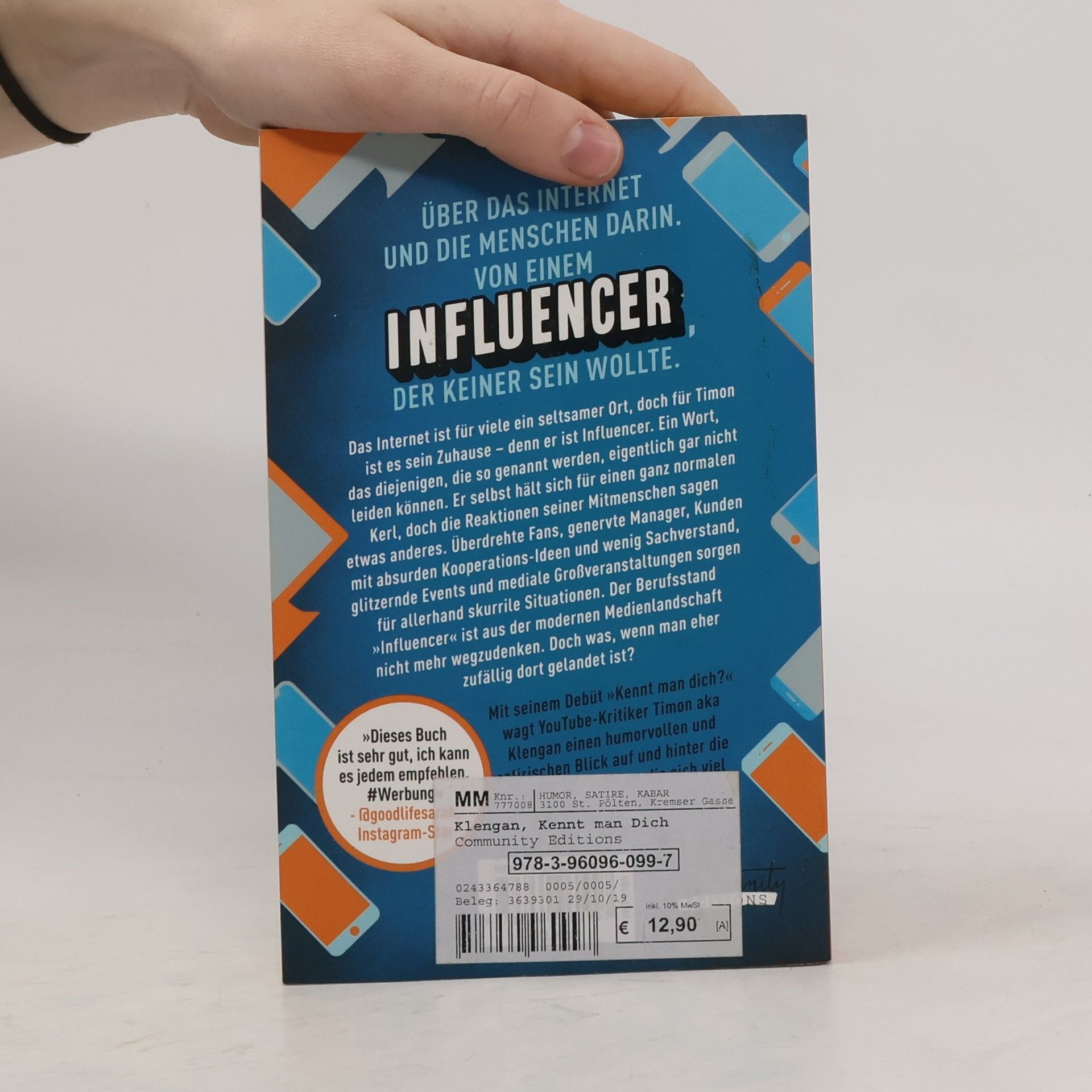 Über das Internet und die Menschen darin. Von einem Influencer, der keiner sein wollte. Das Internet ist für viele ein seltsamer Ort, doch für Timon ist es sein Zuhause - denn er ist Influencer. Ein Wort, das diejenigen, die so genannt werden, eigentlich gar nicht leiden können. Er selbst hält sich für einen ganz normalen Kerl, doch die Reaktionen seiner Mitmenschen sagen etwas anderes. Überdrehte Fans, genervte Manager, Kunden mit absurden Kooperations-Ideen und wenig Sachverstand, glitzernde Events und mediale Großveranstaltungen sorgen für allerhand skurrile Situationen. Der Berufsstand »Influencer« ist aus der modernen Medienlandschaft nicht mehr wegzudenken. Doch was, wenn man eher zufällig dort gelandet ist? Mit seinem Debüt »Kennt man dich?« wagt YouTube-Kritiker Timon aka Klengan einen humorvollen und satirischen Blick auf und hinter die Kulissen einer Szene, die sich viel zu oft viel zu ernst nimmt. »Dieses Buch ist sehr gut, ich kann es jedem empfehlen. #Werbung« - @goodlifesarah, Instagram-Star