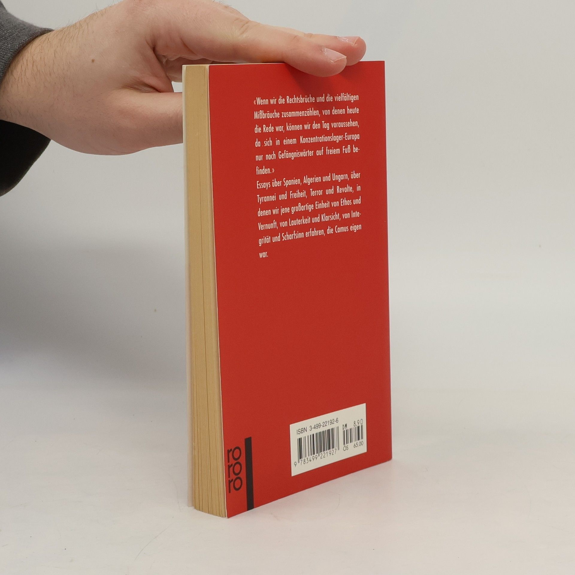 „Wenn wir die Rechtsbrüche und die vielfältigen Mißbräuche zusammenzählen, von denen heute die Rede war, können wir den Tag voraussehen, da sich in einem Konzentrationslager-Europa nur noch Gefängniswärter auf freiem Fuß befinden.“ Essays über Spanien, Algerien und Ungarn, über Tyrannei und Freiheit, Terror und Revolte, in denen wir jene großartige Einheit von Ethos und Vernunft, von Lauterkeit und Klarsicht, von Integrität und Scharfsinn erfahren, die Camus eigen war.