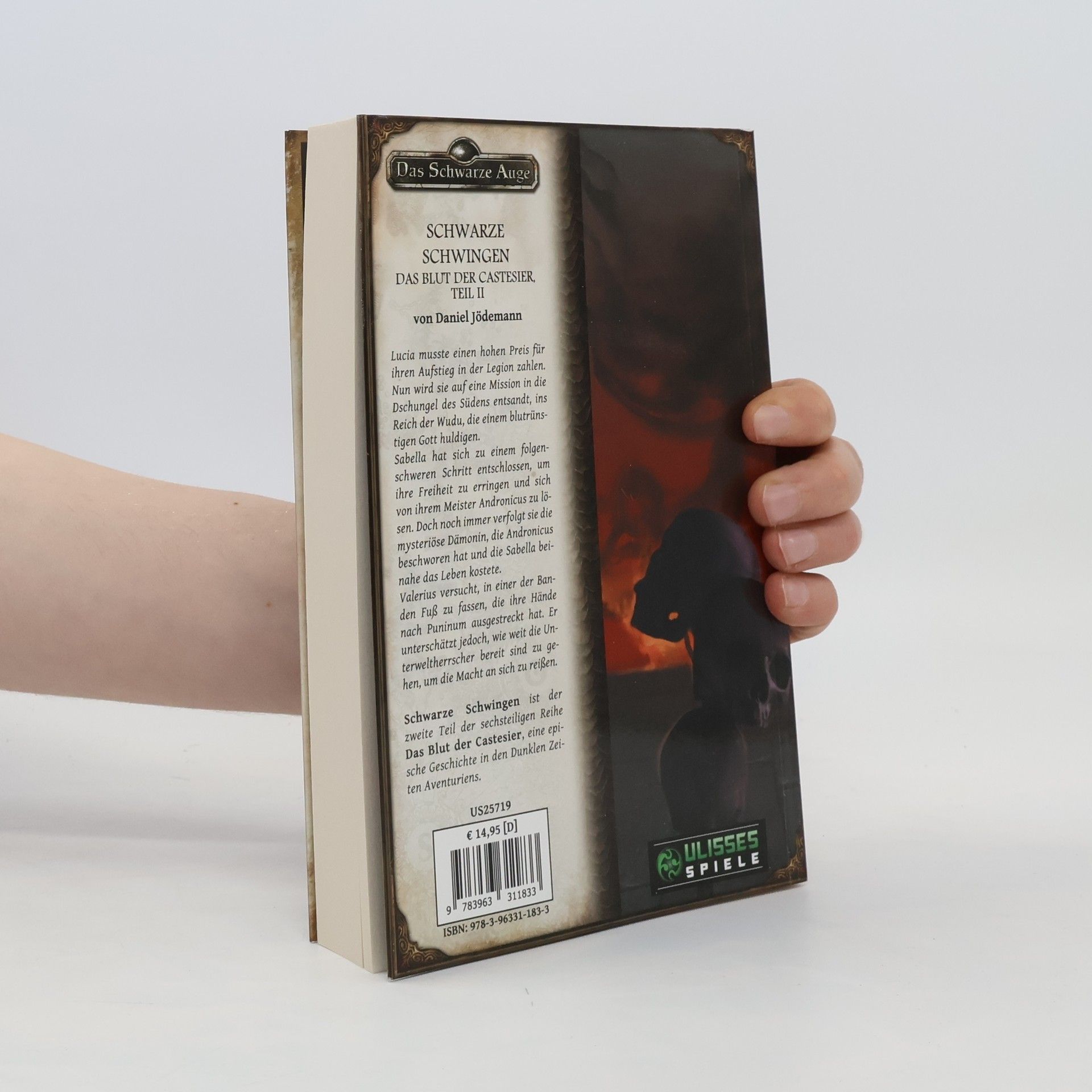 Lucia musste einen hohen Preis für ihren Aufstieg in der Legion zahlen. Nun wird sie auf eine Mission in die Dschungel des Südens entsandt, ins Reich der Wudu, die einem blutrünstigen Gott huldigen. Sabella hat sich zu einem folgenschweren Schritt entschlossen, um ihre Freiheit zu erringen und sich von ihrem Meister Andronicus zu lösen. Doch noch immer verfolgt sie die mysteriöse Dämonin, die Andronicus beschworen hat und die Sabella beinahe das Leben kostete. Valerius versucht, in einer der Banden Fuß zu fassen, die ihre Hände nach Puninum ausgestreckt hat. Er unterschätzt jedoch, wie weit die Unterweltherrscher bereit sind zu gehen, um die Macht an sich zu reißen. Schwarze Schwingen ist der zweite Teil der sechsteiligen Reihe Das Blut der Castesier, eine epische Geschichte in den Dunklen Zeiten Aventuriens.