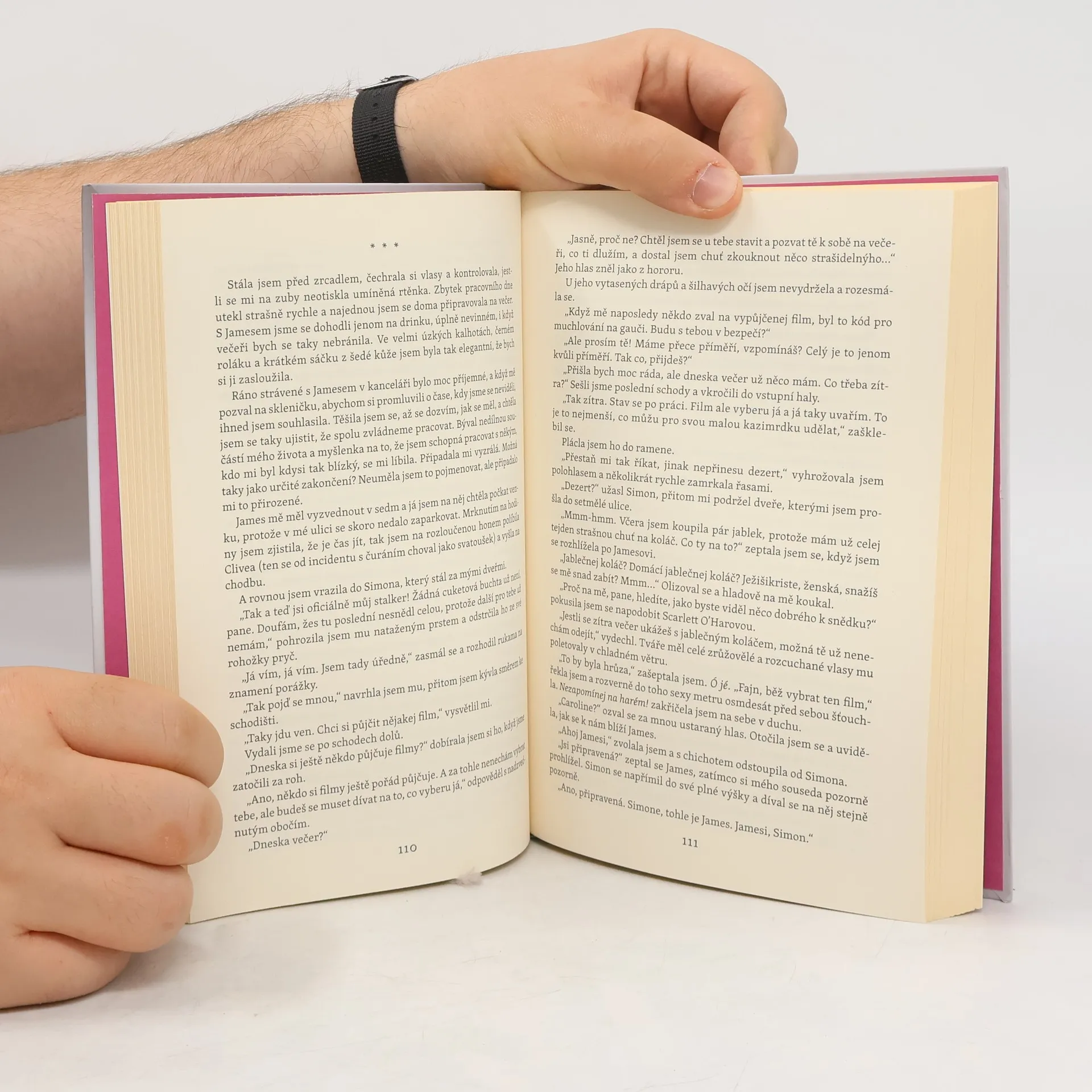 Caroline má fantastický byt v San Francisku a dokonalého kuchyňského robota, ale nemá Óčko! Caroline má skvěle našlápnutou kariéru, kancelář s výhledem na záliv a recept na výtečnou cuketovou buchtu, ale nemá Óčko!! Caroline má nejlepšího kocoura na světě, super kámošky a plný dekolt, ale nemá Óčko!!! A navíc, světe div se, stěnou její ložnice otřásá noc co noc její sexy soused, co si v posteli servítky rozhodně nebere. No, není to zákon schválnosti? Každé zasténání, naplácání a – bože, zamňoukání? – Caroline připomíná, že přichází nejen o spánek, ale že jí, na rozdíl od Nabíječových partnerek, chybí taky… Jo, uhádli jste, Óčko! Když bušení do zdi málem vyklepe Caroline z postele, rupnou jí nervy a oděná do sexuální frustrace a růžové noční košilky se svému sousedovi postaví tváří v tvář. Jenže jejich noční potyčka je, řekněme, jen začátek, protože s tenkými stěnami napětí mezi nimi roste…