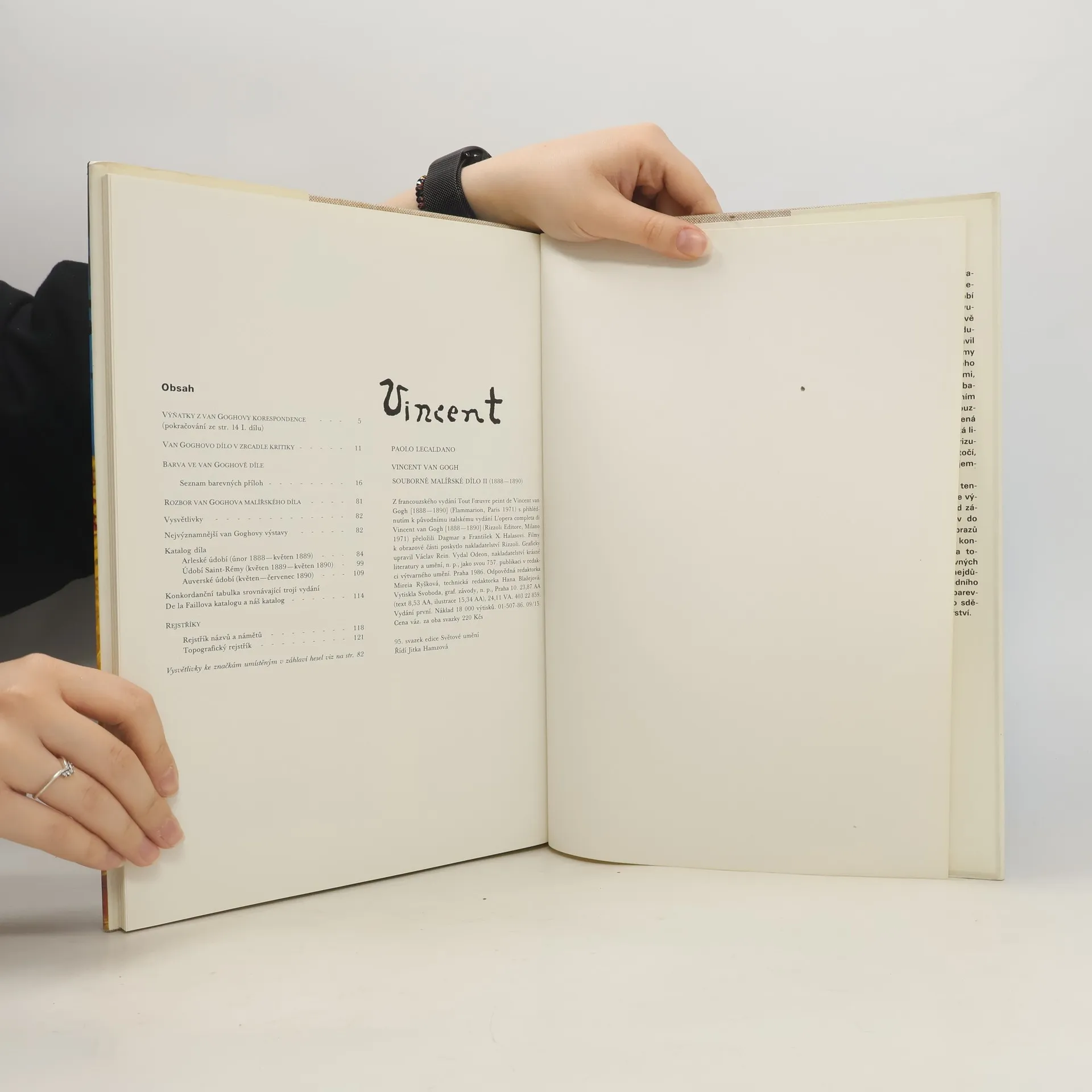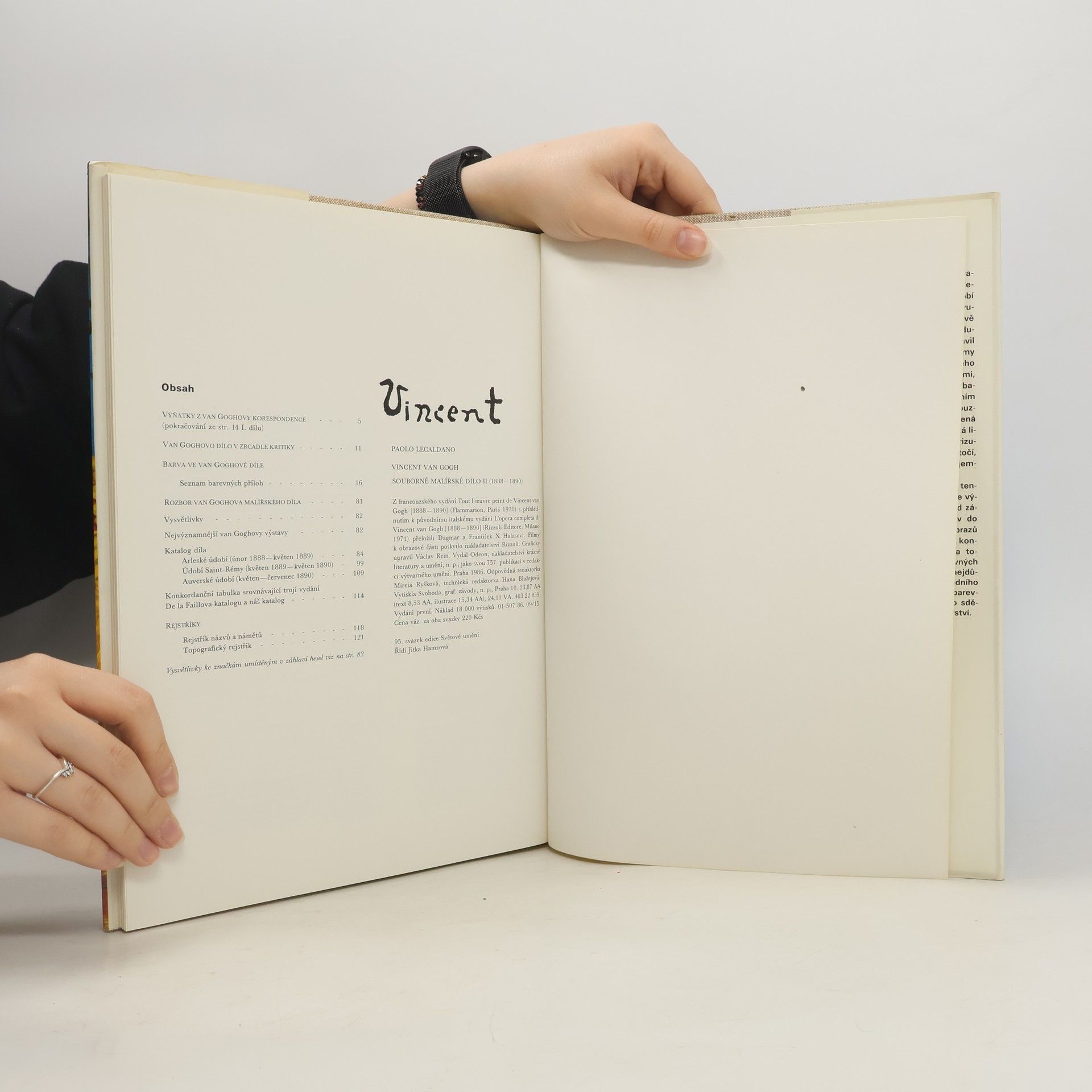 Souborné malířské dílo II (1888–1890). Obsahuje výňatky z van Goghovy korespondence, seznam barevných příloh, nejvýznamnější van Goghovy výstavy, katalog díla, konkordanční tabulku, rejstřík názvů a námětů, topografický rejstřík. Z francouzského vydání Tout l'œuvre peint de Vincent van Gogh [1888–1890] (Flammarion, Paris 1971) s přihlédnutím k původnímu italskému vydání L'opera completa di Vincent van Gogh [1888–1890] (Rizzoli Editore, Milano 1971) přeložili Dagmar a František X. Halasovi. Filmy k obrazové části poskytlo nakladatelství Rizzoli. Graficky upravil Václav Rein.