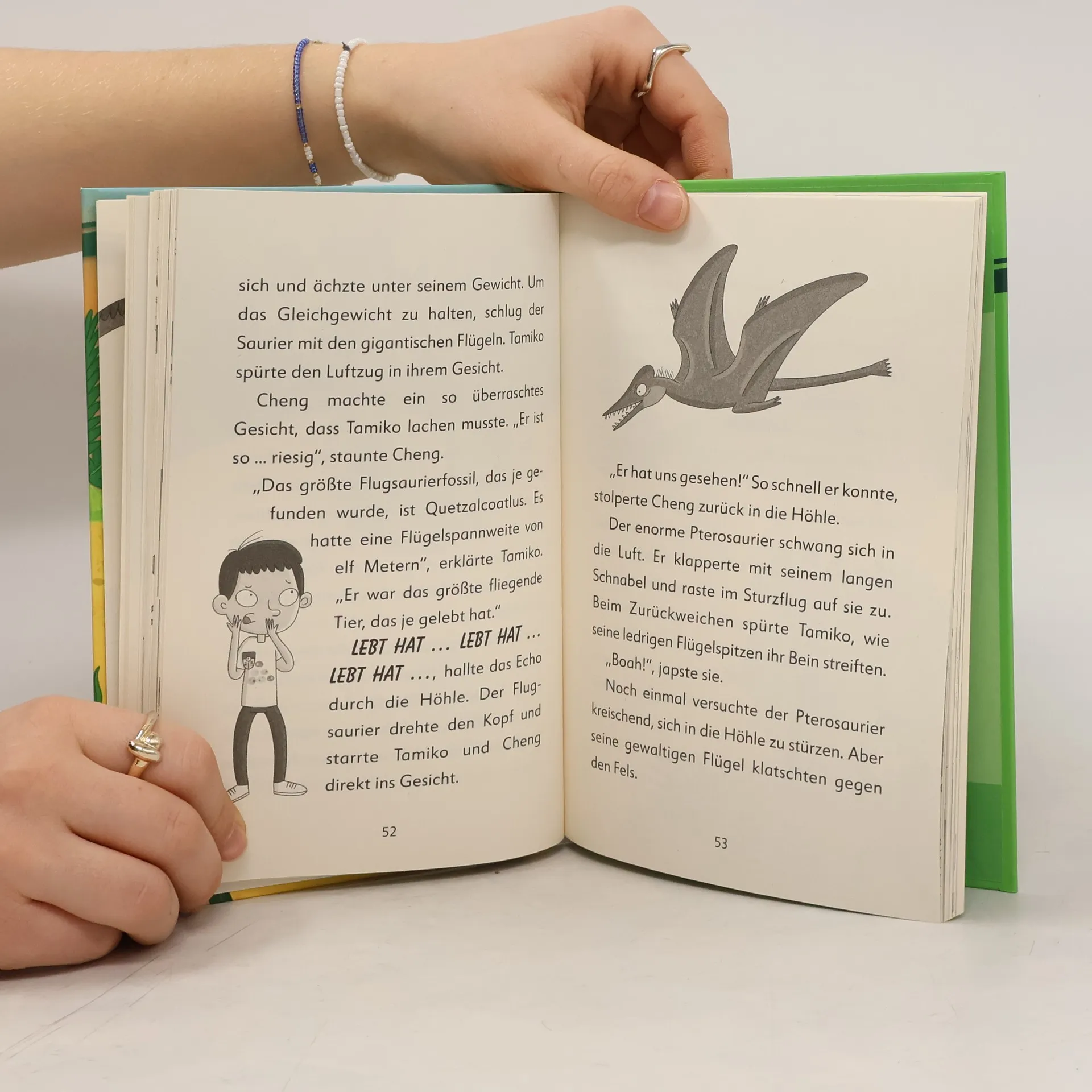 Ab in die Urzeit! – Die Forscher-Kids auf geheimer Mission Ein Fall für Dinosaurier-Expertin Tamiko: Die Erde vor 170 Millionen Jahren … Vor einer Höhle liegt ganz allein ein Dino-Ei. Doch wo stecken die Dino-Eltern? Tamiko und Vulkan-Experte Cheng reisen in die Vergangenheit, um das Ei zu schützen. Kaum angekommen müssen sie erst mal einem Stegosaurus-Baby helfen und einen hungrigen Allosaurus überlisten. Zum Glück hat Tamiko die rettende Idee … Leseabenteuer mit den Forscher-Kids - ein fesselnder Mix aus Action, Magie und Sachwissen. Ein starkes Team für knifflige Fälle Sie retten Natur und Tiere, lösen mysteriöse Rätsel und reisen sogar in die Urzeit: Die Forscher-Kids sind ein superstarkes Team! Sie kommen aus der ganzen Welt und jedes Kind ist Expert*in für ein spezielles Wissensgebiet , von Astronomie über Ozeane bis zu Dinosauriern. Wenn die geheime Forscherzentrale ruft, sind die Kids sofort zur Stelle – und schon startet eine neue aufregende Mission … - Abenteuer und mehr: Spannende Geschichten mit coolen Held*innen, aufregenden Schauplätzen, interessantem Wissen und einer Extra-Portion Magie – für Jungen und Mädchen ab 7 Jahren - Pro Band eine abgeschlossene Geschichte: Dinosaurier-Expertin Tamiko und Vulkan-Spezialist Cheng reisen in die Jura-Zeit, um ein Dino-Ei zu retten. Wenn da bloß nicht der Allosaurus, ein Archaeopteryx und andere Riesen-Dinos wären … - Lieblingsthemen spannend verpackt: Von Tierschutz über Umwelt und Raumfahrt bis zu Zeitreisen und Dinosauriern – alles, was Kinder interessiert und ihnen Spaß macht - Ideal zum Selbstlesen durch große Schrift, kurze Kapitel und dazu passende Illustrationen Macht Lust aufs Lesen Schon Kinder ab 7 Jahren tauchen mühelos in die Geschichten ein. Auf den Text abgestimmte Illustrationen auf jeder Doppelseite machen es leicht, den Abenteuern zu folgen. Bei jeder Mission werden interessante Fakten kindgerecht vermittelt, zum Beispiel über Fossilien und warum unsere Vögel mit den Dinos verwandt sind oder über Mumien und Pyramiden. Auch aktuelle Themen wie Klimawandel, Umweltverschmutzung oder Tierschutz spielen eine Rolle. Die Forscher-Notizen am Ende jeder Geschichte informieren jeweils zum Thema, ein kleines Glossar erklärt schwierige Begriffe. Bei dieser Kinderbuchreihe kommt alles zusammen, was Kinder lieben: Abenteuer, Magie und super interessantes Wissen. Die Forscher-Kids auf geheimer Mission bei den Dinosauriern. Abenteuer, Magie und Sachwissen fesselnd gemixt – macht Kindern ab 7 Jahren so richtig Lust aufs Lesen. Dieses Buch ist bei Antolin verfügbar.