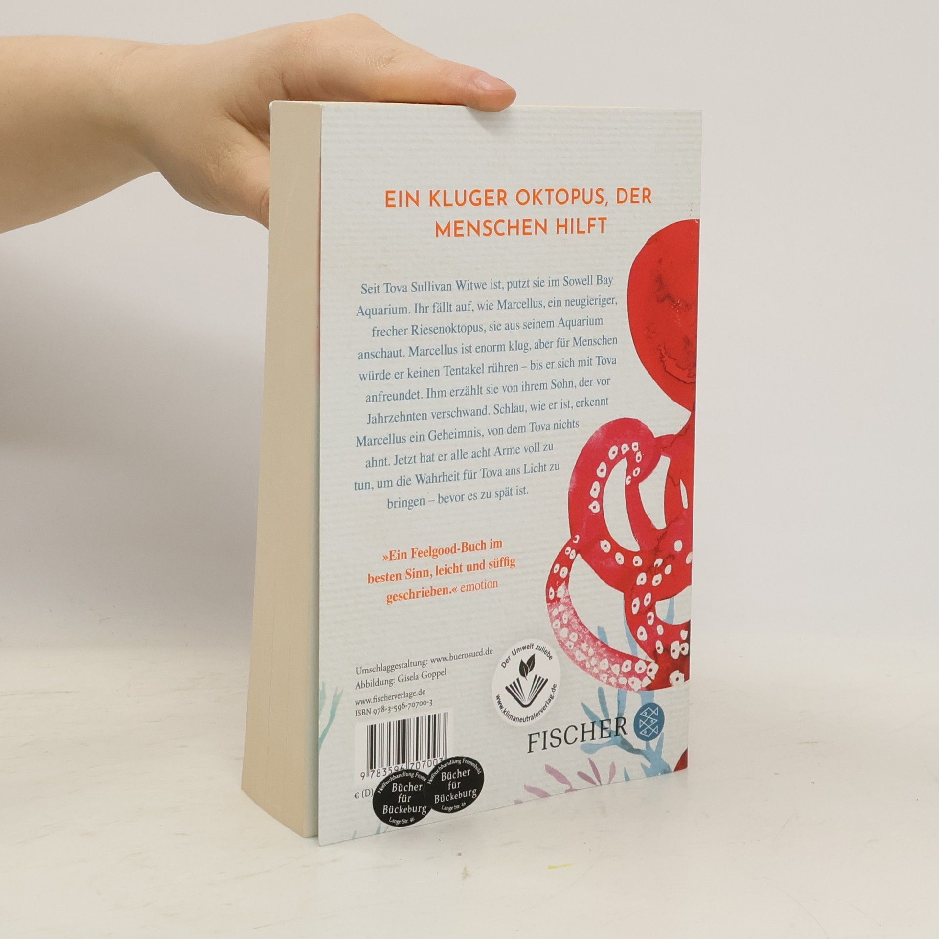 Ein kluger Oktopus, der Menschen hilft: »Ein Feelgood-Buch im besten Sinn, leicht und süffig geschrieben.« emotion. Seit über einem Jahr auf der New-York-Times-Bestsellerliste. Seit Tova Sullivan Witwe ist, putzt sie im Sowell Bay Aquarium. Ihr fällt auf, wie Marcellus, ein neugieriger, frecher Riesenoktopus, sie aus seinem Aquarium anschaut. Marcellus ist enorm klug, aber für Menschen würde er keinen Tentakel rühren – bis er sich mit Tova anfreundet. Ihm erzählt sie von ihrem Sohn, der vor Jahrzehnten verschwand. Schlau, wie er ist, erkennt Marcellus ein Geheimnis, von dem Tova nichts ahnt. Jetzt hat er alle acht Arme voll zu tun, um die Wahrheit für Tova ans Licht zu bringen – bevor es zu spät ist. Ein wunderbar heiterer Roman über die unwahrscheinliche Freundschaft zu einem Oktopus, der Fremde zu einer Familie zusammenführt. Der große New-York-Times-Bestseller mit mehr als einer Million verkauften Exemplaren. »Lesenswerter Roman, der von der ersten bis zur letzten Seite gute Stimmung verbreitet.« Münchner Merkur