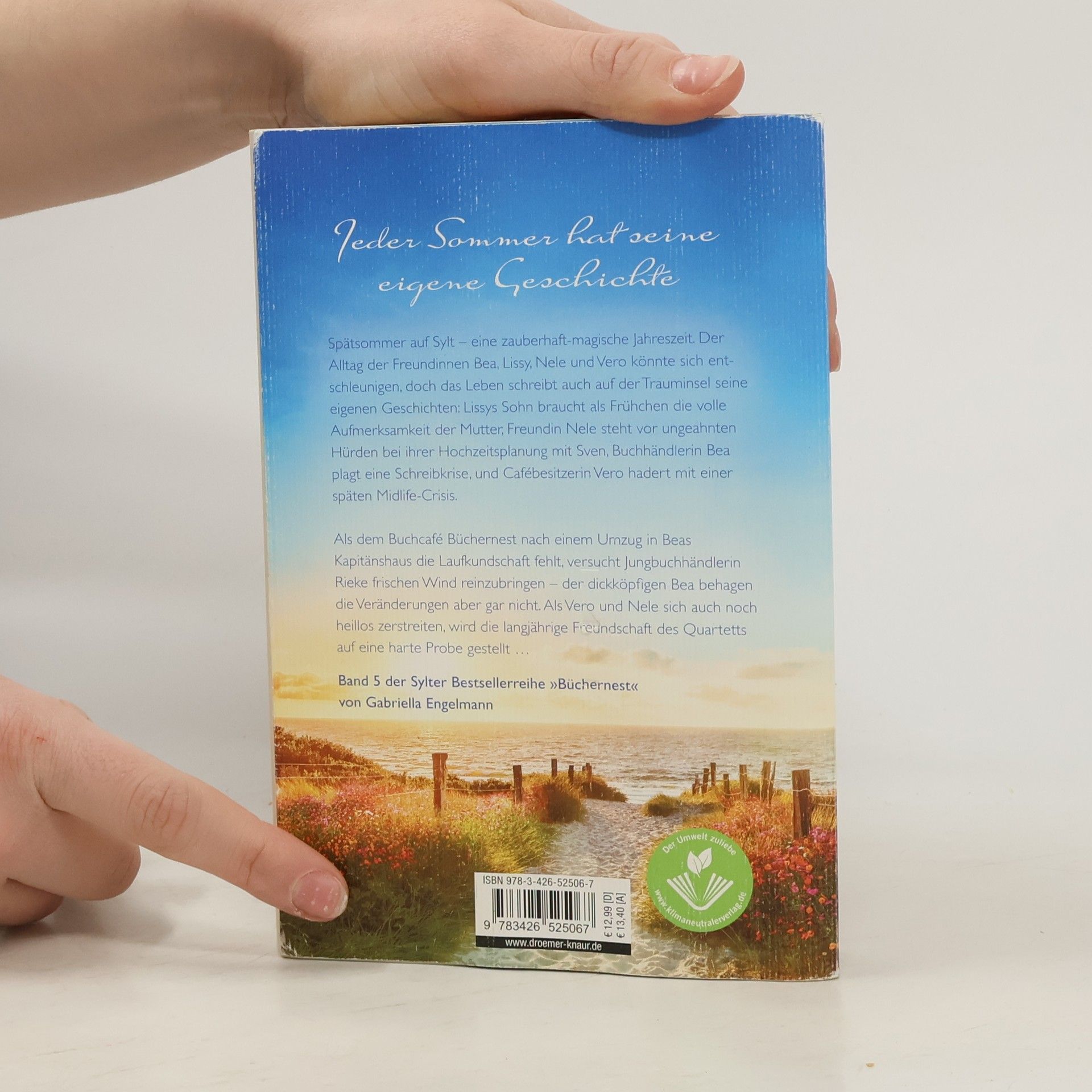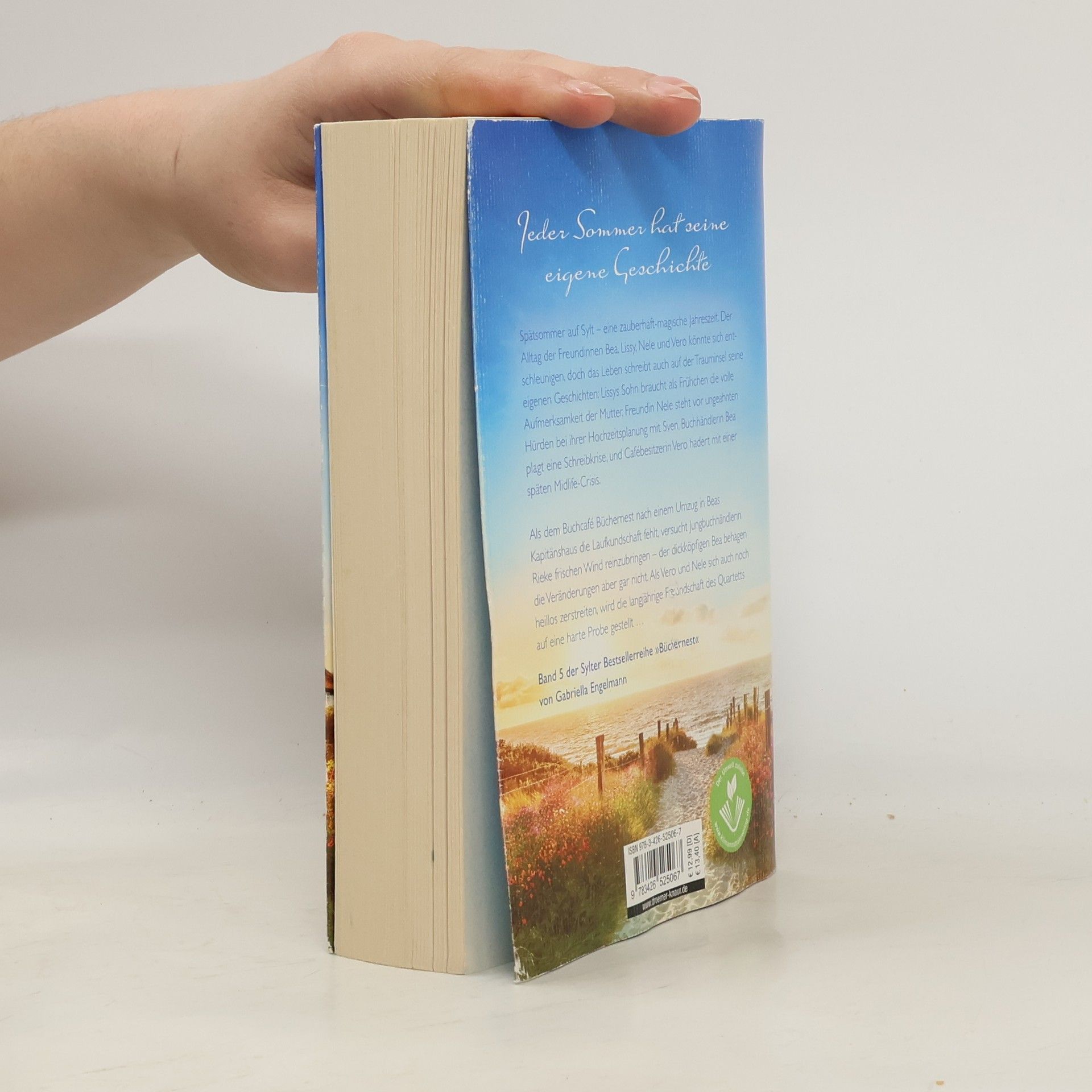 Das »Büchernest« auf Sylt hat wieder geöffnet: »Inselsehnsucht« ist der 5. Wohlfühlroman um vier Freundinnen und eine Buchhandlung auf Sylt von Bestseller-Autorin Gabriella Engelmann. Im Spätsommer auf Sylt tanzen sanfte Wattewolken am Himmel, und Heckenrosen leuchten. Der Alltag der Freundinnen Bea, Lissy, Nele und Vero könnte in dieser zauberhaften Jahreszeit entschleunigen, doch das Leben bringt Herausforderungen: Lissys Sohn Niels benötigt als Frühchen die volle Aufmerksamkeit seiner Mutter, Nele kämpft mit unerwarteten Hürden bei der Hochzeitsplanung mit Sven, Bea hat eine Schreibkrise, und Vero hadert mit einer späten Midlife-Crisis. Nach dem Umzug des Buchcafés »Büchernest« in Beas Kapitänshaus fehlt es an Laufkundschaft. Jungbuchhändlerin Rieke versucht, frischen Wind reinzubringen, was Bea gar nicht gefällt. Zudem zerstreiten sich Vero und Nele, was die langjährige Freundschaft des Quartetts auf eine harte Probe stellt. Gabriella Engelmann schafft mit ihren Inselromanen um das »Büchernest« ein kleines Wunder: kluge Unterhaltung, die das Herz berührt und zum Nachdenken anregt. Die Wohlfühlromane der »Büchernest-Serie« sind in folgender Reihenfolge erschienen: Inselzauber, Inselsommer, Wintersonnenglanz, Strandkorbträume, Inselsommerstürme (Kurzroman) und Inselsehnsucht.