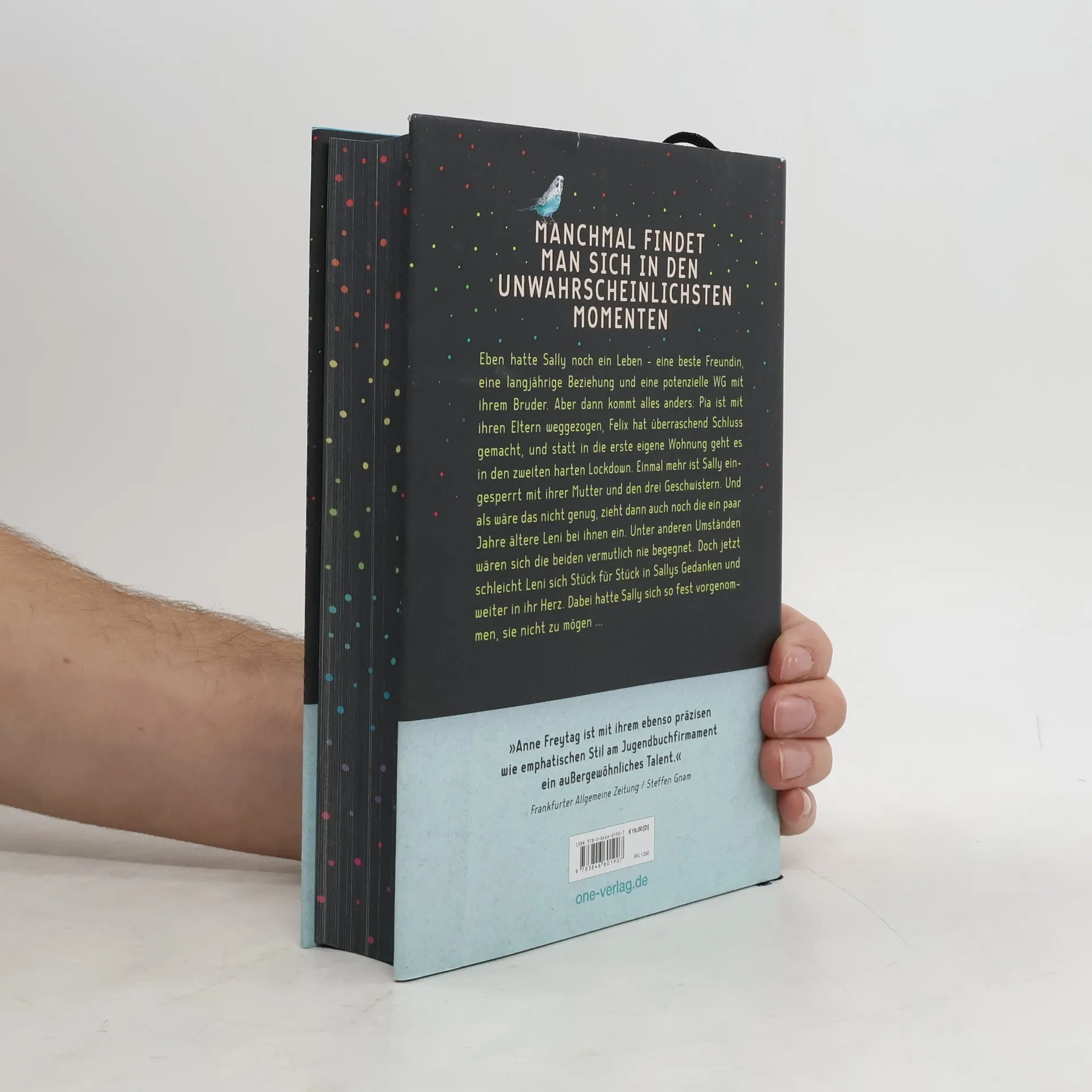 Bestsellerautorin Anne Freytag ist eine der großen und gefeierten deutschen All-Age-Stimmen Manchmal findet man sich in den unwahrscheinlichsten Momenten ... Eben hatte Sally noch ein Leben - eine beste Freundin, eine langjährige Beziehung und eine potenzielle WG mit ihrem Bruder. Aber dann kommt alles anders: Pia ist mit ihren Eltern weggezogen, Felix hat überraschend Schluss gemacht, und statt in die erste eigene Wohnung geht es in den zweiten harten Lockdown. Einmal mehr ist Sally eingesperrt mit ihrer Mutter und den drei Geschwistern. Und als wäre das nicht genug, zieht dann auch noch die ein paar Jahre ältere Leni bei ihnen ein. Unter anderen Umständen wären sich die beiden vermutlich nie begegnet. Doch jetzt schleicht Leni sich Stück für Stück in Sallys Gedanken und weiter in ihr Herz. Dabei hatte Sally sich so fest vorgenommen, sie nicht zu mögen ... Lebensnahe Themen und eine bildgewaltige Sprache - verpackt in einem mit Liebe zum Detail ausgestatteten Hardcover