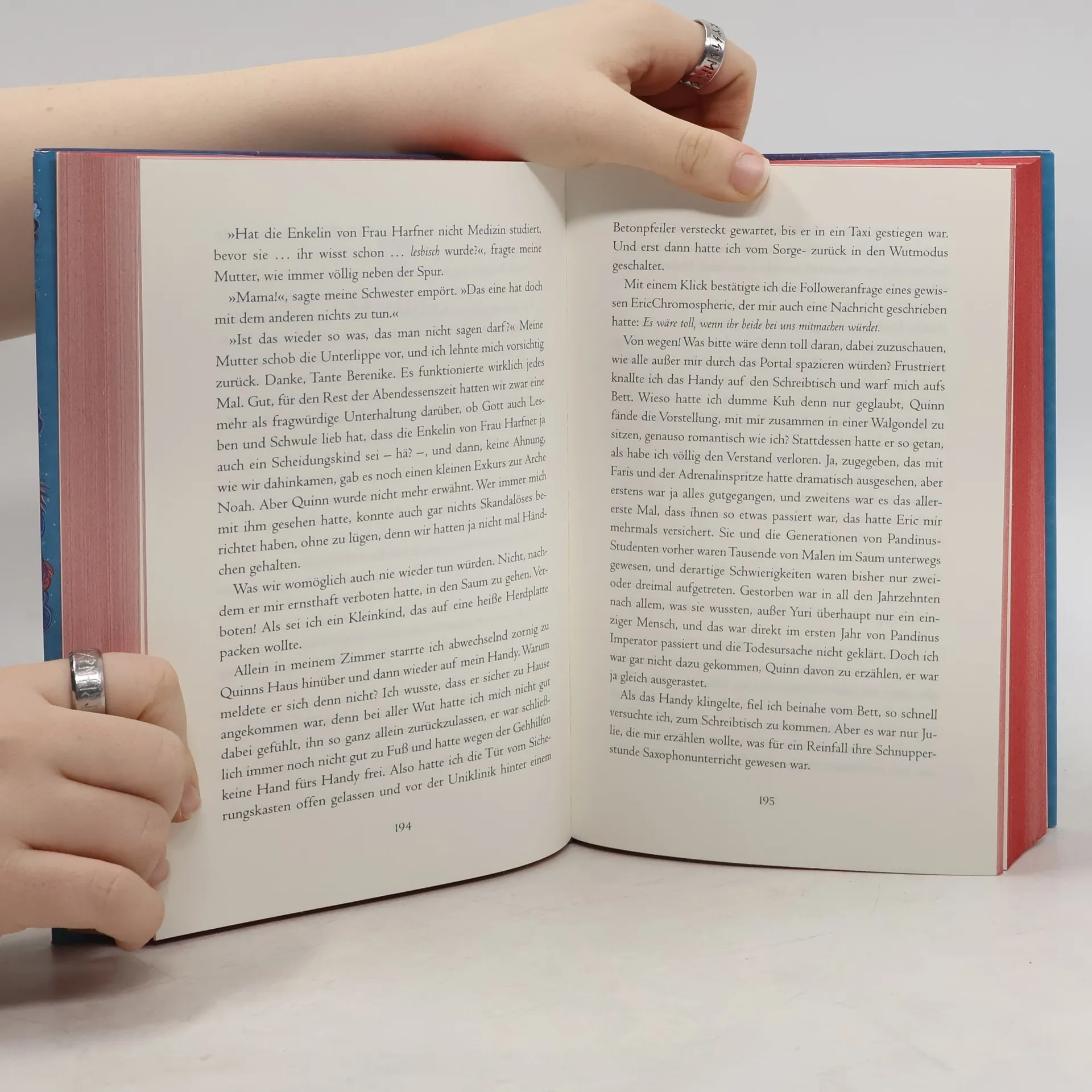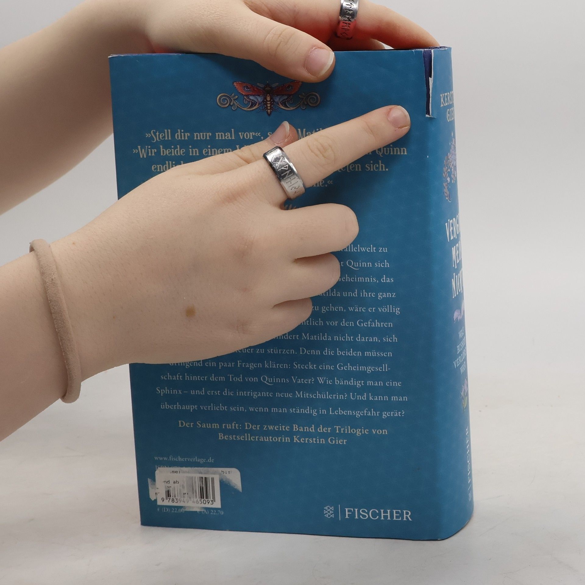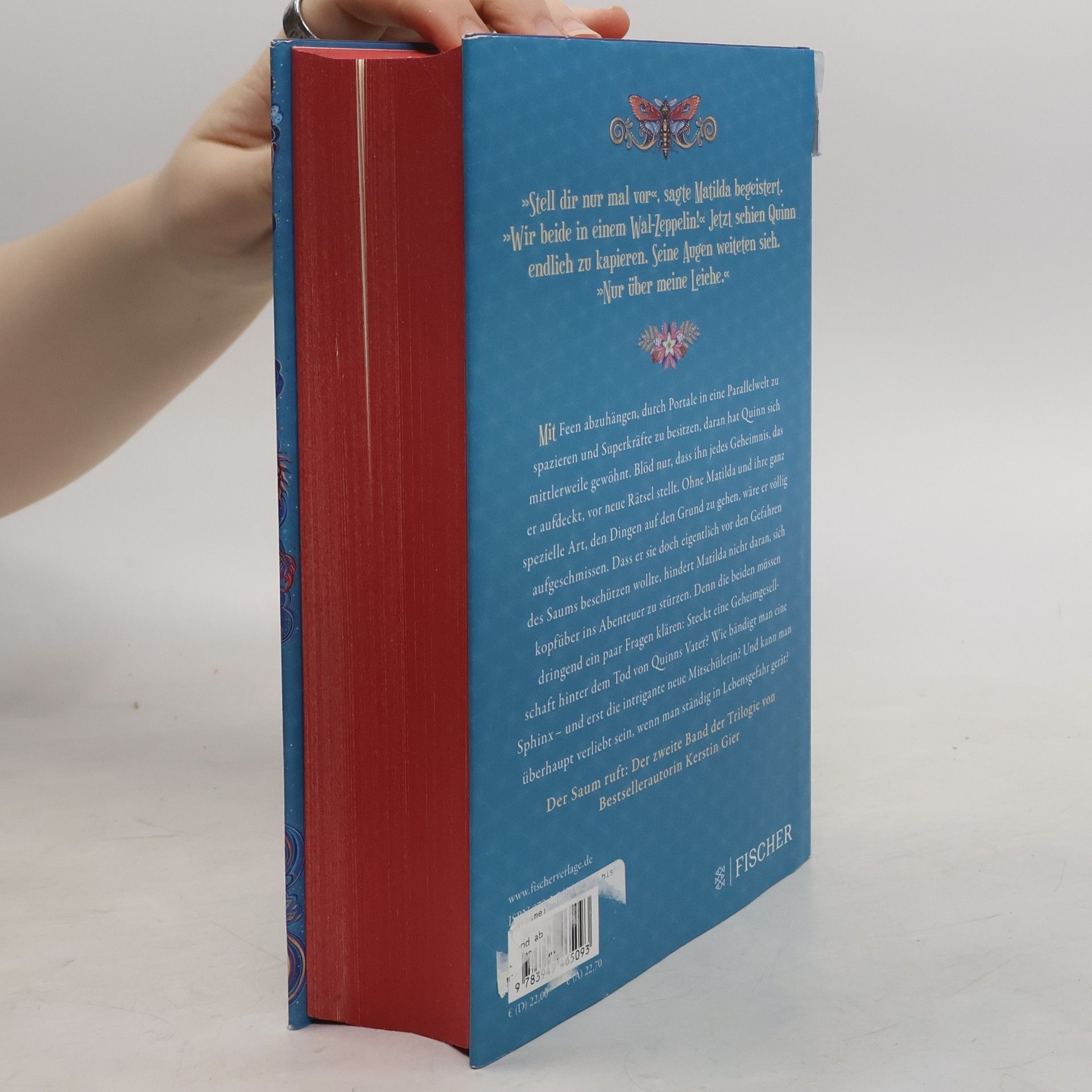 Der Saum ruft: Der zweite Band der Vergissmeinnicht-Trilogie lädt zum Träumen ein.  Mit Feen abzuhängen, durch Portale in eine Parallelwelt zu spazieren und Superkräfte zu besitzen, daran hat Quinn sich mittlerweile gewöhnt. Blöd nur, dass ihn jedes Geheimnis, das er aufdeckt, vor neue Rätsel stellt. Ohne Matilda und ihre ganz spezielle Art, den Dingen auf den Grund zu gehen, wäre er völlig aufgeschmissen. Dass er sie doch eigentlich vor den Gefahren des Saums beschützen wollte, hindert Matilda nicht daran, sich kopfüber ins Abenteuer zu stürzen. Denn die beiden müssen dringend ein paar Fragen klären: Steckt eine Geheimgesellschaft hinter dem Tod von Quinns Vater? Wie bändigt man eine Sphinx– und erst die intrigante neue Mitschülerin? Und kann man überhaupt verliebt sein, wenn man ständig in Lebensgefahr gerät? »Stell dir nur mal vor«, sagte Matilda begeistert. »Wir beide in einem Wal-Zeppelin!« Jetzt schien Quinn endlich zu kapieren. Seine Augen weiteten sich. »Nur über meine Leiche.«