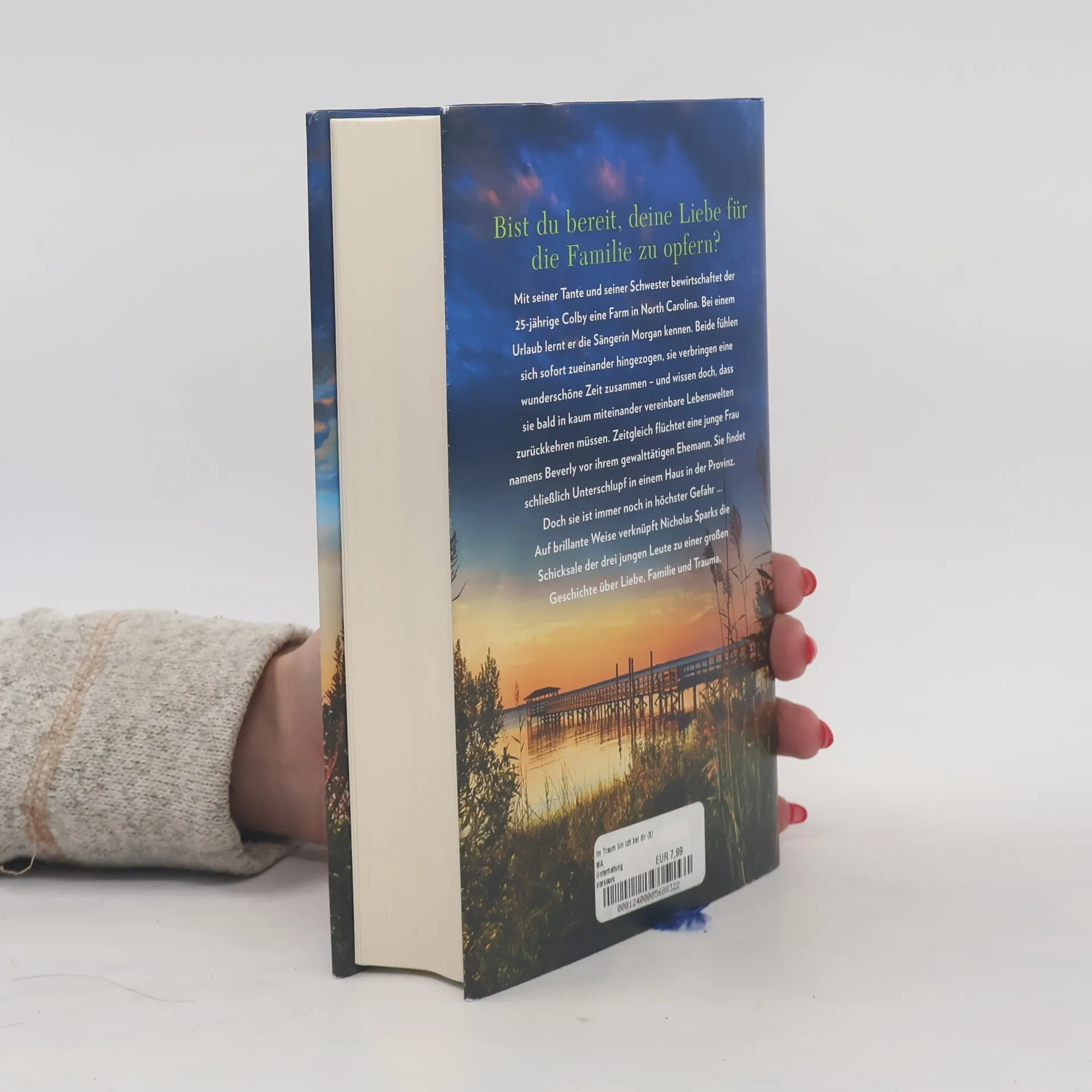 Mit seiner Tante und seiner Schwester bewirtschaftet der 25-jährige Colby eine Farm in North Carolina. Bei einem Urlaub lernt er die Sängerin Morgan kennen. Beide fühlen sich sofort zueinander hingezogen, sie verbringen eine wunderschöne Zeit zusammen – und wissen doch, dass sie bald in kaum miteinander vereinbare Lebenswelten zurückkehren müssen. Zeitgleich flüchtet eine junge Frau namens Beverly vor ihrem gewalttätigen Ehemann. Gemeinsam mit ihrem kleinen Sohn reist sie quer durch Amerika, in ständiger Angst, verfolgt zu werden. Schließlich findet sie Unterschlupf in einem heruntergekommenen Haus in der Provinz. Doch sie ist immer noch in höchster Gefahr … Auf brillante Weise verknüpft Nicholas Sparks die Schicksale der drei jungen Leute zu einer großen Geschichte über Familie, Trauma und Liebe.