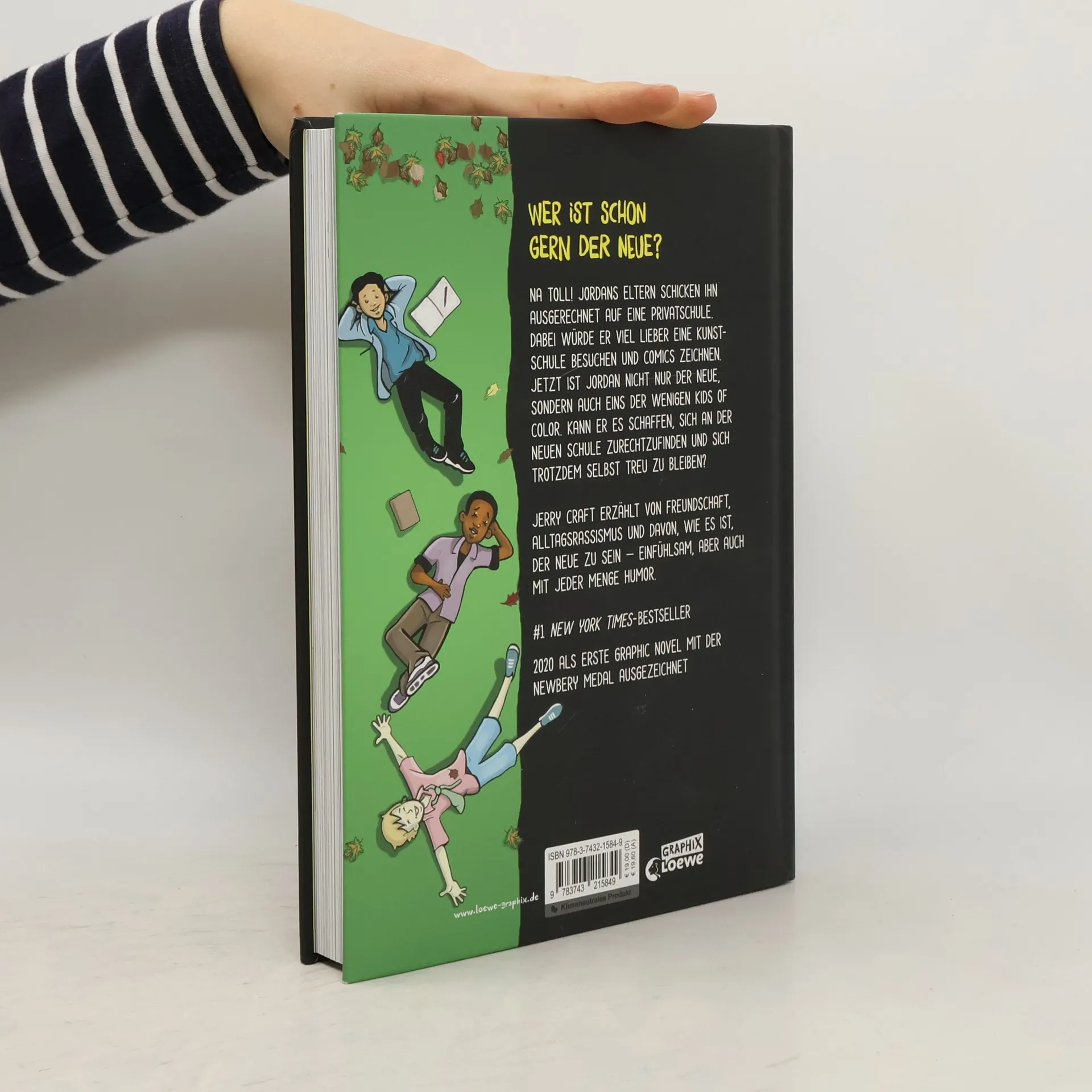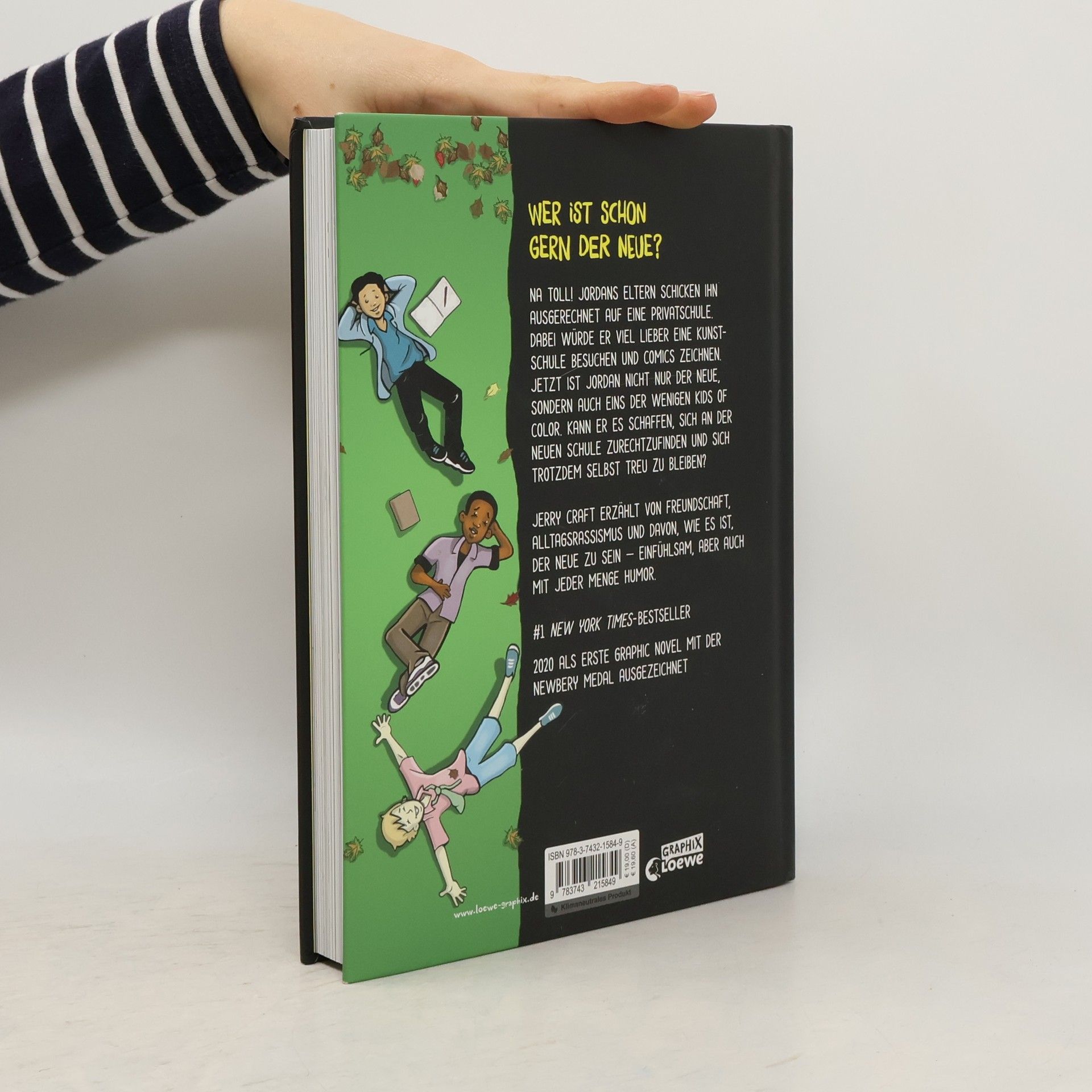 Das Buch ist bei deiner Buchhandlung vor Ort und bei vielen Online-Buchshops erhältlich! Wer ist schon gern der Neue? Na toll! Jordans Eltern schicken ihn ausgerechnet auf eine Privatschule. Dabei würde er viel lieber eine Kunstschule besuchen und Comics über sein Leben zeichnen. Doch jetzt ist Jordan nicht nur der Neue, sondern auch eins der wenigen Kids of Color. Kann er es schaffen, sich an der neuen Schule zurechtzufinden und sich trotzdem selbst treu zu bleiben? Als wäre Schule nicht eh schon schwer genug! Schule ist nicht immer leicht, aber wenn man dann noch neu ist und mit Alltagsrassismus konfrontiert wird, können nur beste Freunde helfen. New Kid ist eine humorvolle Graphic Novel mit hohem Identifikationspotential für alle Mädchen und Jungen ab 12 Jahren . Jerry Craft erzählt von Freundschaft, Alltagsrassismus und davon, wie es ist, der Neue zu sein – einfühlsam, aber auch mit jeder Menge Humor. #1 New York Times -Bestseller 2020 als erste Graphic Novel mit der Newbery Medal ausgezeichnet Klimaneutrales Produkt – Wir unterstützen ausgewählte Klimaprojekte!
