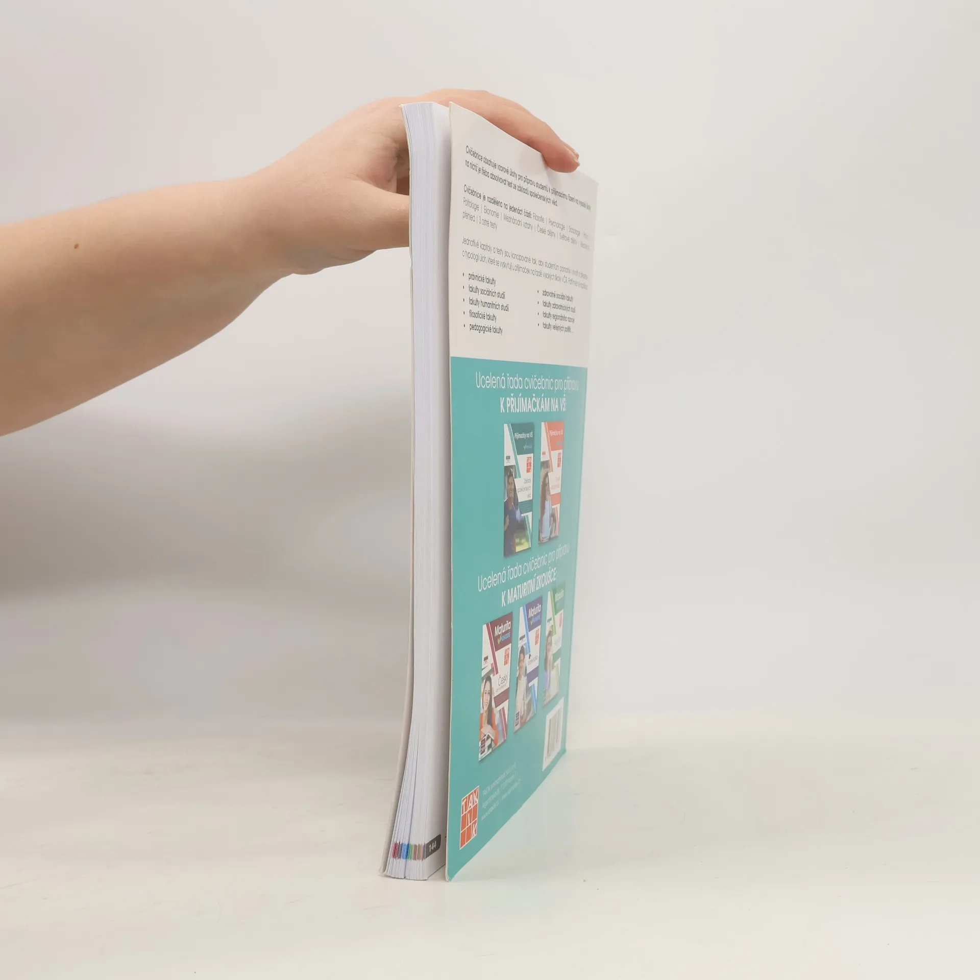 Cílem cvičebnic je poskytnout komplexní přípravu k přijímacímu řízení na vysoké školy, na nichž je třeba absolvovat test ze studijních předpokladů a základů společenských věd. Zpracováním různorodých typologií testových otázek a nejfrekventovanějších témat a oblastí z přijímacích řízení v ČR se podařilo žákům poskytnout kompletní podklady pro přípravu na testy ze studijních předpokladů a základů společenských věd na libovolnou vysokou školu v České republice. Cvičebnice obsahují vzorové úlohy pro přípravu studentů k přijímacímu řízení na vysoké školy, na nichž je třeba absolvovat test ze studijních předpokladů a základů společenských věd.