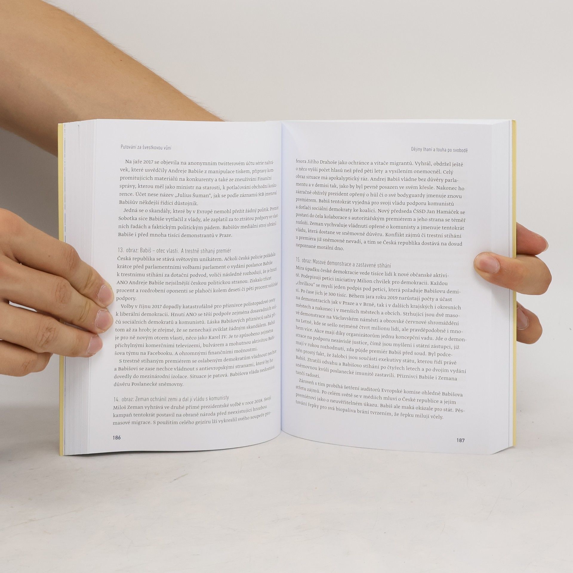 Politický komentátor a šéfredaktor deníku FORUM 24 Pavel Šafr provází čtenáře českou historií a komentuje mýty, stereotypy a falšování, které se objevují ve výkladu českých dějin od národního obrození. Ve třiceti kapitolách přibližuje historii od středověku po současnost, zaměřuje se na příběhy a události, které vyvolávají ideové spory a kulturní konflikty. Autor zastává názor, že sebevědomý národ se dokáže dívat na svoji minulost pravdivě, včetně jejích negativních aspektů. Zmiňuje například tvrzení Miloše Zemana o svatém Václavu, proces s Janem Husem, vyhnání Němců a vděčnost některých Čechů Putinovu Rusku. Šafr hledá odpovědi na otázky, jak se události seběhly a jaké významy jim byly mylně přiřčeny. Kromě středověkých a raně novověkých příběhů se zaměřuje na národní obrození, osobnosti zakladatele Československa, pravou povahu komunistického panství a sovětský vliv. Kniha také obsahuje portréty československých a českých prezidentů, zkoumá jejich charakter a vliv na společnost. Rozšířené vydání, které nyní přináší nakladatelství Free Czech Media, obsahuje dvě nové kapitoly – „Babišismus: Otázka viny“ a „Putinovi Češi a stíny Sovětského svazu“.