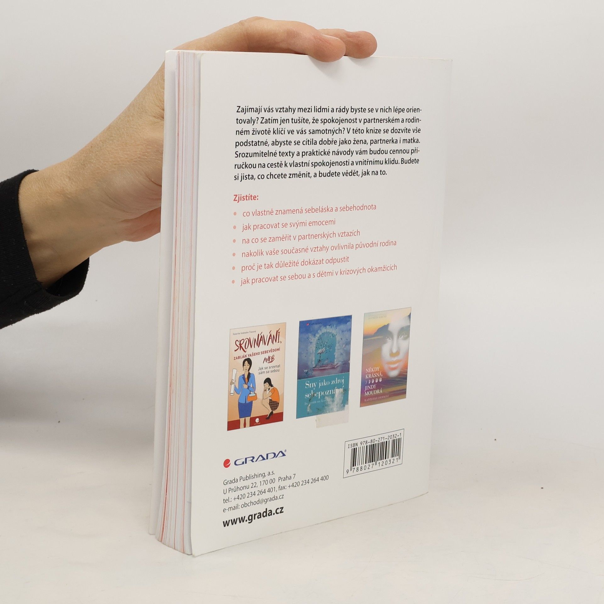 Zajímají vás vztahy mezi lidmi a rády byste se v nich lépe orientovaly? Zatím jen tušíte, že spokojenost v partnerském a rodinném životě klíčí ve vás samotných? V této knize se dozvíte vše podstatné, abyste se cítila dobře jako žena, partnerka i matka. Srozumitelné texty a praktické návody vám budou cennou příručkou na cestě k vlastní spokojenosti a vnitřnímu klidu. Budete si jista, co chcete změnit, a budete vědět, jak na to. Zjistíte: • co vlastně znamená sebeláska a sebehodnota • jak pracovat se svými emocemi • na co se zaměřit v partnerských vztazích • nakolik vaše současné vztahy ovlivnila původní rodina • proč je tak důležité dokázat odpustit • jak pracovat se sebou a s dětmi v krizových okamžicích