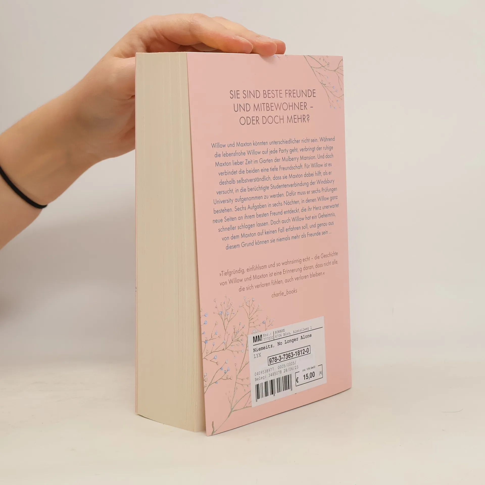 Sie sind beste Freunde und Mitbewohner - oder doch mehr? Willow und Maxton könnten unterschiedlicher nicht sein. Während die lebensfrohe Willow auf jede Party geht, verbringt der ruhige Maxton lieber Zeit im Garten der Mulberry Mansion. Und doch verbindet die beiden eine tiefe Freundschaft. Für Willow ist es daher selbstverständlich, dass sie Maxton dabei hilft, als er versucht, in die berüchtigte Studentenverbindung der Windsbury University aufgenommen zu werden. Dafür muss er sechs Prüfungen bestehen. Sechs Aufgaben in sechs Nächten, in denen Willow ganz neue Seiten an ihrem besten Freund entdeckt, die ihr Herz unerwartet schneller schlagen lassen. Doch auch Willow hat ein Geheimnis, von dem Maxton auf keinen Fall erfahren soll, und genau aus diesem Grund können sie niemals mehr als Freunde sein ... »Tiefgründig, einfühlsam und so wahnsinnig echt ̶ die Geschichte von Willow und Maxton ist eine Erinnerung daran, dass nicht alle, die sich verloren fühlen, auch verloren bleiben.« CHARLIE_BOOKS Band 3 der New-Adult-Reihe von Merit Niemeitz, der großen Entdeckung beim LYX-Pitch