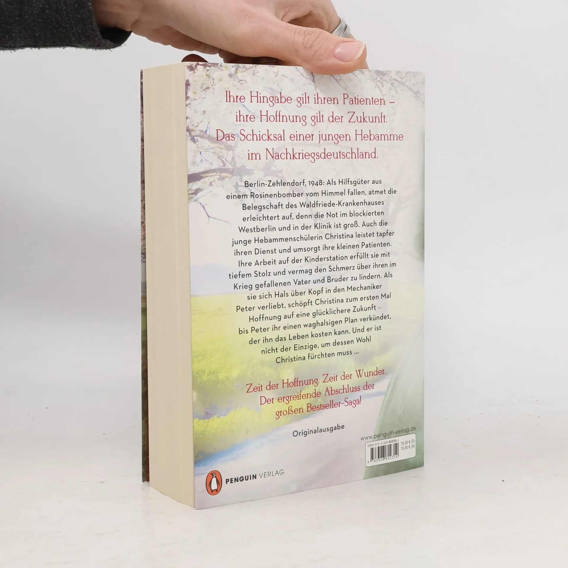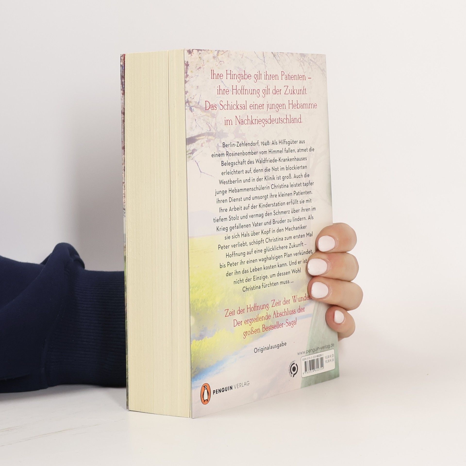 Ihre Hingabe gilt ihren Patienten, ihre Hoffnung gilt der Zukunft: Das Schicksal einer jungen Hebamme im Nachkriegsdeutschland. Das große Finale der Bestseller-Saga! Berlin-Zehlendorf, 1948: Als Hilfsgüter aus einem Rosinenbomber vom Himmel fallen, atmet die Belegschaft des Waldfriede-Krankenhauses erleichtert auf, denn die Not im blockierten Westberlin und in der Klinik ist groß. Auch die junge Hebammenschülerin Christina leistet tapfer ihren Dienst und umsorgt ihre kleinen Patienten. Ihre Arbeit auf der Kinderstation erfüllt sie mit tiefem Stolz und vermag den Schmerz über ihren im Krieg gefallenen Vater und Bruder zu lindern. Als sie sich Hals über Kopf in den Mechaniker Peter verliebt, schöpft Christina zum ersten Mal Hoffnung auf eine glücklichere Zukunft – bis Peter ihr einen waghalsigen Plan verkündet, der ihn das Leben kosten kann. Und er ist nicht der Einzige, um dessen Wohl Christina fürchten muss … Nach wahren Begebenheiten: Inspiriert von der Chronik einer Krankenschwester erzählt Erfolgsautorin Corina Bomann die Geschichte der Berliner Waldfriede-Klinik. Entdecken Sie die weiteren Bände der mitreißenden Waldfriede-Saga: 1. Sternstunde. Die Schwestern vom Waldfriede 2. Leuchtfeuer. Die Schwestern vom Waldfriede 3. Sturmtage. Die Schwestern vom Waldfriede 4. Wunderzeit. Die Schwestern vom Waldfriede Alle Bände der Saga sind auch einzeln lesbar.